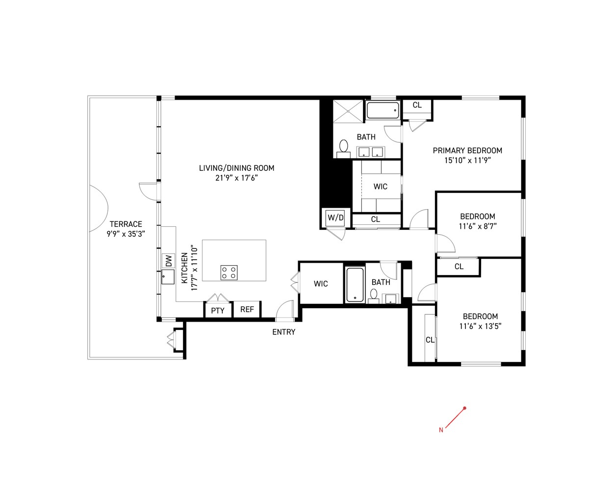 Extending off the main living space, the private terrace acts as a true outdoor living room. Designed for both relaxation and entertaining, this expansive space includes irrigation, electricity, and plenty of room for dining, lounging, and planting, all set against open city views that create a peaceful urban retreat.