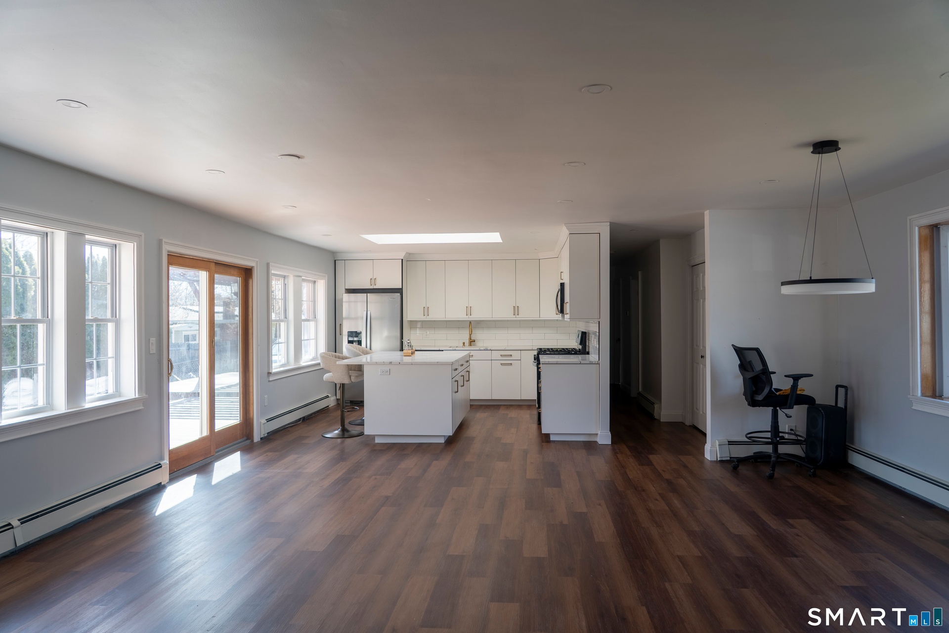 Beautifully renovated ranch on a quiet street, offering a spacious main living area boasting a kitchen with stunning custom cabinets, granite countertops, and a large center island with stainless steel ...