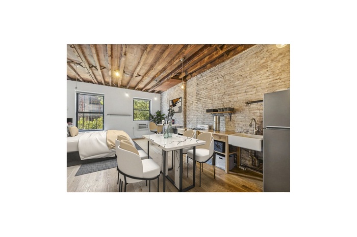 As you step into this 404-square-foot gem, you'll immediately be captivated by the exposed brick walls and high ceilings, which add a touch of historic charm. The oversized windows with southern exposure flood the space with natural light, highlighting the beautiful hardwood floors throughout.