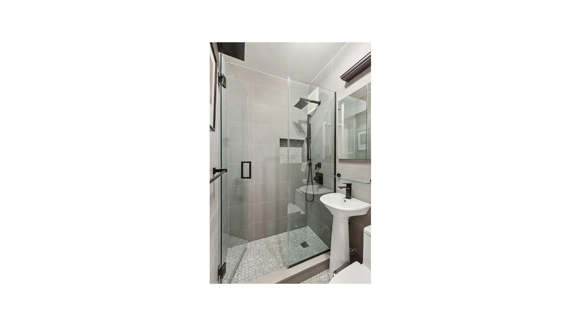This unit also features a well-appointed bathroom, conceived for both style and functionality. For your convenience, central heating ensures year-round comfort, while a window AC unit is already installed for those warmer months.