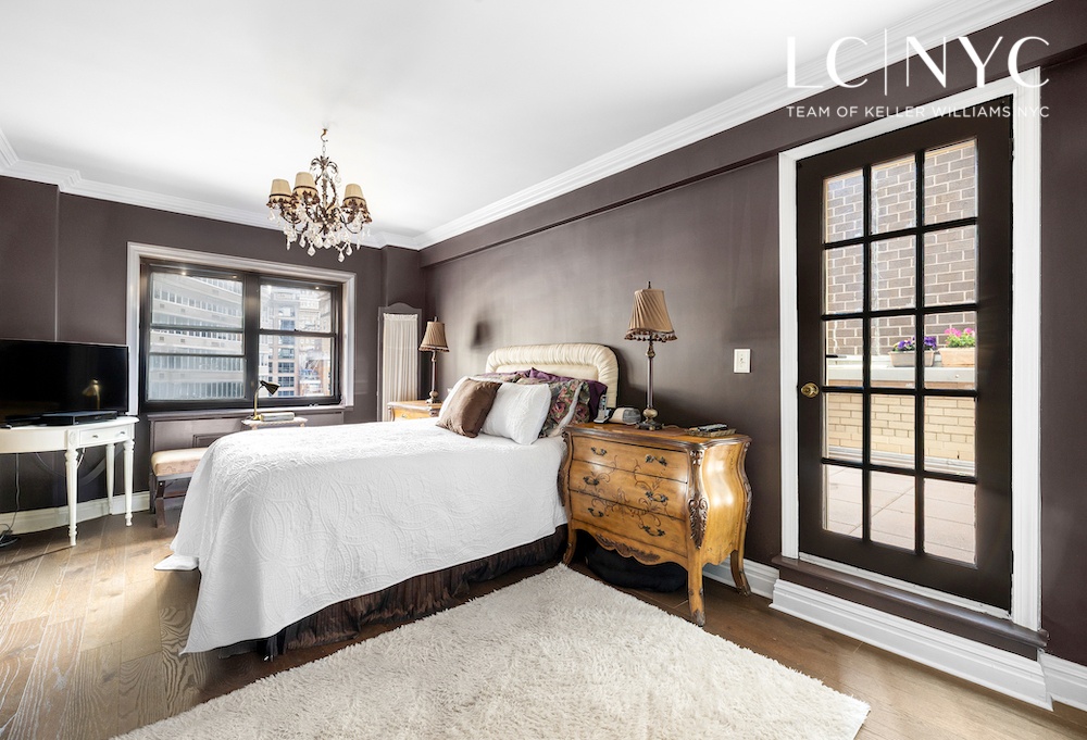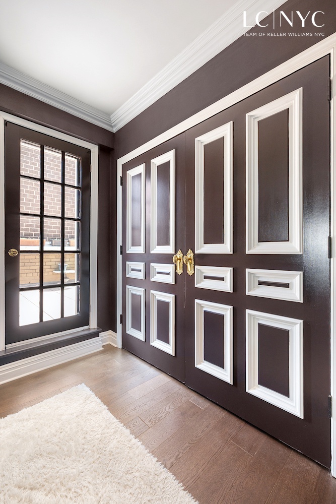 The sprawling primary bedroom is a tranquil and serene retreat with large, deep closets and direct access to the private terrace—offering over 350 square feet of outdoor space with tranquil East River views. The terrace is the perfect setting for morning coffee, evening dining, or simply unwinding beneath the open sky.