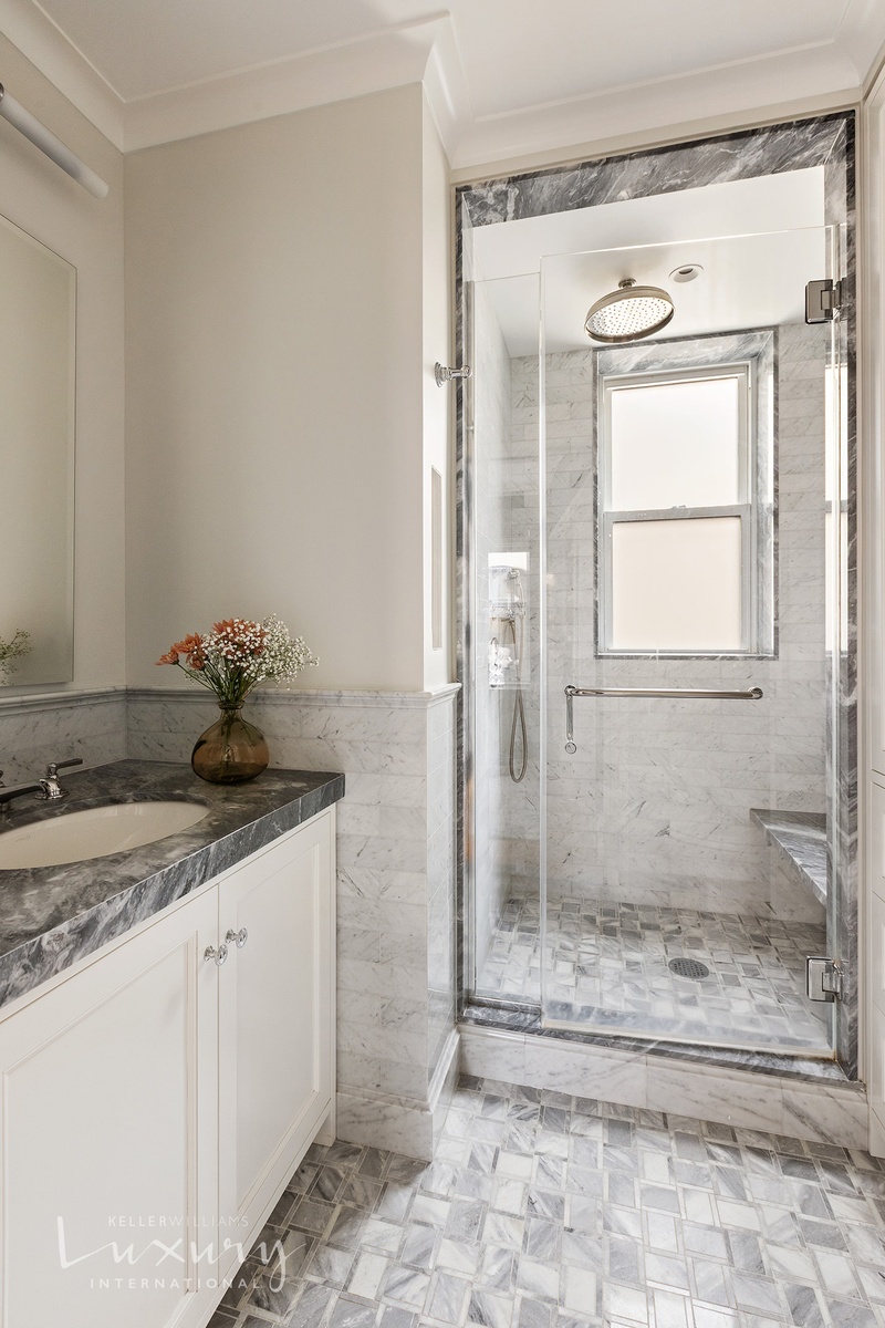 Three apartments spanning two floors have been meticulously combined producing a seamless floor plan that feels like it has been there all along. This carefully considered renovation accommodates modern living while maintaining the integrity and glamour of pre-war architecture that is part and parcel of a Central Park West address. The magnificent seven-room duplex features three spacious bedrooms with en-suite baths and the ability to add a fourth bedroom of equal size. The apartment affords four-and-one-half bathrooms total. High beamed ceilings, hardwood herringbone floors, and crown molding suffuse this warm and contemporary renovation with old-world grandeur. A wood-burning fireplace adds to the rich character of this home.