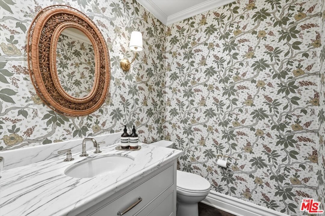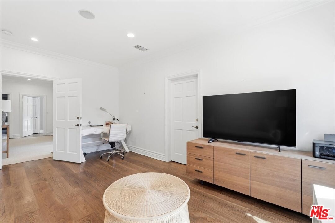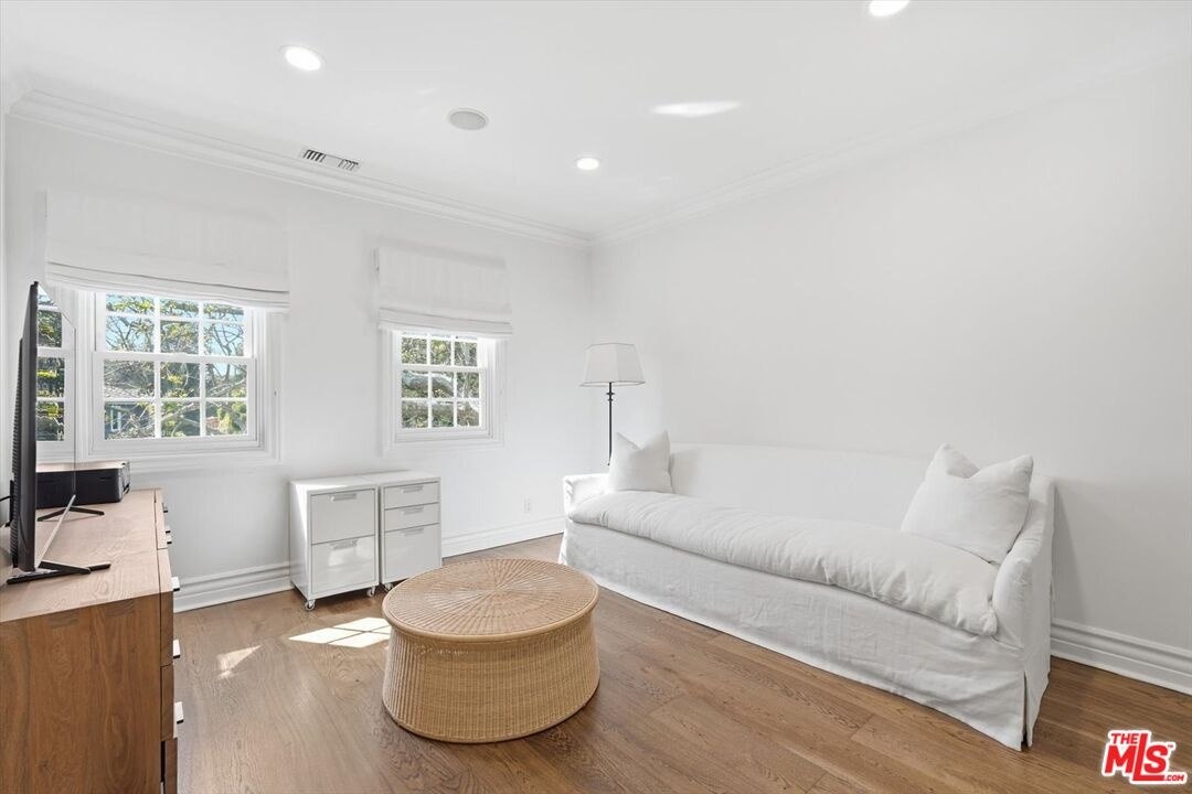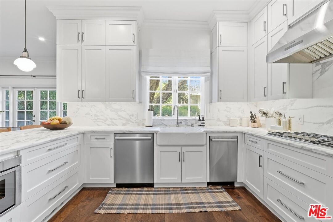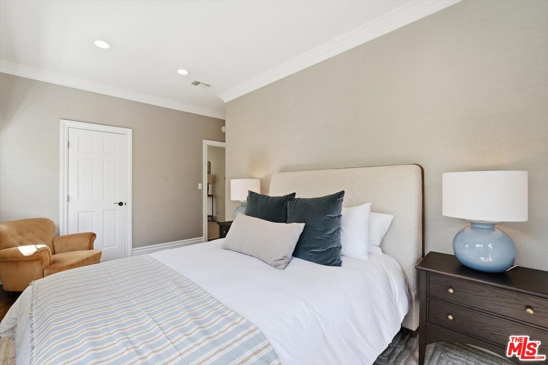 Location, Location, Location! Unbelievable opportunity to own this designer-done remodeled 2-story Traditional. The front yard greets you with lush landscaping bursting with flowers and a 100-year-old sycamore tree. The entry is light and bright with high ceilings flowing to the living room and dining room. The living room has a fireplace and a huge window overlooking the front garden. The custom dining room has built-in custom cabinetry with a built-in wine refrigerator and sink perfect for entertaining. The family room / media room has high ceilings and opens to the kitchen and also offers casual dining. The kitchen has been completely remodeled with all new appliances, new cabinets and counters. As well as a brand new HVAC and water filtration system. In addition, the added new butler's pantry area enhances the dining room and kitchen experience. French doors from the family room open to a truly magical backyard with a pool, outdoor fireplace, outdoor theatre, dining area, lush landscaping with total privacy, and multiple entertaining areas. The ADU is brand new with a kitchenette, built-in desks, and floor-to-ceiling storage cabinets with French doors that open to the outside dining area. Upstairs are 5 rooms. The primary spans the entire front of the house with large windows and high ceilings. There's a large sitting room that could be an office, nursery, or playroom and a large bedroom with a fireplace. The primary also features a remodeled bathroom with dual sinks, a soaking tub, a steam shower, and 2 sizable walk-in closets. Off the center hallway are 3 additional bedrooms. 2 of them are medium-sized with 1 ensuite and other shares hallway bathroom, 3rd is a junior suite with a large bedroom ensuite and a walk-in closet. This home has tons of light, high ceilings, hardwood floors throughout, a gated driveway with a covered electric awning the length of the driveway, new lush landscaping, and outdoor lighting, and is located on the best street between Sunset Blvd and San Vicente in Brentwood! There's a private dedicated 24-hr/ 7 days a week security guard for Anita, Medio, and Carmelina. ALL wires have been put underground . Some furniture could be available for additional purchase as all is custom for the home. This home is move in ready, just bring your toothbrush!