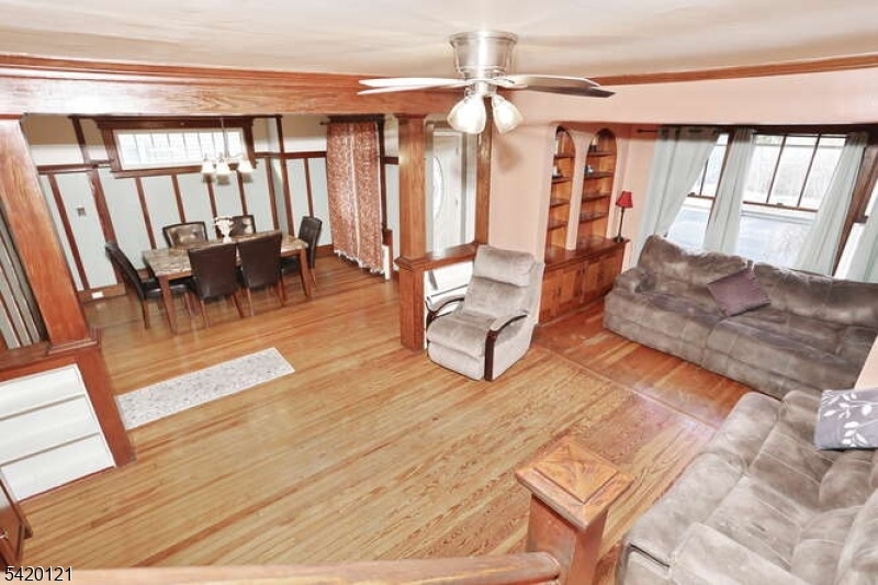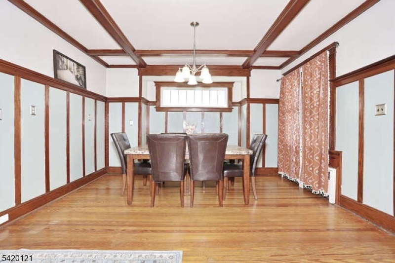 Nestled on a tree lined street in Hawthorne, this charming side hall colonial has gorgeous natural wood trim, ceiling beams and built ins throughout the dining and living room.