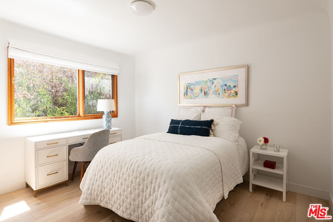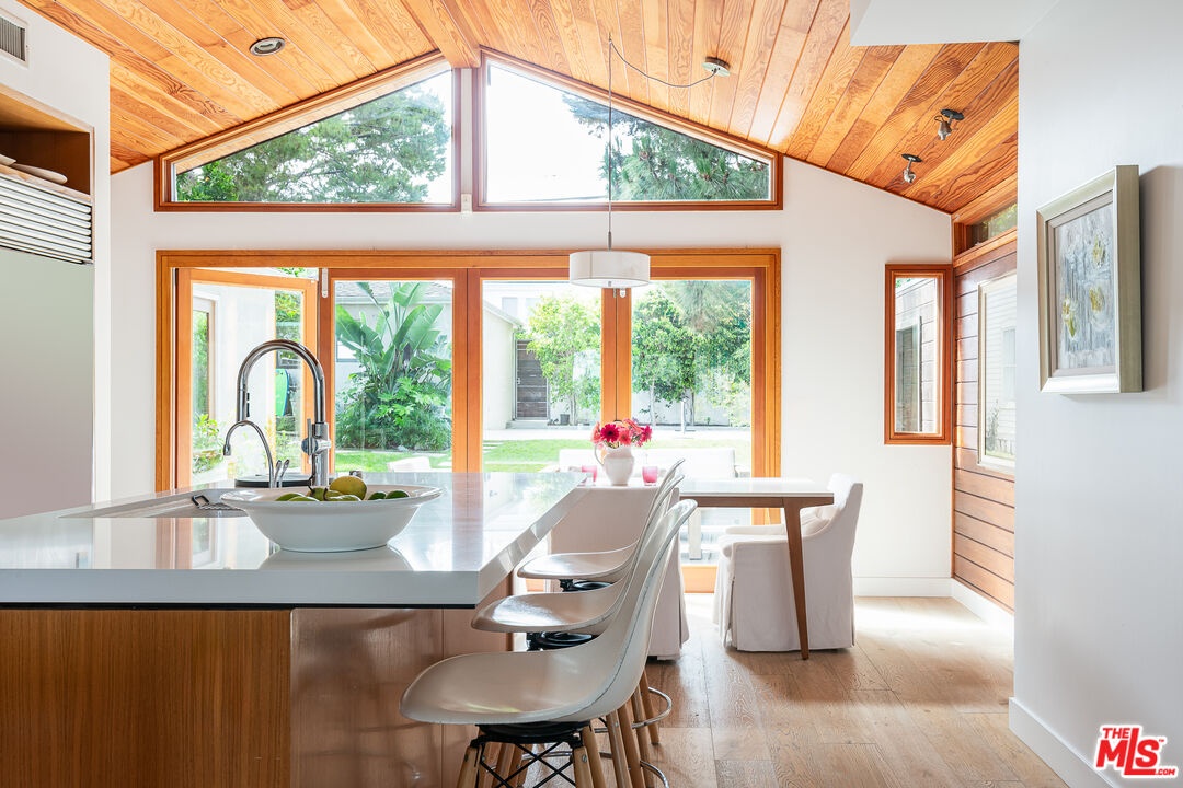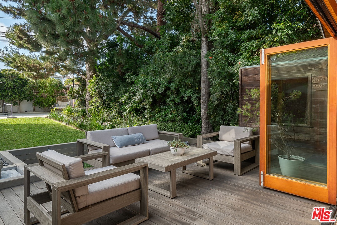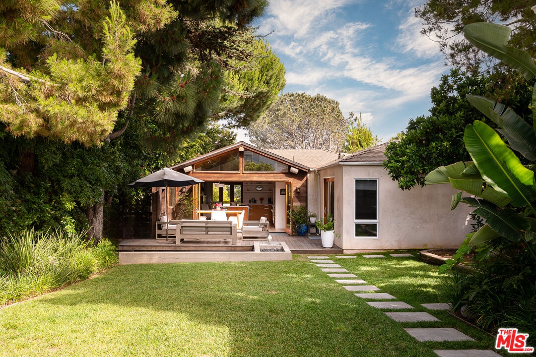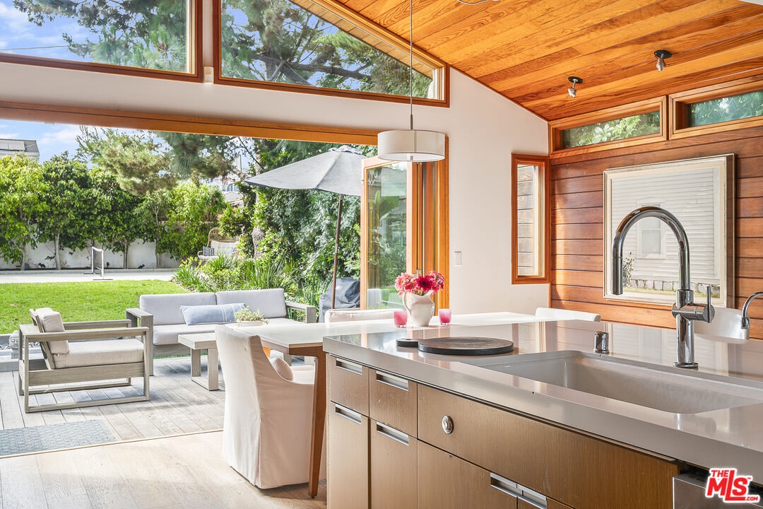 This exquisitely remodeled, quintessentially California bungalow sits perched above the Penmar Golf Course, on one of the best streets in Sunset Park, with tree top views that stretch from Santa Monica to Playa Vista and the LMU Bluff. This special home features an inviting floor plan that takes advantage of the over 7,000 square foot lot. The lush front yard features mature fruit trees and soaks up the Southern California sun, while leading you up steps to the front entrance of the home. Gentle ocean breezes lead you from the front balcony that takes in the South-facing view, through a set of French Doors and into the cozy living room where you'll find a fireplace and a projector with surround sound and a drop down screen. The living room opens to the stunning kitchen, highlighted by vaulted wood paneled ceilings, sliding La Cantina doors, custom cabinetry, a Wolf range, and a Sub Zero fridge. The sliding doors open entirely onto a spacious deck that flows effortlessly to the oversized backyard, shaded with mature trees and ending at a small sport court perfect for practicing your free throws. The primary suite is a serene space with sliding doors that open to the backyard, custom built in closets, and a beautifully designed bathroom. The two bright guest rooms, separated by a bathroom that retains its 1940s charm with stained glass windows, completes the home. Other highlights of the property include a detached, oversized one car garage with alley access that includes a laundry area and can also function as an office or gym, a water filtration system in the kitchen, central air and heat, and custom shades. A home like this rarely comes available for rent - it's not one you want to miss!