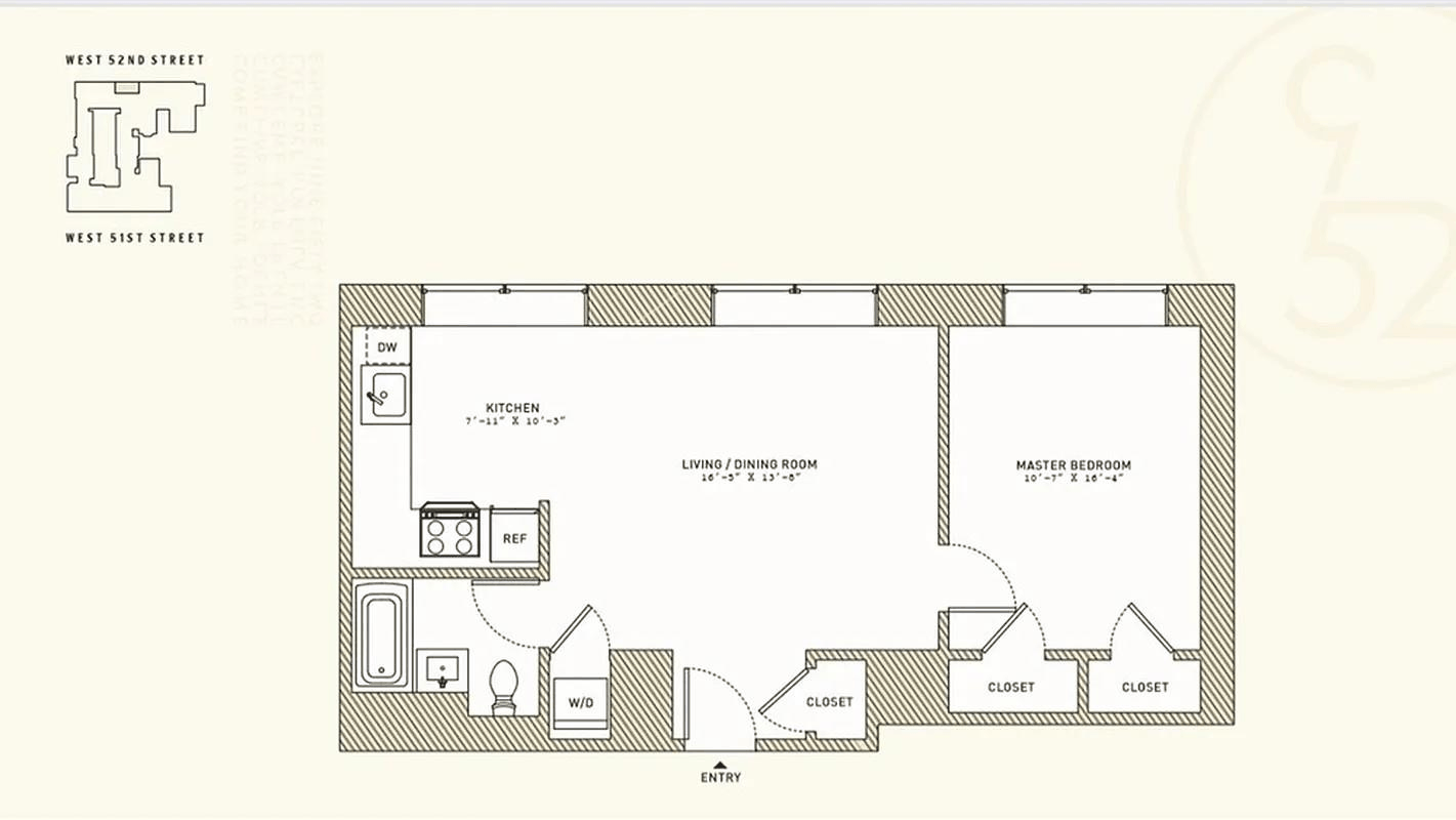 Residence #502 at Nine52 is a bright and quiet 1-bedroom, 1-bathroom condominium with a well-designed layout ideal for comfortable living. The home features oversized north-facing windows that bring in consistent natural light while maintaining a peaceful and private atmosphere. The spacious living area flows seamlessly into a separate eat-in kitchen—a layout rarely found in one-bedroom residences. High ceilings, stained white oak flooring, and modern finishes create a clean and contemporary feel throughout. Additional interior features include modern hardware, smart home technology with individual climate control, an energy-efficient water heat pump system, and the convenience of an in-unit LG washer and dryer. Nine52 offers a full-service lifestyle with a 24-hour attended lobby, landscaped courtyard and rooftop, resident lounge, state-of-the-art fitness center, yoga room, wine lounge. Located in the vibrant Hell’s Kitchen neighborhood, the property is just moments from Columbus Circle, Central Park, world-class dining, shopping, and multiple subway lines (1, N, Q, R, B, C, D, E). ·Special Assessment-Super Unit Mortgage $38.12 per month