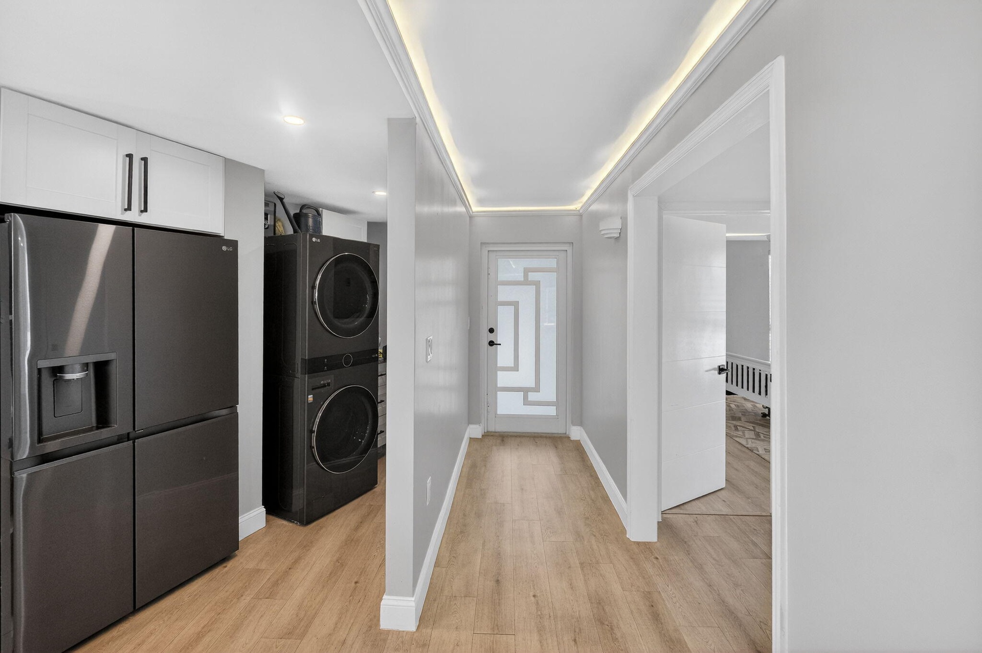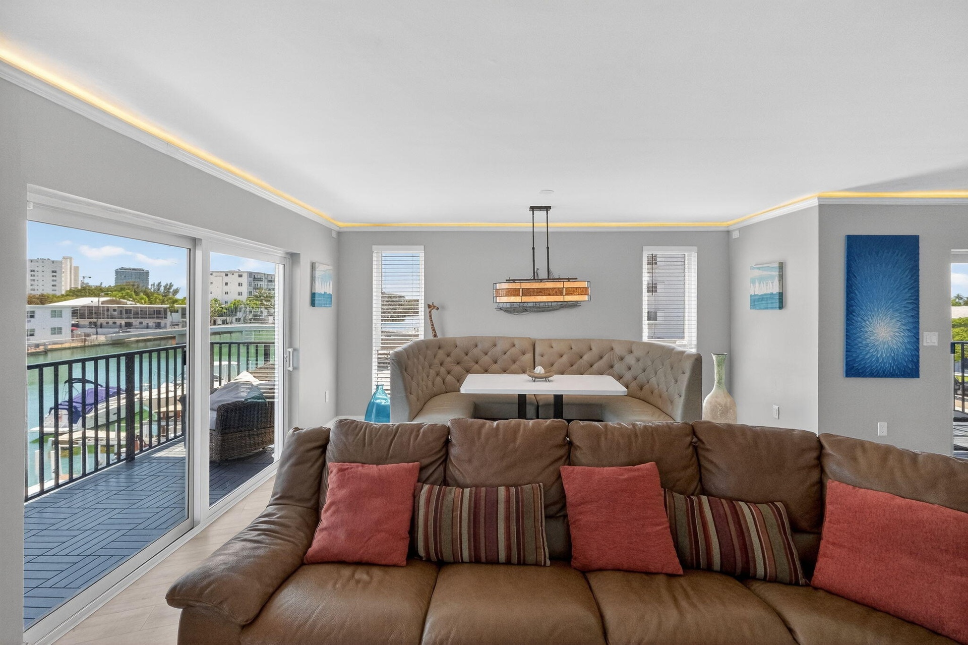 Welcome to 8125 Crespi Blvd #2, a truly rare waterfront offering in Miami Beach's coveted North Beach neighborhood. Set within an intimate boutique building of only four residences, this exceptional home enjoys the privacy and exclusivity of a full-floor layout, with each unit occupying its own floor in an elevator building. The result is a lifestyle that feels elevated, private, and distinctly refined—more like a waterfront retreat than a typical condominium. Beautifully renovated, the residence blends clean modern design with a relaxed coastal elegance. Expansive open-concept living and dining spaces are filled with natural light and framed by wide canal views, creating a seamless connection between the indoors and the water beyond. Multiple balconies invite you to enjoy morning coffee, ocean breezes, and the tranquil backdrop of boats and sparkling water, while the generous scale of the interiors makes the home feel both luxurious and welcoming. The designer kitchen is as functional as it is striking, featuring white shaker cabinetry, stone countertops, stainless steel appliances, a dramatic black tile backsplash, and water views that turn everyday moments into something special. Thoughtful details continue throughout, including beautiful wood-look flooring, elegant cove lighting, in-unit laundry, and stylishly renovated bathrooms that give the home a polished, move-in-ready feel. A versatile den adds another layer of flexibility and value, easily serving as a fourth bedroom, private office, media room, or guest retreat. The spacious bedrooms offer comfort and privacy, while the overall layout is ideal for both quiet enjoyment and effortless entertaining. Outside, residents enjoy covered parking, a shared waterfront deck, and boat dockage available at an additional cost—perfect for buyers seeking a true waterfront lifestyle. Just as appealing is the location: tucked along the water yet only a short walk to the ocean at Miami Beach, and moments from the local restaurant scene, neighborhood cafés, and the charm that makes North Beach so desirable. 8125 Crespi Blvd #2 offers a rare combination of boutique exclusivity, full-floor privacy, modern renovation, and walkable Miami Beach waterfront living. This is luxury with a more intimate, authentic point of view.