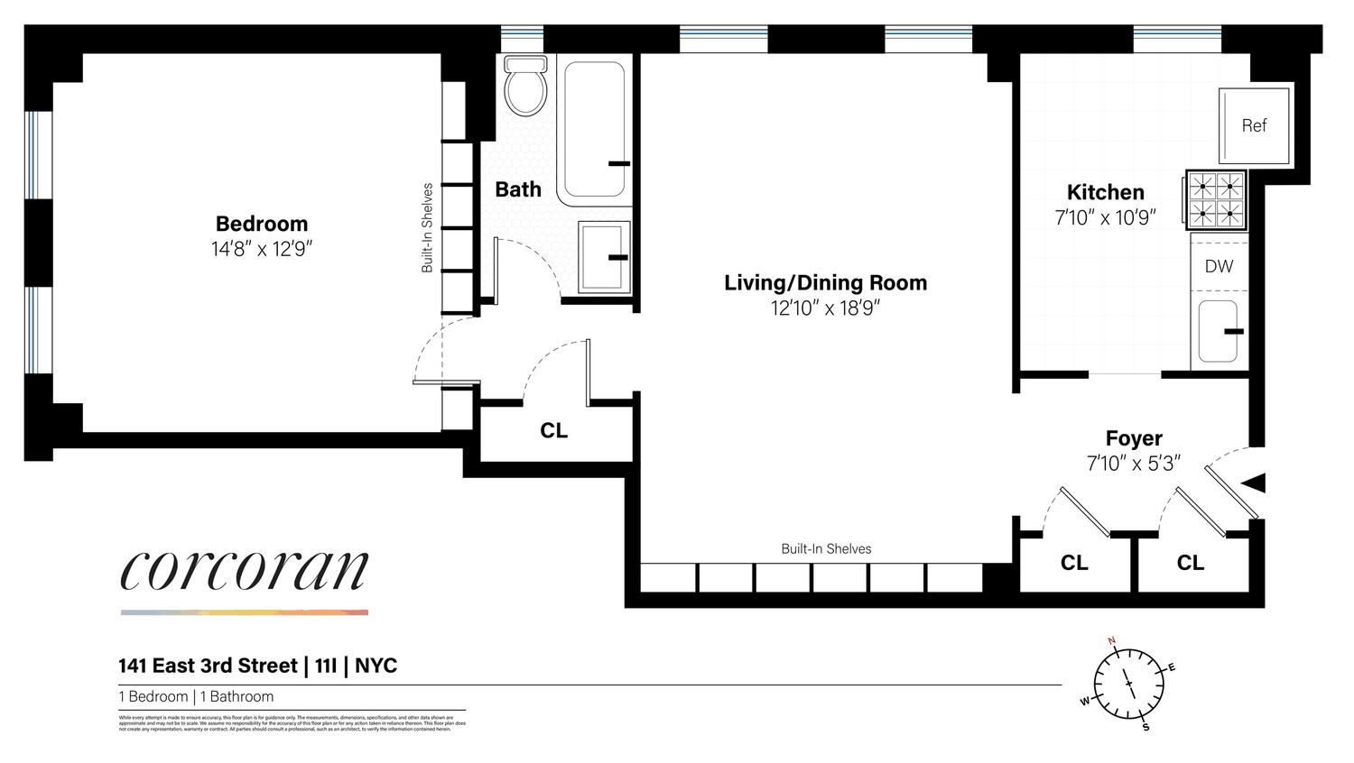 141 East Third Street, 11I East Village High Floor Pre War Charmer High floor, sun filled, corner one bedroom coop with spacious rooms and a gracious layout.