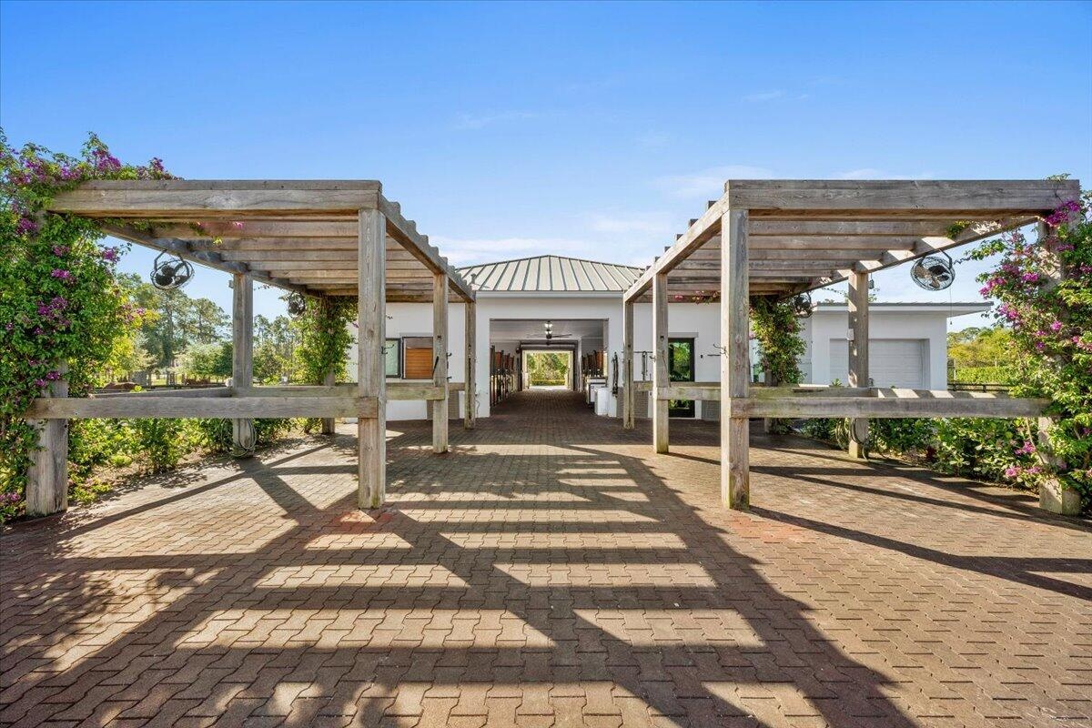 Imagine waking up to a gorgeous sunrise on your private 5 acre horse farm in the gated equestrian community of Homeland, just 10 minutes from the rear entrance of Wellington International Show Grounds. Not only is the new construction house and barn (2020) built to the latest building code, it has two master suites - one upstairs and one down, with many options to customize the space to best suit your own needs. The barn was recently built out to accommodate 8 horses, plus a tack room and feed room, not to mention 4 wash stalls, an ebb and flow ring, and a viewing pavilion. Additional amenities include a private tennis court, a practice sport field, a screened pool/spa plus cold plunge and outdoor kitchen, fully gated property (3 electric gates), air conditioned garage, full home generator, elevator, two laundry rooms (upstairs/downstairs), and all impact glass.