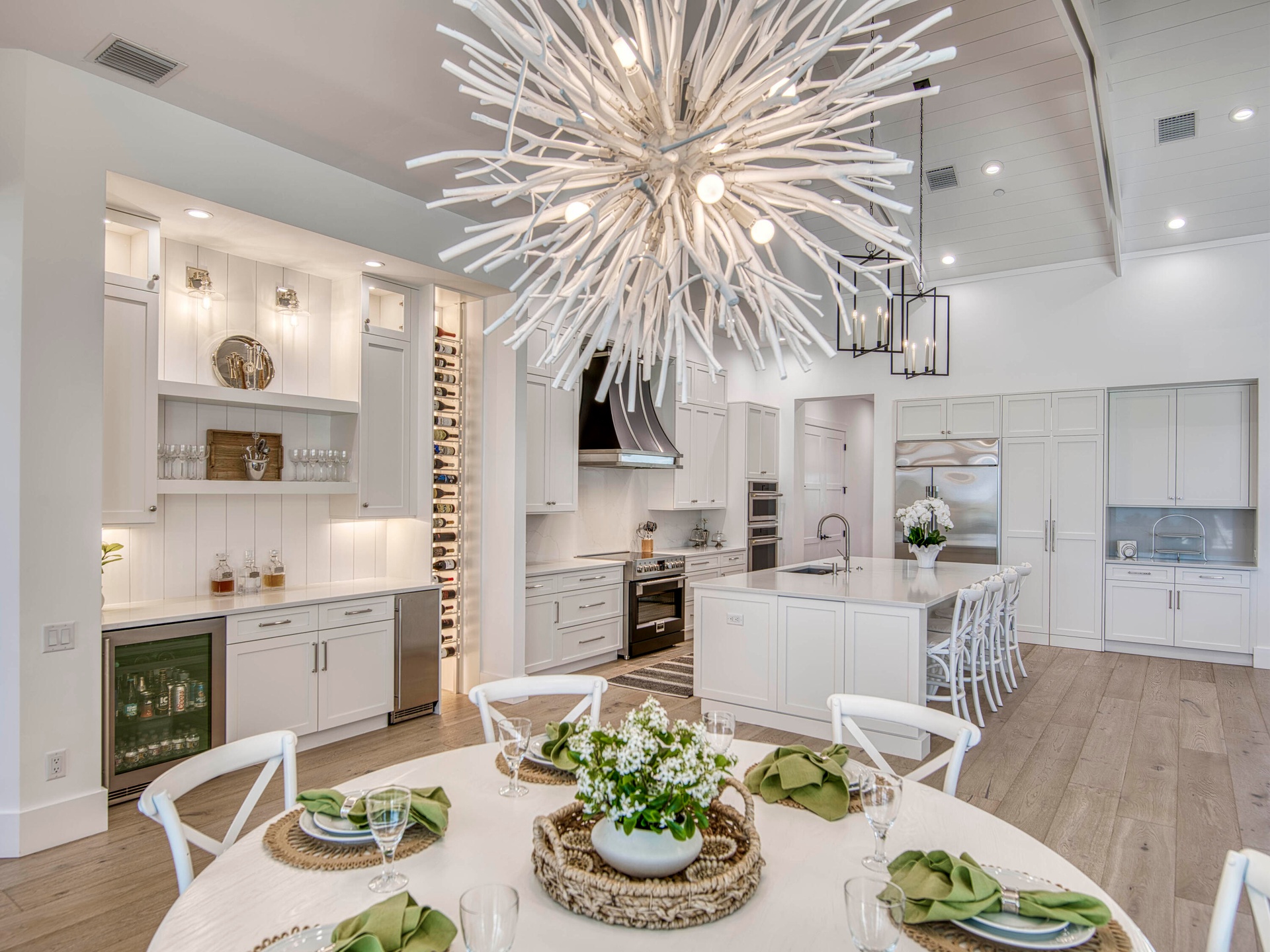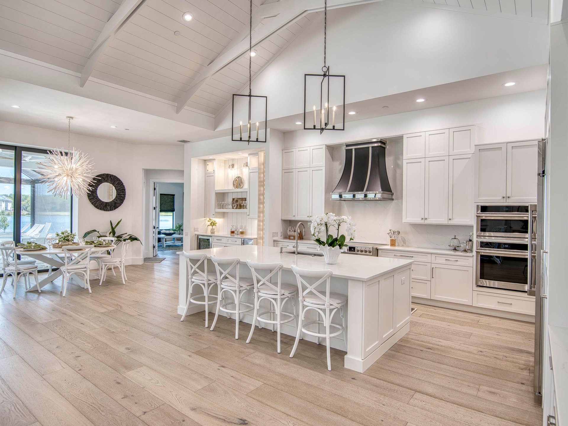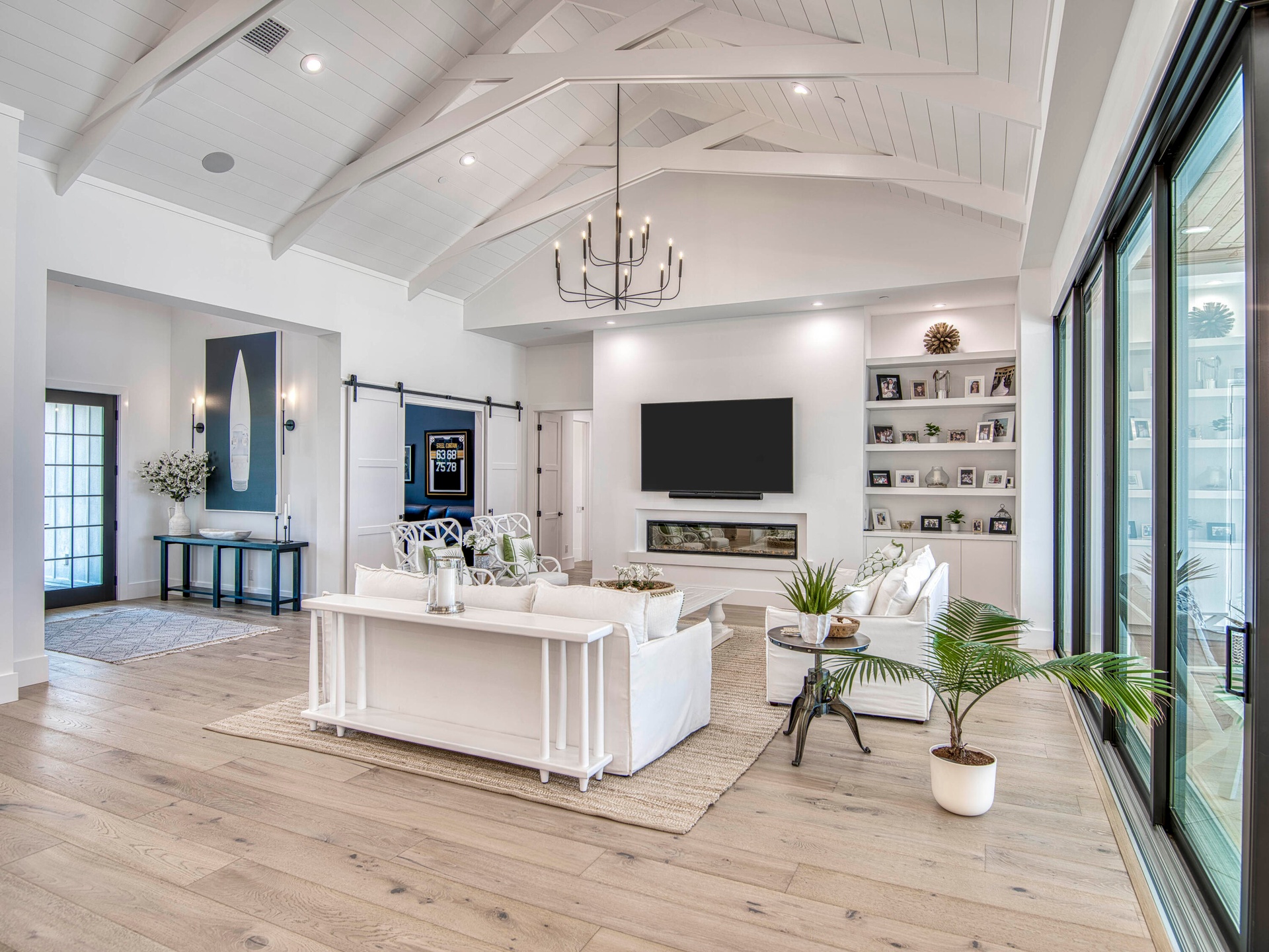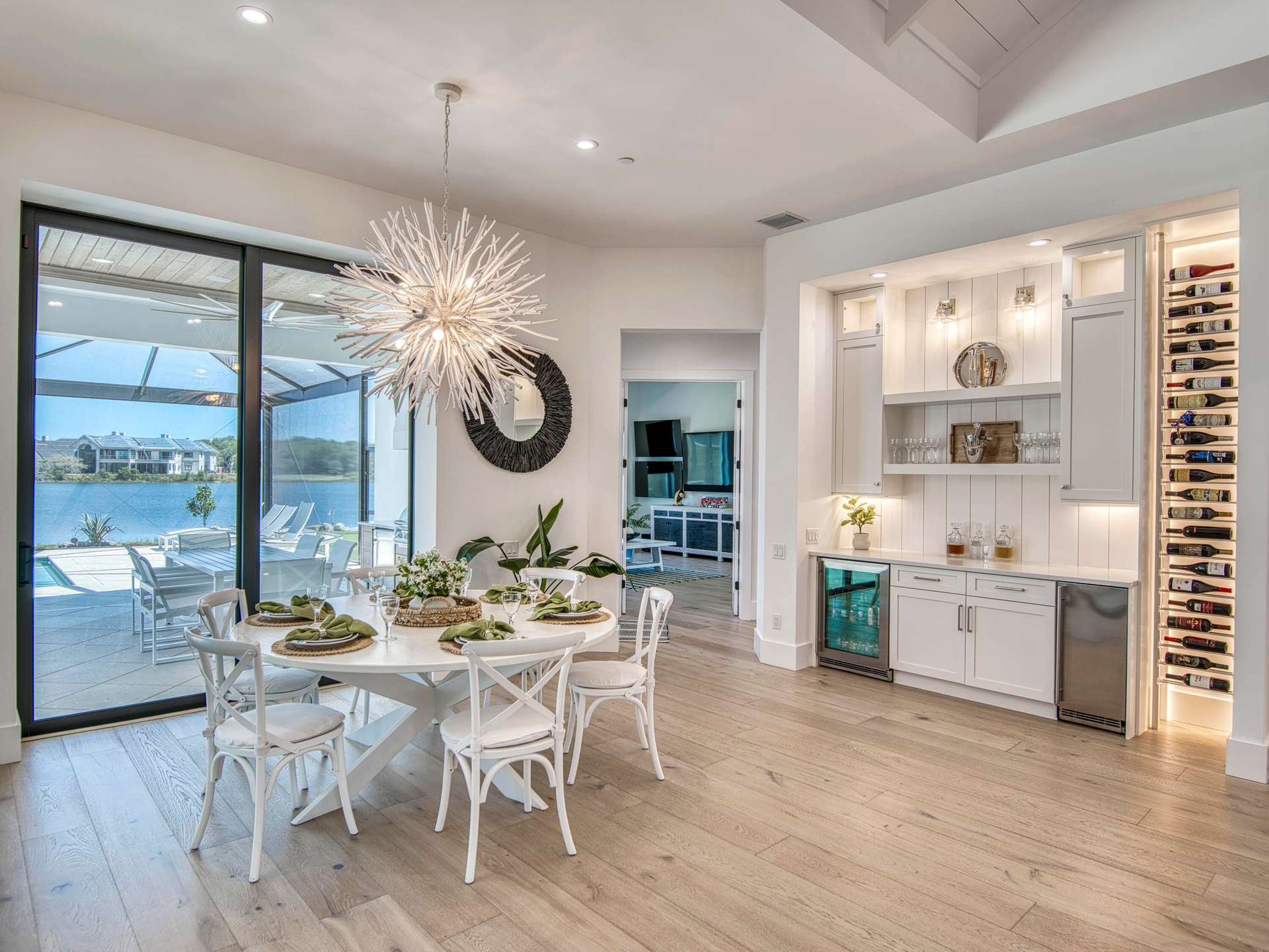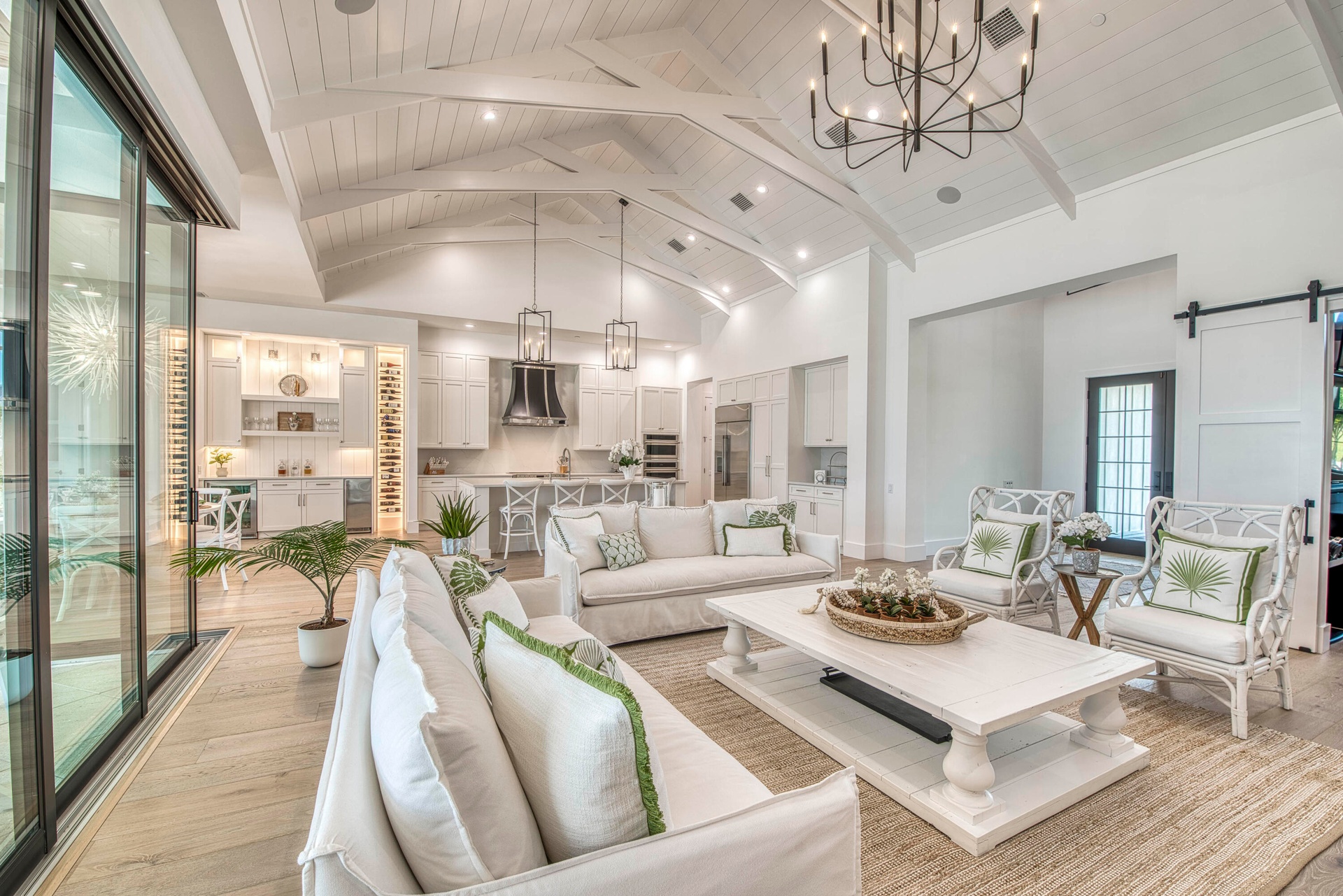 Experience elevated luxury living in this stunning 4-bedroom, 4.5-bath estate located in the exclusive and private community of Pentalago. This custom-built masterpiece by Arthur Rutenberg sits on an expansive 5-acre lot, offering breathtaking water views and unmatched tranquility. Inside, you'll find four spacious bedrooms, each featuring its own en-suite bathroom and walk-in closet, along with a convenient half bath for guests. Two versatile bonus rooms provide endless possibilities for a home office, media room, club room, or additional living space. The grand living area showcases a thoughtfully designed open-concept layout with soaring 20+ foot ceilings, accented by custom wood beams and elegant tongue-and-groove shiplap detailing. The gourmet kitchen is truly a chef's dream, featuring quartz countertops, solid-wood white shaker cabinetry, a large center island, custom kitchen hood, walk-in pantry and top-of-the-line Monogram appliances, including premium Fulgor Milano oven. Step outside to your private resort-style oasis. The expansive outdoor space includes a massive, heated saltwater pool overlooking serene wide water views, a custom putting green, beached hammock area, and a fire pit area, ideal for relaxing evenings under the stars. The oversized screened-in patio features pine wood shiplap ceilings and a fully equipped summer kitchen, making it perfect for year-round entertaining. Pentalago is a vibrant and active lakeside community. With five scenic lakes, residents can indulge in a variety of thrilling water activities, including slalom skiing, trick skiing, jump skiing, paddle boarding, and more. It's the perfect blend of outdoor adventure and serene natural beauty. Schedule your private showing today!