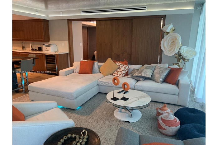 SPECTACULAR BEACHVIEW IN AZURE CONDO... This fabulously decorated 2 Bd/2 Bath was made into a large 1 bed/den open floorplan with chic Japanese wood sliding doors. This stunning layout offers a unique contemporary design offers a fresh point of view. Upon entry a lovely foyer awaits. Followed by the den then a sleek kitchen with Miele & Subzero appliances with stone counter-tops, bright living & dining area. The exquisite master suite is equipped with massage showers and a large spa tub which are state-of-the-art. Take in the sea breeze on the oversized balcony. At Azure Condo residents can enjoy world class amenities including spa, sauna, massage & treatment rooms, heated pool, fitness center & beach service! At walking distance from Surfside shops, Bal Harbour shops, restaurants & more!