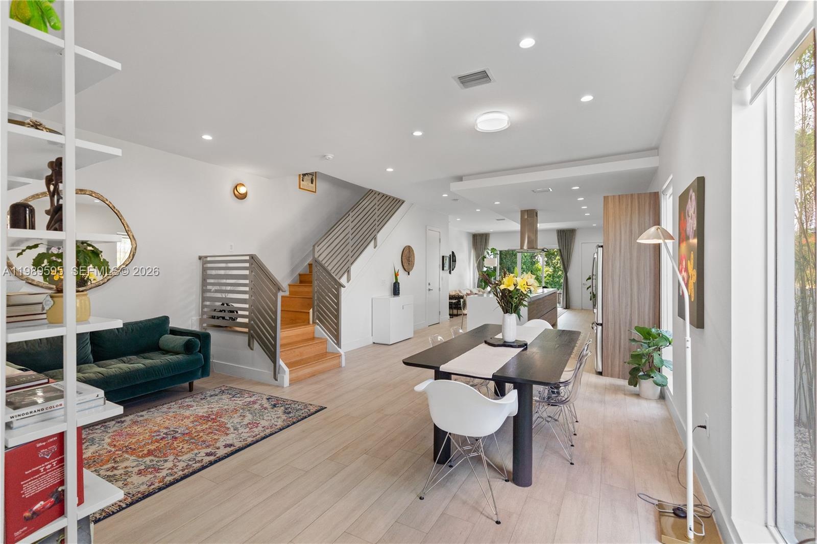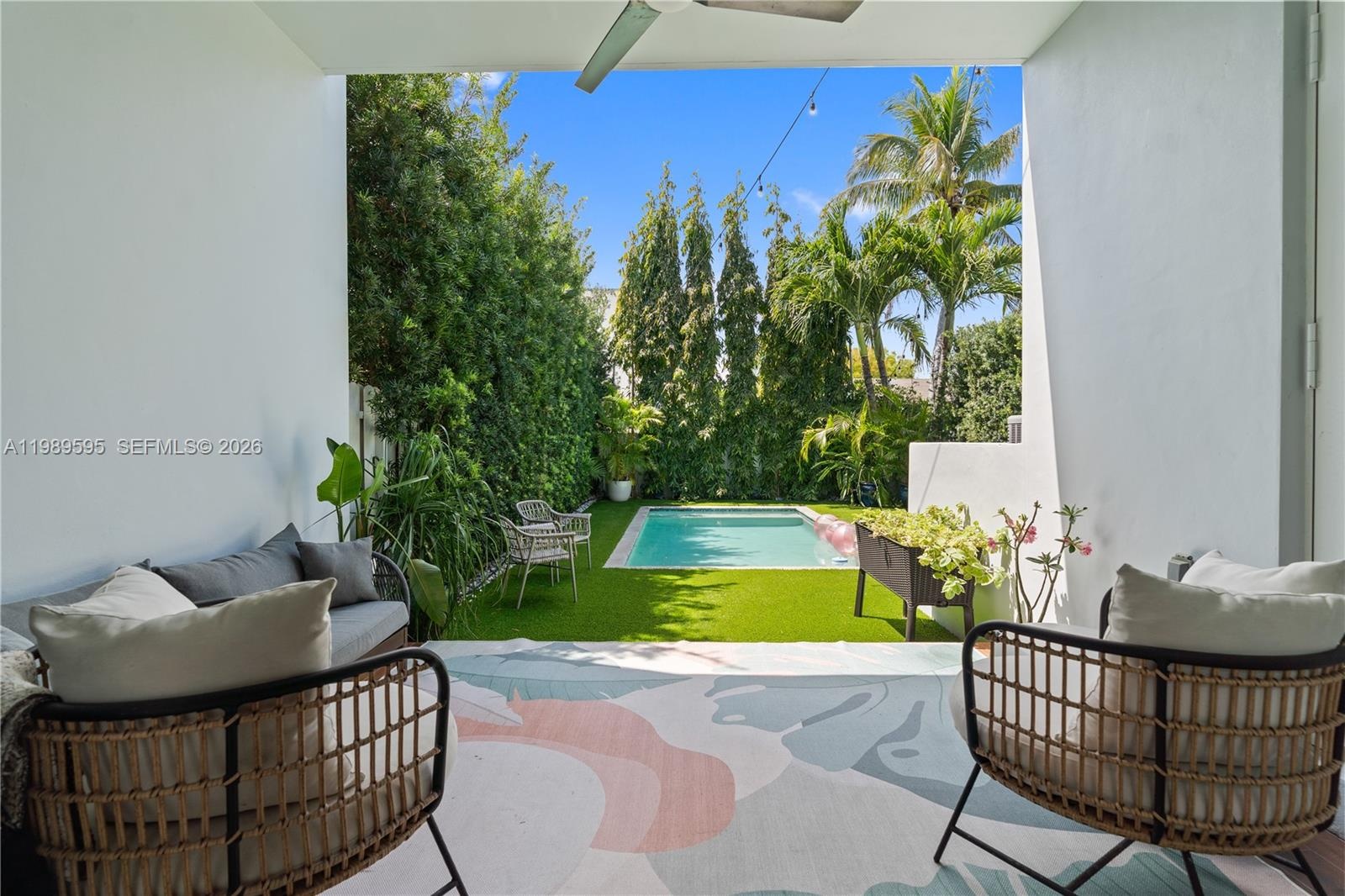 Experience modern living in this gated townhouse with a private pool and lush tropical garden, beautifully blending indoor and outdoor living. Featuring an open-concept layout, this home is thoughtfully designed for relaxed everyday living and effortless entertaining. Upstairs, you’ll find 4 spacious bedrooms. The expansive primary suite features a private balcony, a generous walk-in closet, and a spa-like bathroom. Three additional bedrooms, including one with its own private terrace, and two bathrooms complete the second floor. Custom window treatments and tasteful upgrades can be found throughout the home. The property also includes a 1-car garage plus driveway space for 1 additional car, equipped for EV charging. Ideally located at the crossroads of North Grove, Shenandoah, and The Roads and near Coral Gables, this home is just steps from the brand new Woodside Park and The Underline. Enjoy easy access to I-95 and be just minutes from trendy restaurants, shops, and parks.