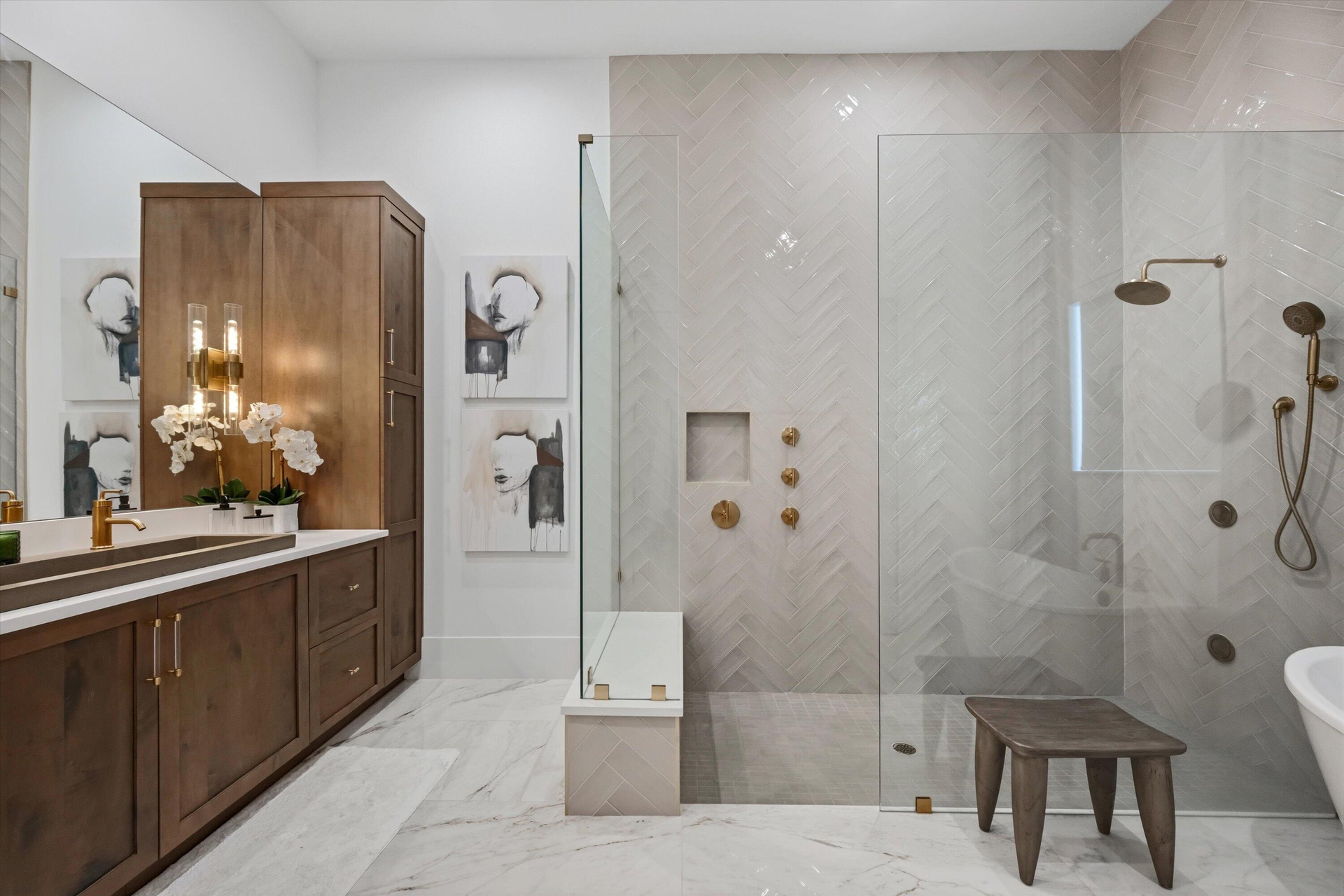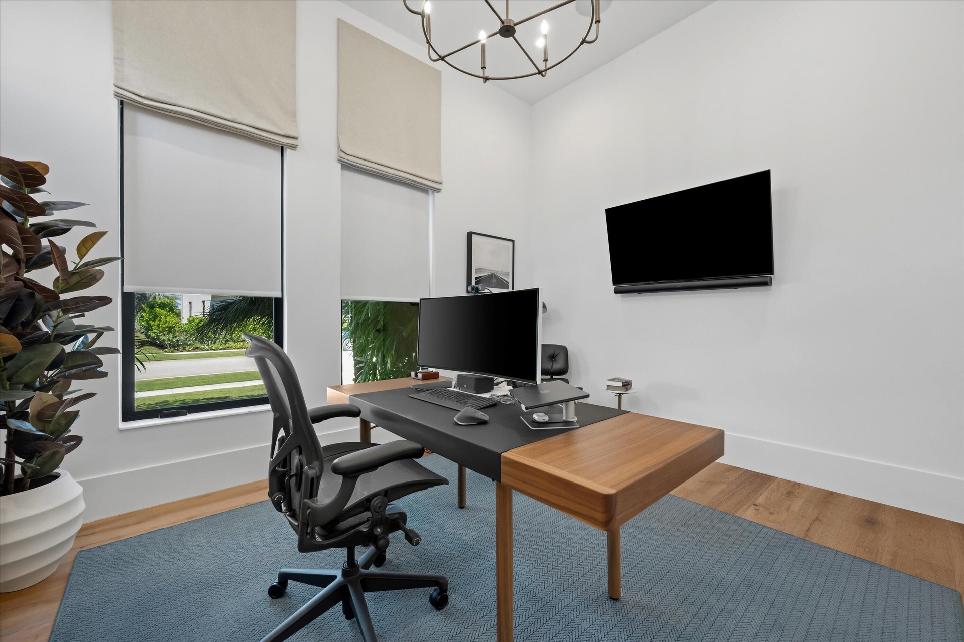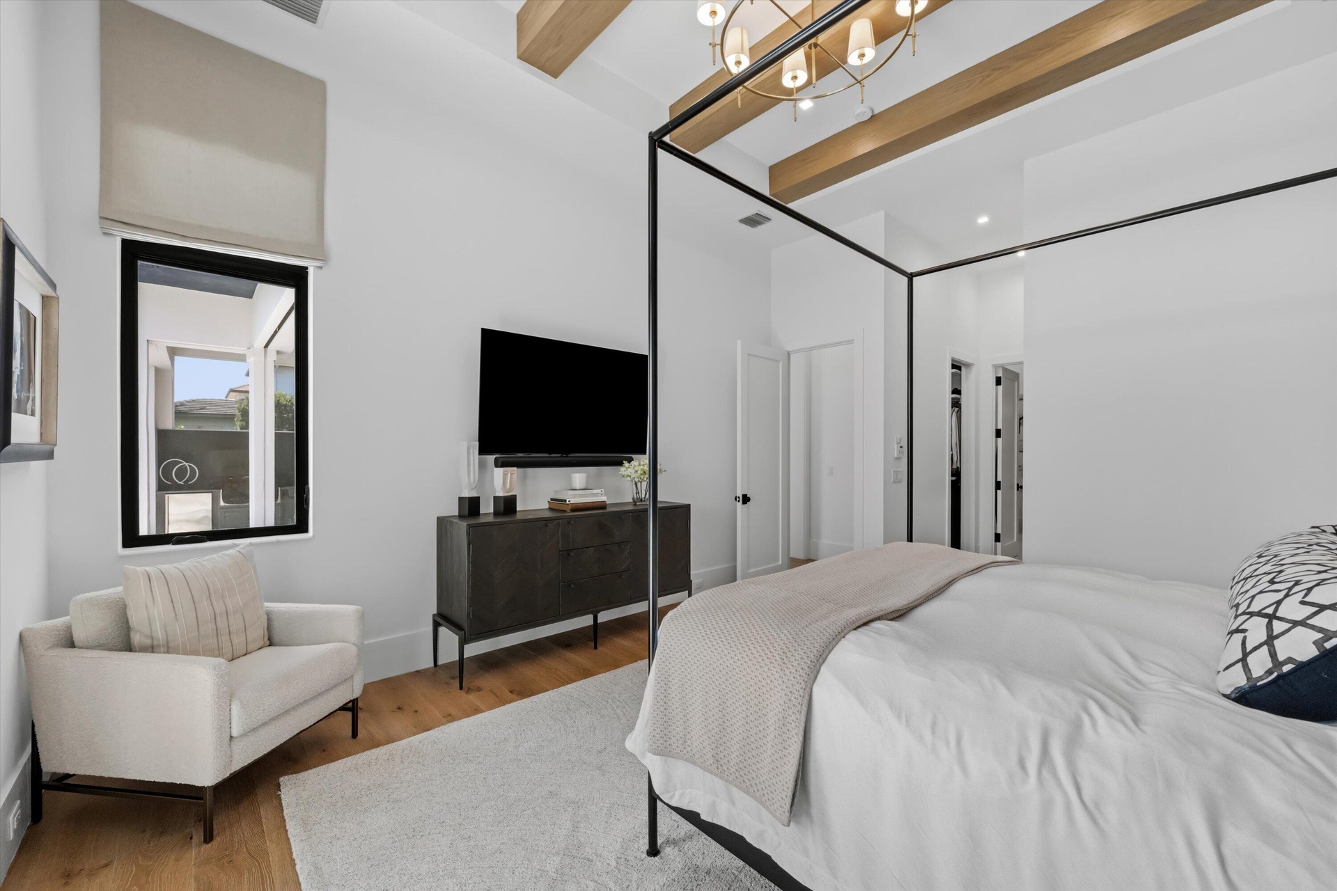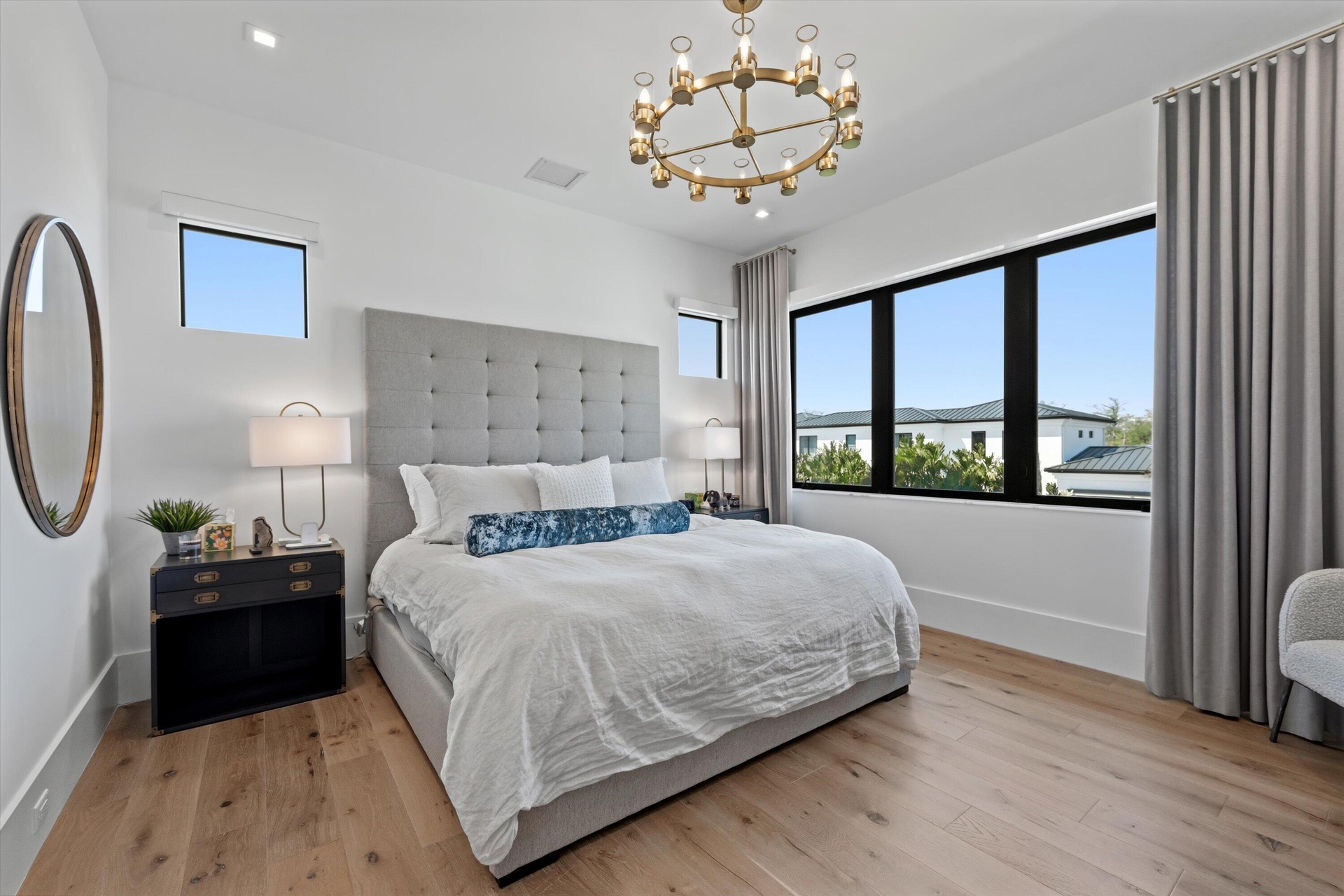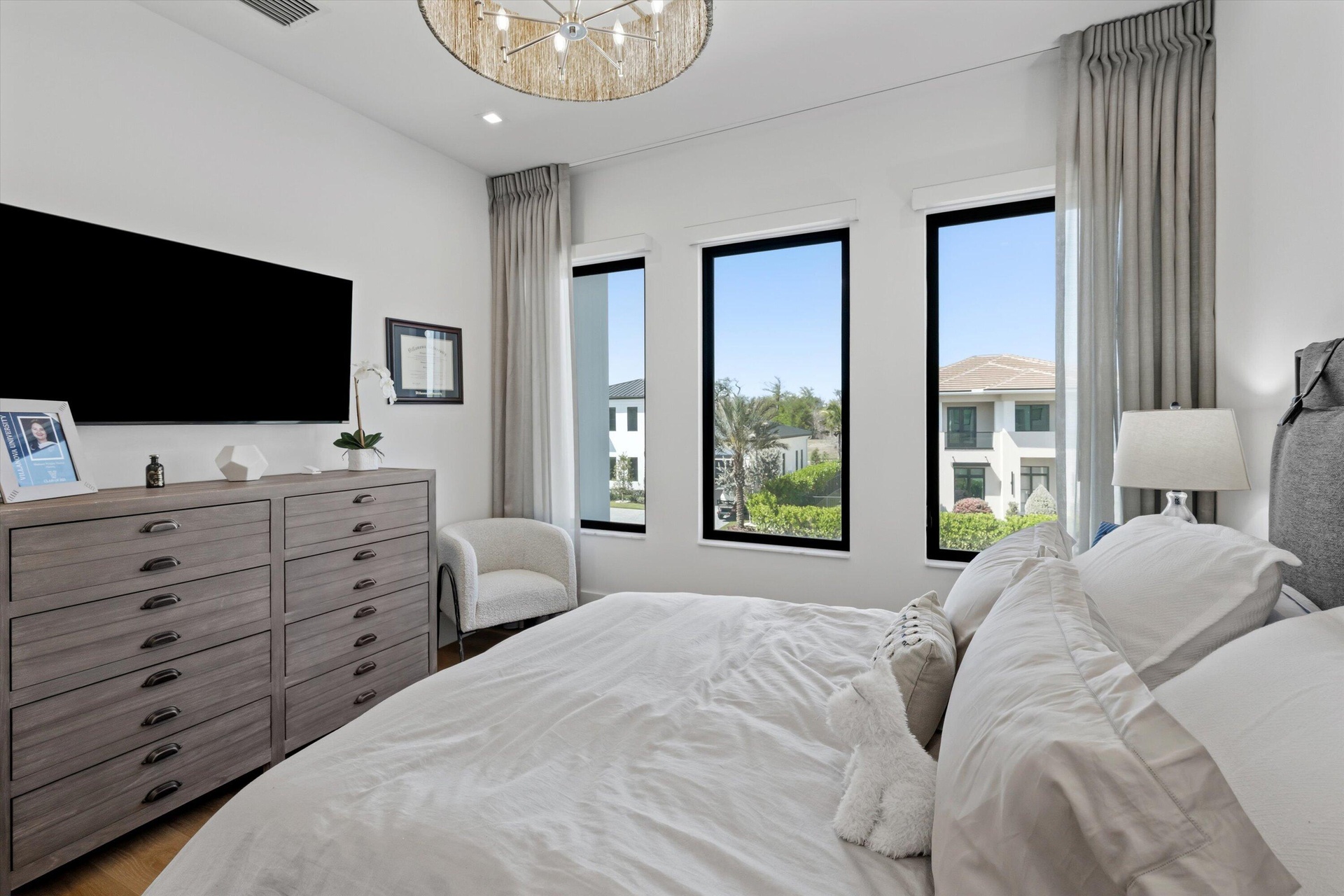 Located in the highly desirable Blue Cypress neighborhood of Palm Beach Polo, this two-story residence offers refined modern living on a rare double lot, including the adjacent parcel for added space, privacy, and future potential. The home features 4 bedrooms, 4 full and 1 half bath, and a 2-car garage. Bright, open interiors are framed by soaring ceilings, warm finishes, and expansive glass, creating a seamless connection between the indoor and outdoor living spaces. The main level includes the primary suite and a guest bedroom that can also function beautifully as an office. Upstairs, two additional bedroom suites, a balcony, and a generous loft provide comfort and flexibility. Thoughtfully designed for both everyday living and entertaining, the covered outdoor area overlooks a sleek pool and spa and includes a summer kitchen and convenient cabana bath, creating a private setting for relaxing or hosting guests. Set on an exceptional double lot, this property offers a rare combination of style, space, and privacy within one of Palm Beach Polo's most sought-after enclaves.