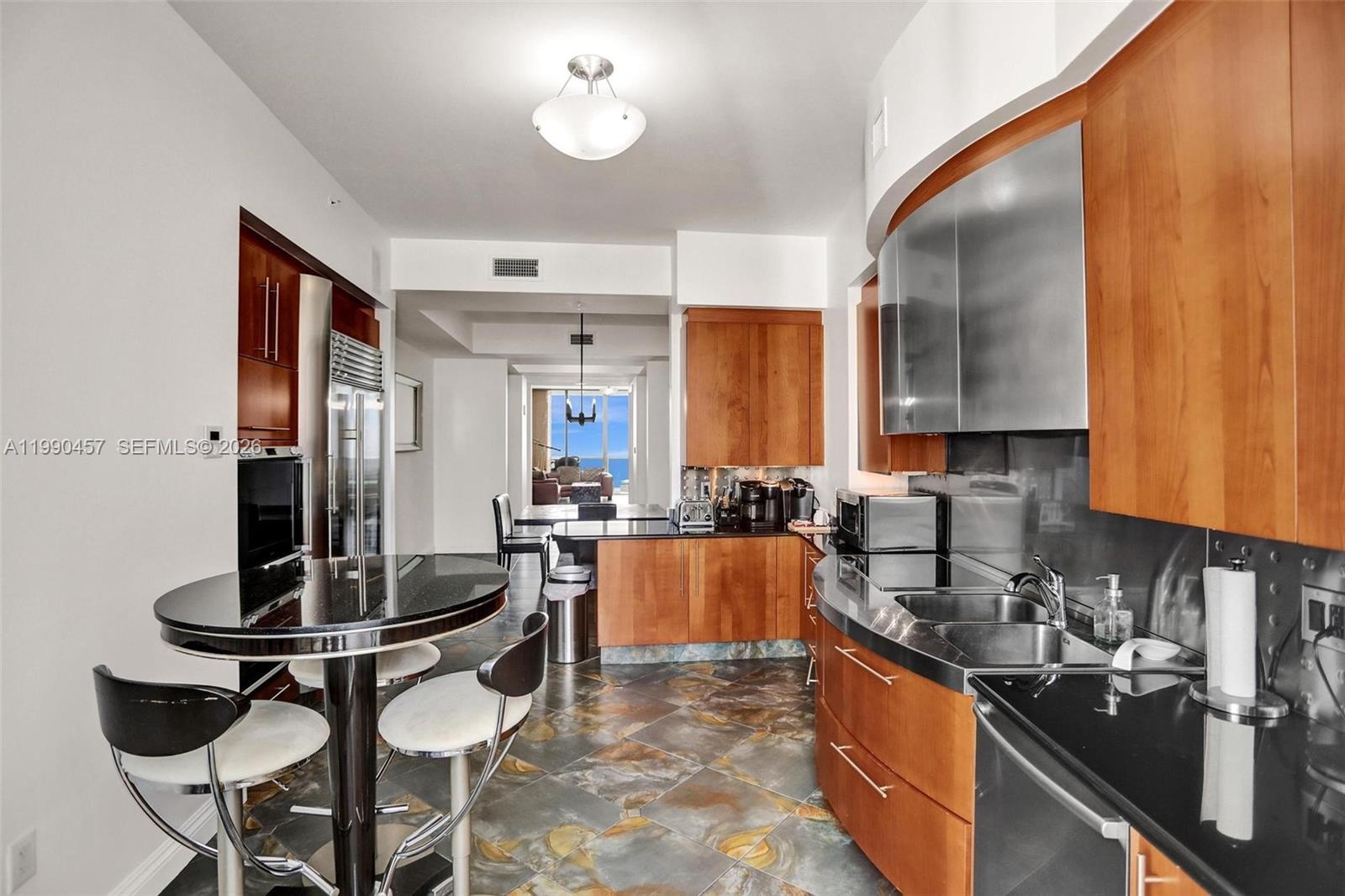 Designed for those who appreciate space, light, and exclusivity, this residence features two expansive terraces that capture both sunrise over the Atlantic and golden sunset views across the Intracoastal. Floor-to-ceiling glass and a seamless open layout create an effortless indoor-outdoor experience, while elegant marble flooring enhances the home’s sophisticated ambiance.