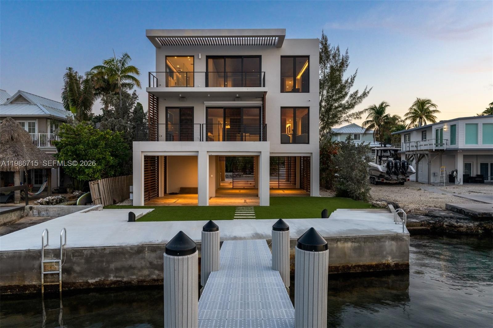 Modern bayfront residence in Key Largo, where minimalist architecture meets the natural beauty of the Florida Keys just 45 minutes from Miami.