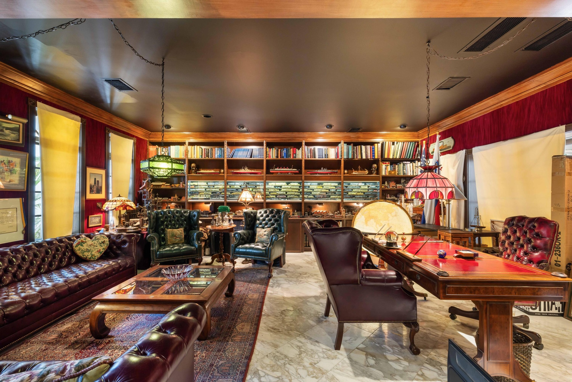 Beautiful John Volk Regency home with ocean views and beach access. Just three streets North of Mar-a-Lago in the Estate Section, this five bedroom, six full and two half bathroom home is ideal for entertaining. A 40 x 20 foot pool and two upstairs balconies with direct ocean views. Just steps away from a private beach access across the road from the house's front door. Also available during season at $58k per month.