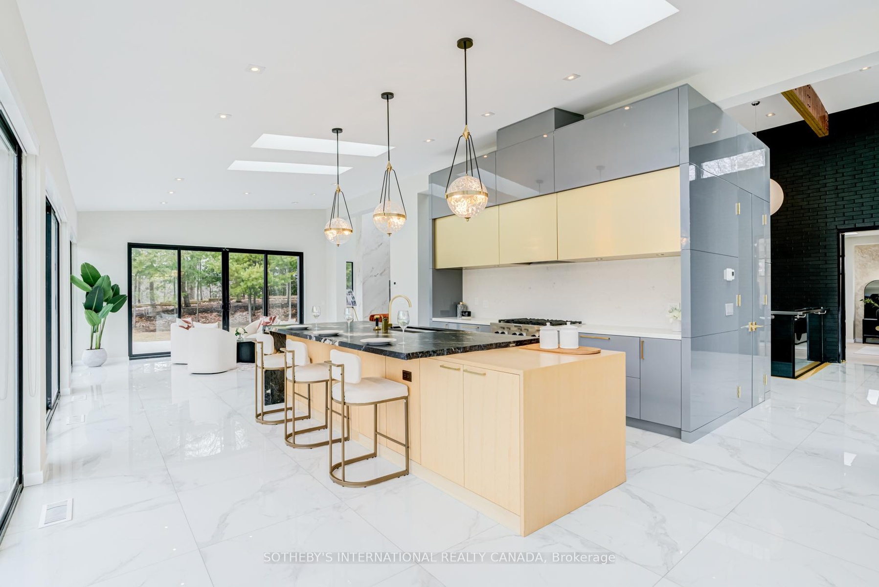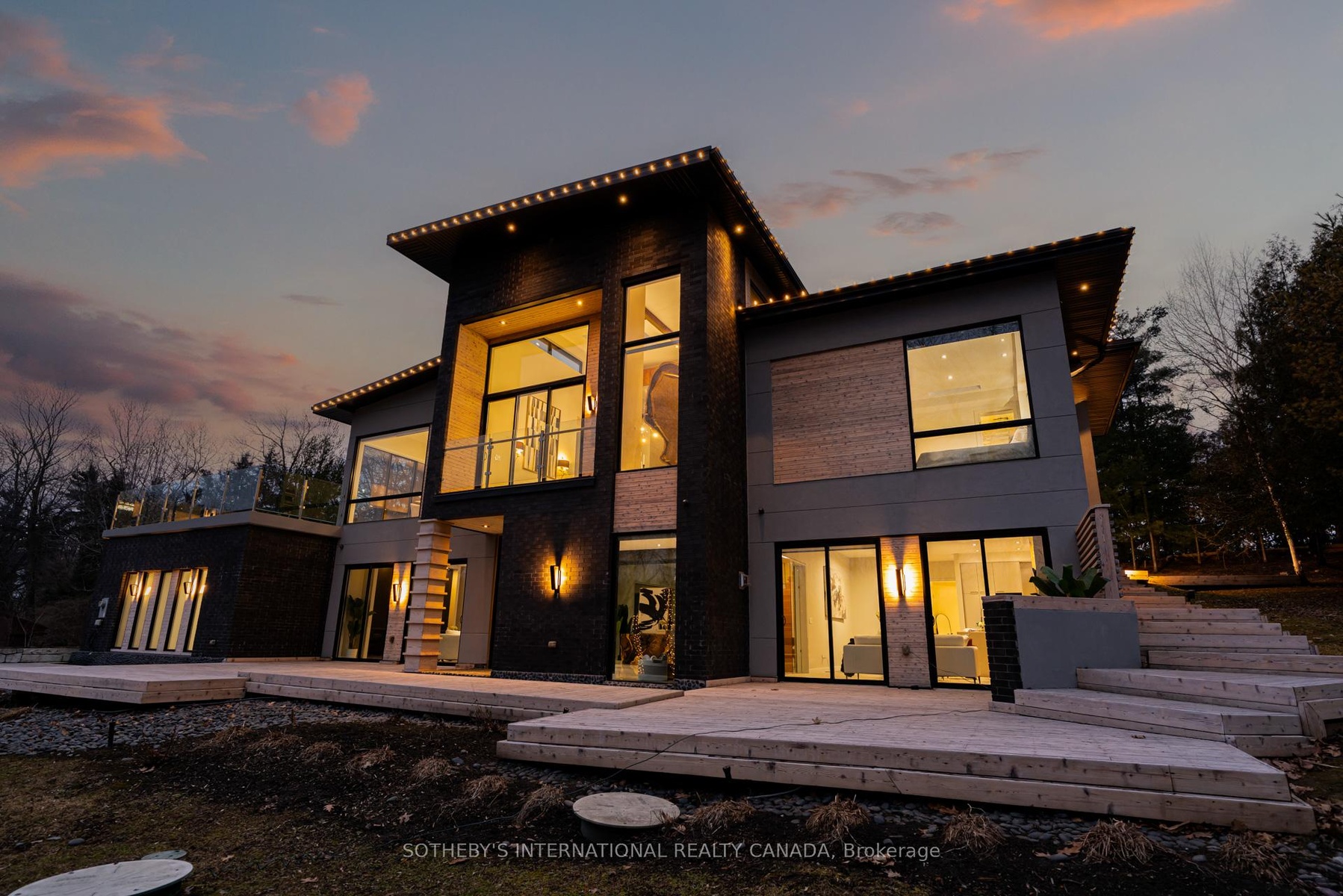 Set on an exceptional 1-acre estate lot surrounded by mature trees. Offering approximately 5300 sq. ft of refined living space, this custom-built residence delivers the ultimate in modern luxury, premium finishes, and versatility. A true highlight and one of the most sought-after luxury features of 2026 is the home's exceptional multi-generational living design. The ground level offers 10' ceilings and two impressive condo-sized suites, each complete with a full kitchen, living room, bedroom, bathroom, in-suite laundry and a dedicated terrace with sliding doors. In addition, a separate studio suite with its own kitchen and bathroom provides a flexible third space, ideal for extended family, guests, live-in staff, or a private executive office. The home is defined by the unique upside-down floor plan to maximize the surrounding views. Offering dramatic 10'-16' ceilings complemented by expansive floor-to-ceiling windows that flood the interior with natural light. A seamless indoor-outdoor flow anchors the principal living spaces, ideal for both everyday living and elevated entertaining. Outdoor living is equally impressive, with a spectacular 970 sq. ft infinity cedar deck overlooking the serene landscape, as well as a rare 915 sq. ft rooftop terrace, perfect for entertaining or unwinding in total privacy. Ideally located just minutes to top-tier schools, golf courses, fine dining, and major commuter routes, this is a rare offering that combines privacy, prestige, and forward-thinking design, perfectly suited for today's luxury buyer.