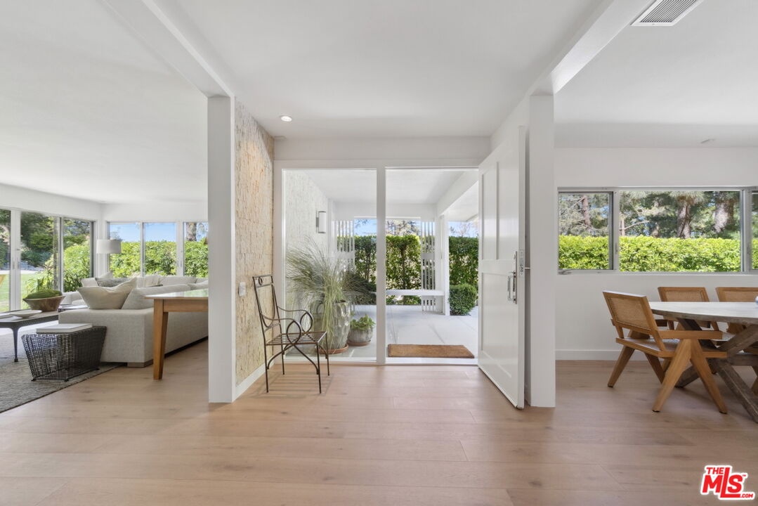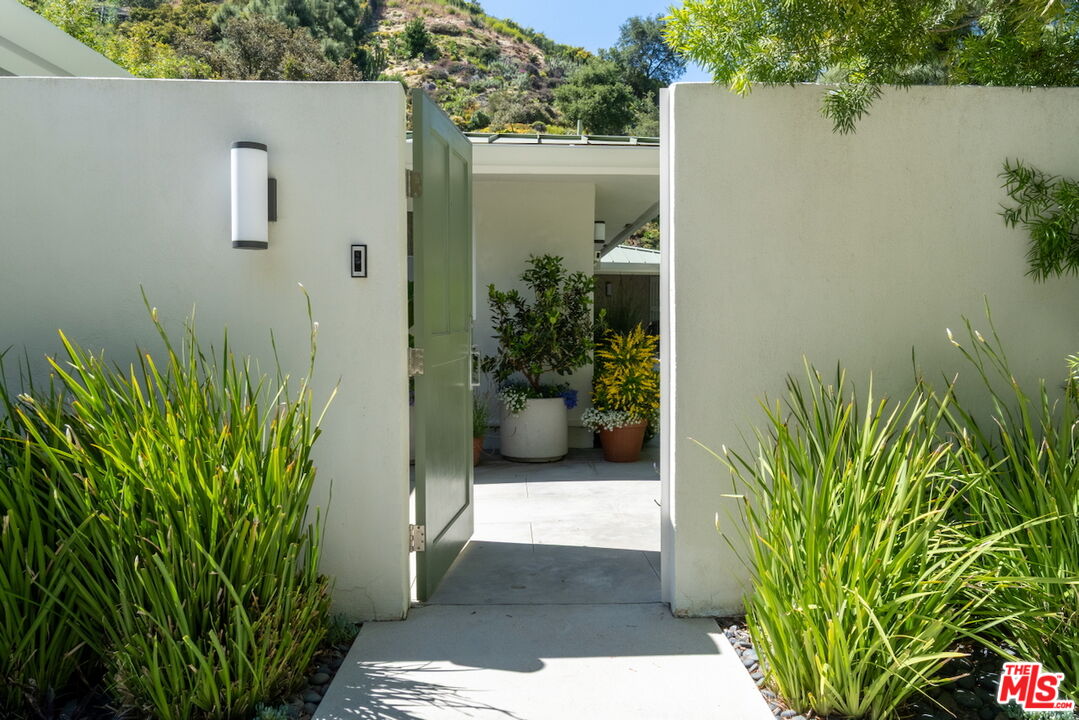 This 1966 architectural gem by Donald L. Wilbur, AIA, is sited above the road for privacy and serene canyon views. Meticulously updated with premium finishes and thoughtful design, this single-story home on nearly an acre blends indoor-outdoor living through Fleetwood doors and lush landscaping. Features include custom chef's kitchen, luxurious primary suite, versatile bedroom wing, and extensive 2010-2011 upgrades. Gated entry, expansive motor court, and potential for ADU access via over 220 + feet on Stone Canyon Road make this a rare and refined retreat. Room for a pool.