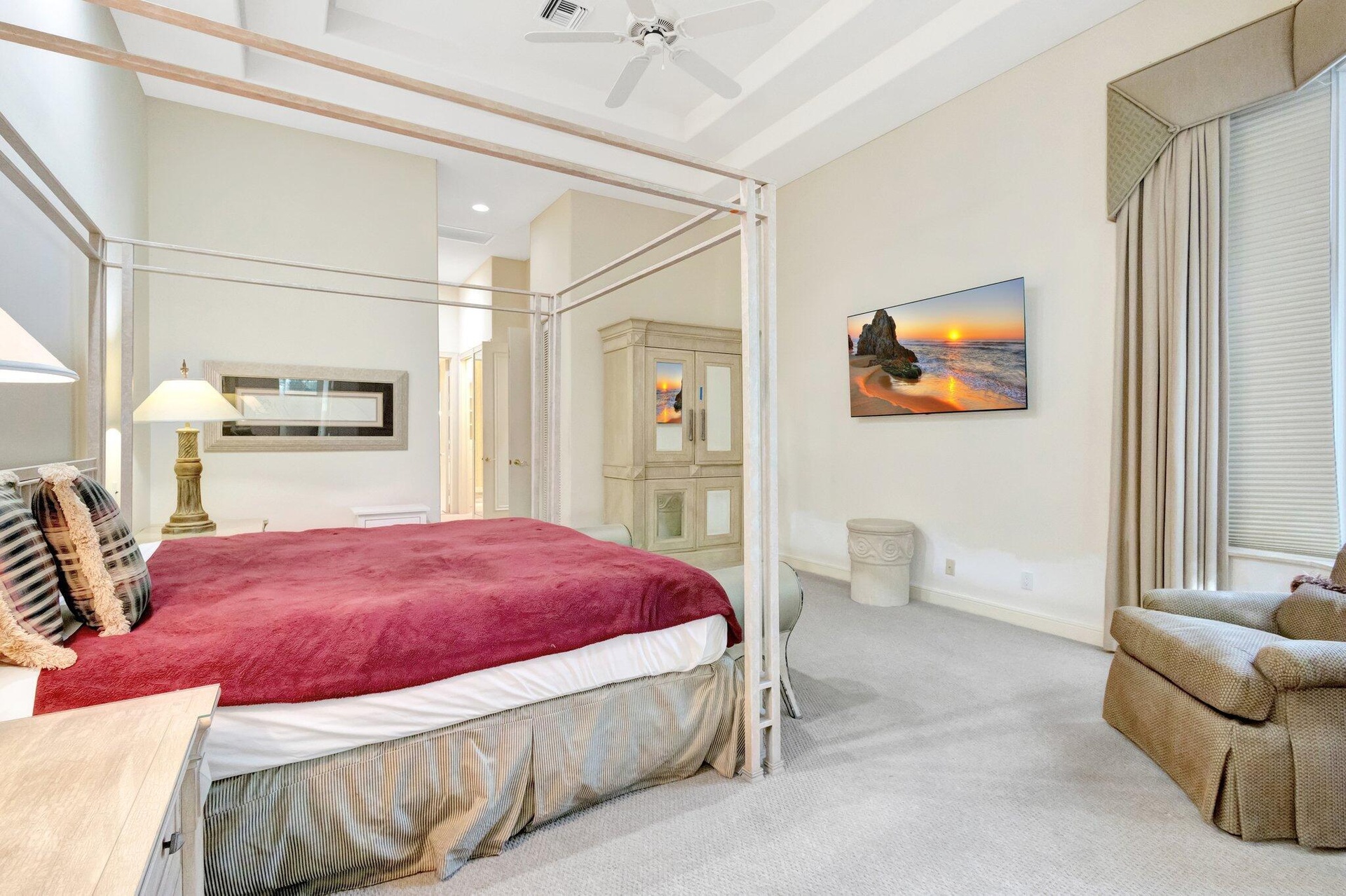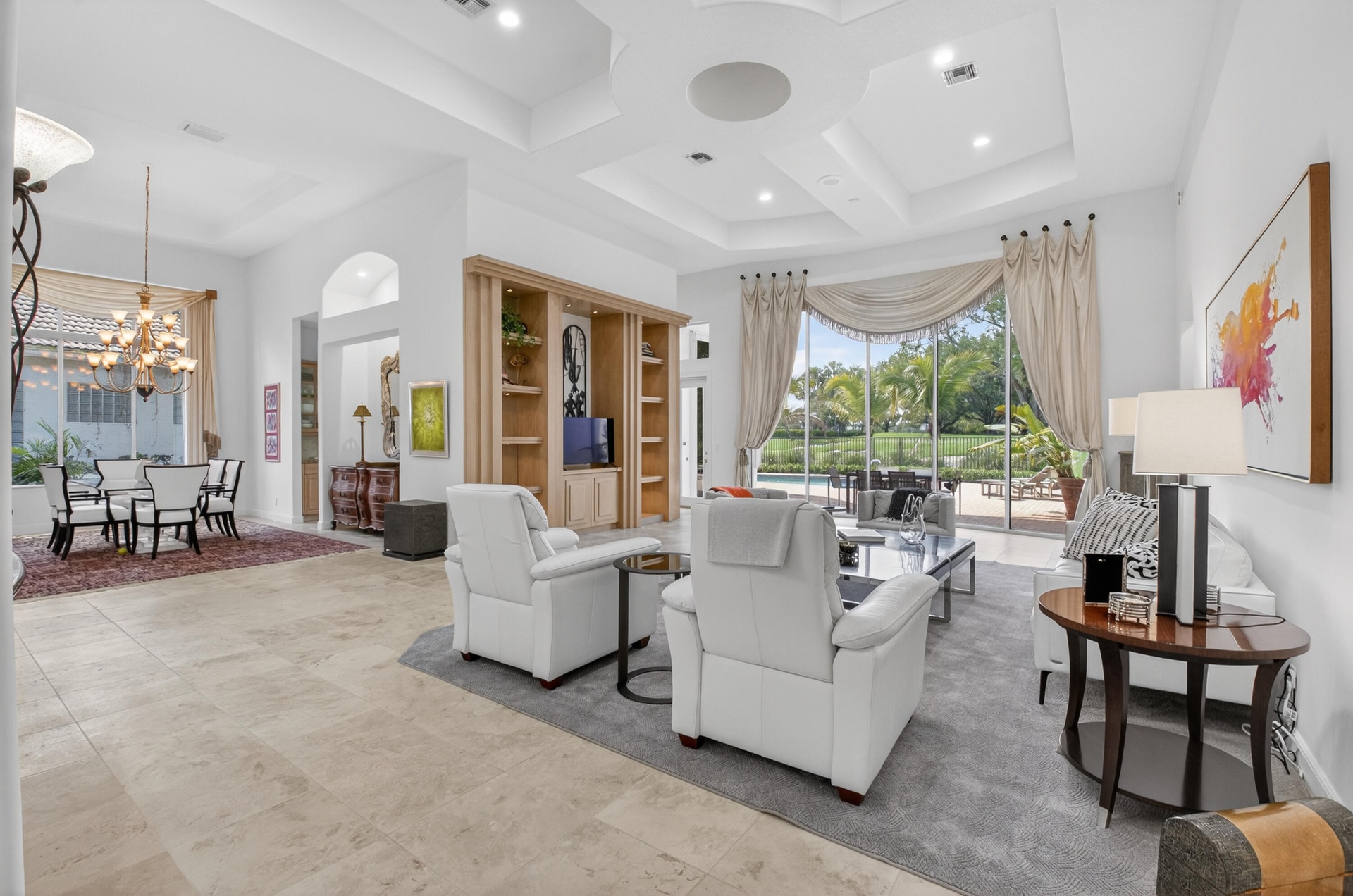 Fabulous Seasonal rental with Full Golf Membership. This beautifully appointed home offers flexible living space and resort style amenities in a prime Platinum rated golf community. The split floor plan includes a spectacular master suite which features a large sitting area, complete separate his and her bathrooms, along with expansive custom walk-in closets for ultimate comfort and privacy. There is a second bedroom with an ensuite full bathroom. There is a large separate TV room-perfect for relaxing or entertaining guests. There is also a large custom office. The home has soaring ceilings, separate dining room and great room with an entertainment bar, and a great kitchen, all open up to panoramic views of the golf course, enhancing the open, airy feel of the home. Outside, enjoy a private pool and heated spa that also overlook the lush fairways, an ideal setting for unwinding or entertaining all while the full golf membership elevates your lifestyle whether you're here for the season or year-round. Don't miss this unique opportunity.