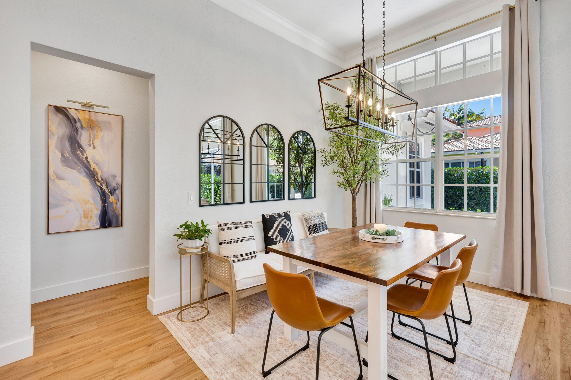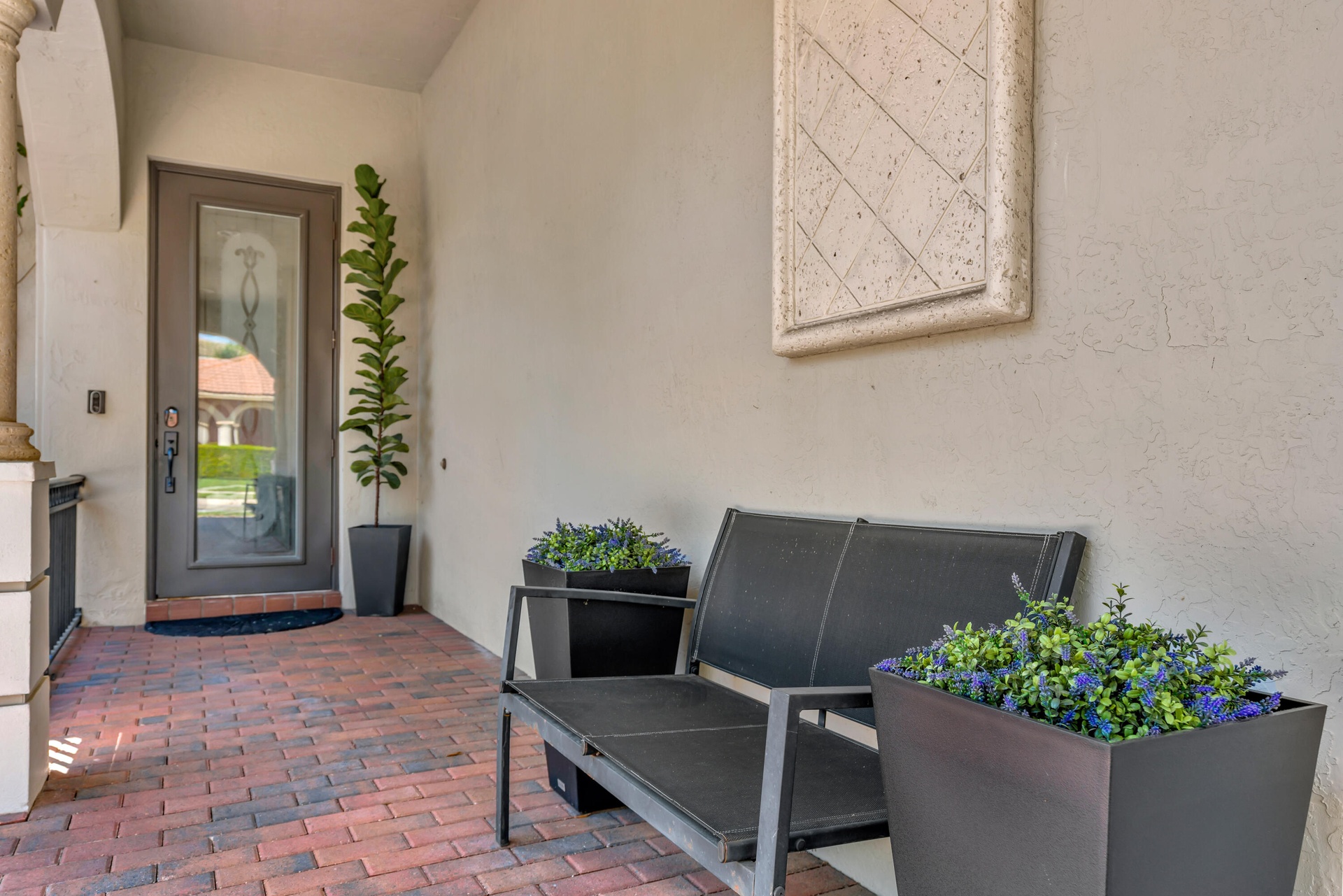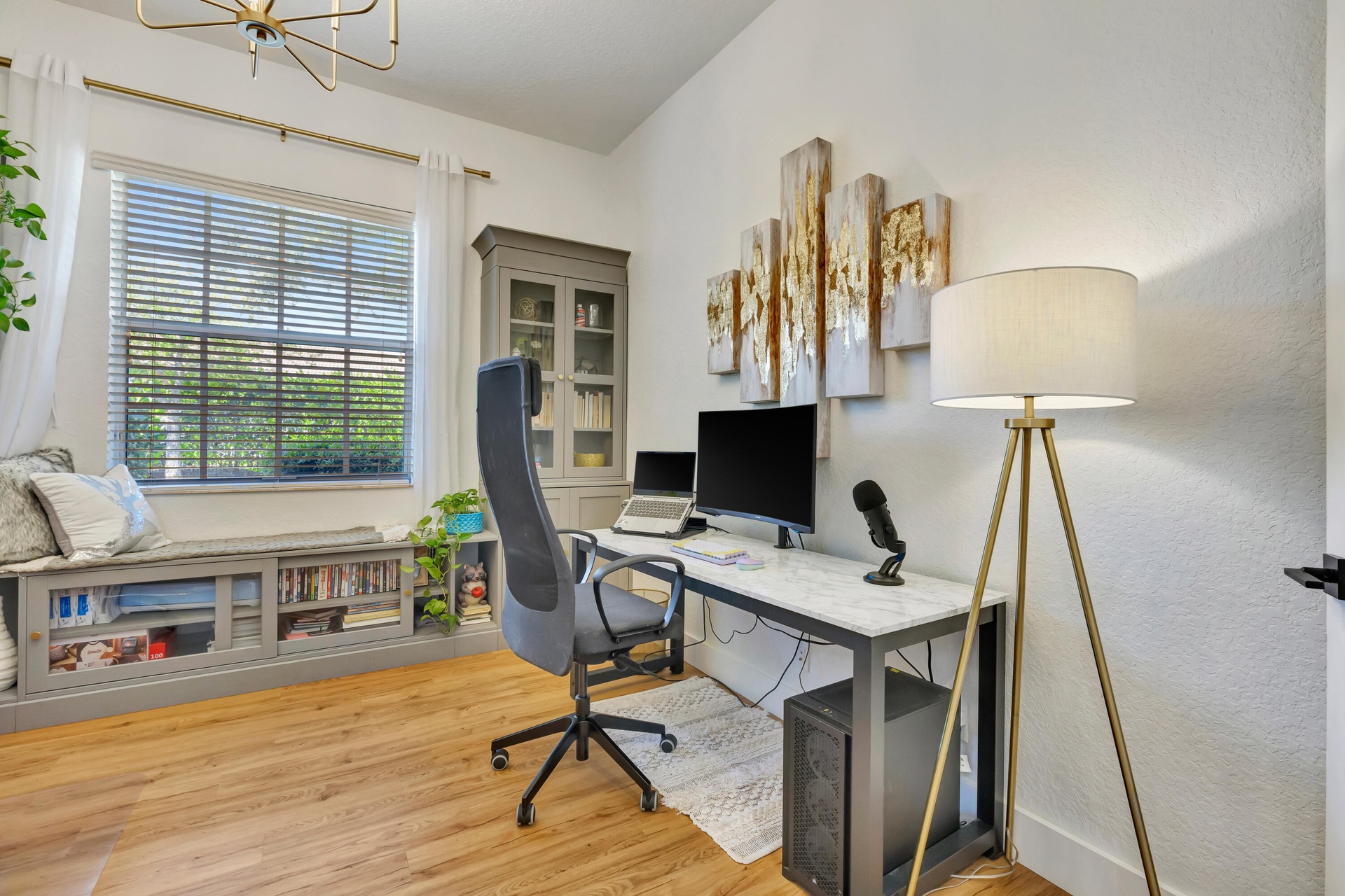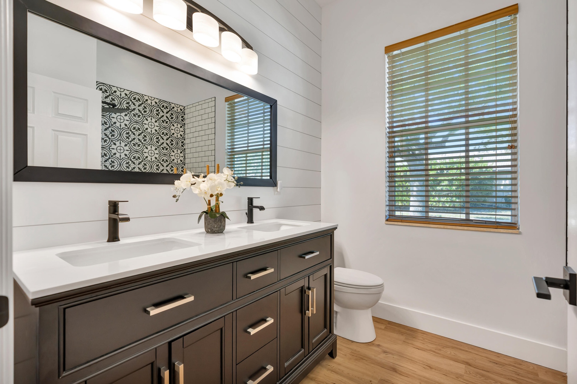 Low HOA ($145/mo!), fully renovated designer Belmont model in the community of Paseos, offering a private preserve-side retreat on a corner lot. This beautifully customized CBS home features 3 bedrooms, 2 full bathrooms, a powder room, a den/study, and a two-car garage across 2,185 sq ft of living space (3,134 total). This beautifully customized CBS home features 3 bedrooms, 2 full bathrooms, a powder room, a den/study, and a two-car garage across 2,185 sq ft of living space (3,134 total). Thoughtfully upgraded for modern South Florida living, it combines soaring 12-foot ceilings in the main areas, luxury vinyl flooring, crown molding, and custom woodwork. The gourmet kitchen (2020) boasts quartz countertops, a 7.5' center island, solid wood soft-close cabinetry, double pantry storage, matte black hardware and matching Black Slate appliances. Interior upgrades include designer-renovated bathrooms, custom built-ins, a striking slat wall media center with built-in speakers, smart home features including Ring and Nest, and fresh interior paint (2026). Outdoor living shines with an extended marble tile patio (2024), redesigned landscaping, expanded yard space, and added privacy, complemented by fresh exterior paint. Paseos residents enjoy resort-style amenities including a beach-entry pool, tennis / pickleball courts, scenic walking nature trails throughout the neighborhood (super cool), two playgrounds, and a newly refurbished clubhouse, all just minutes from beaches, dining, shopping, and downtown West Palm Beach, Palm Beach Gardens, and Palm Beach Island.