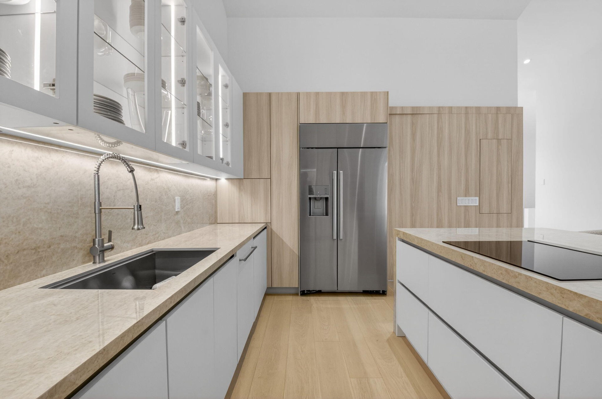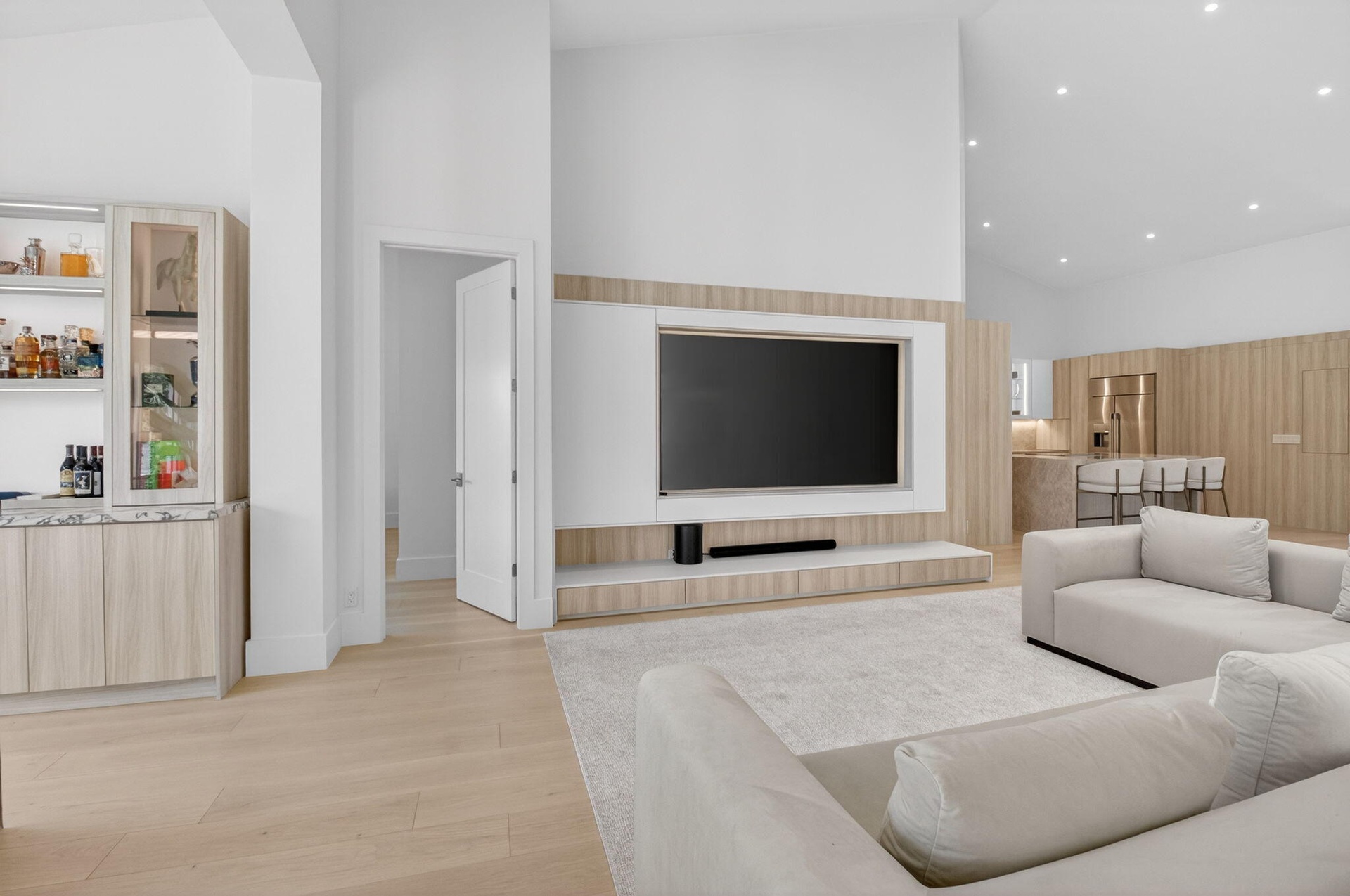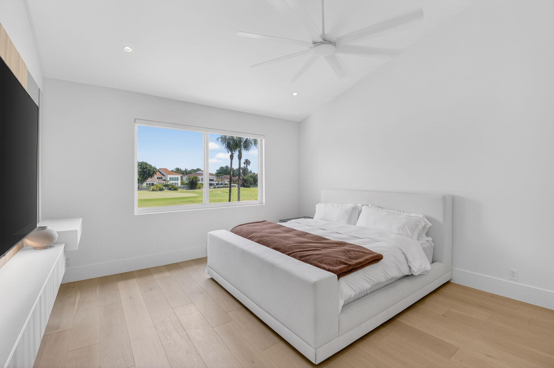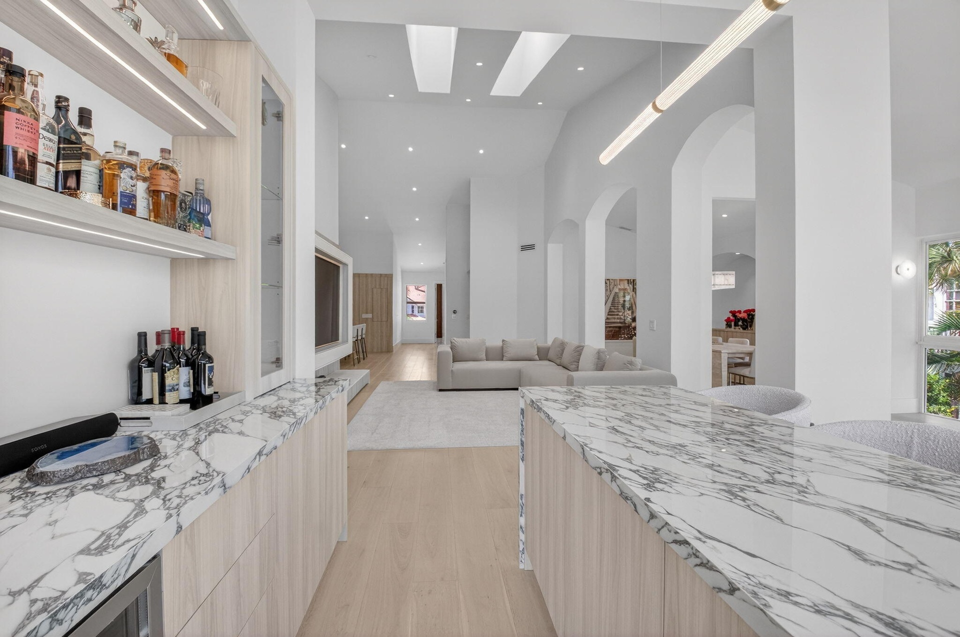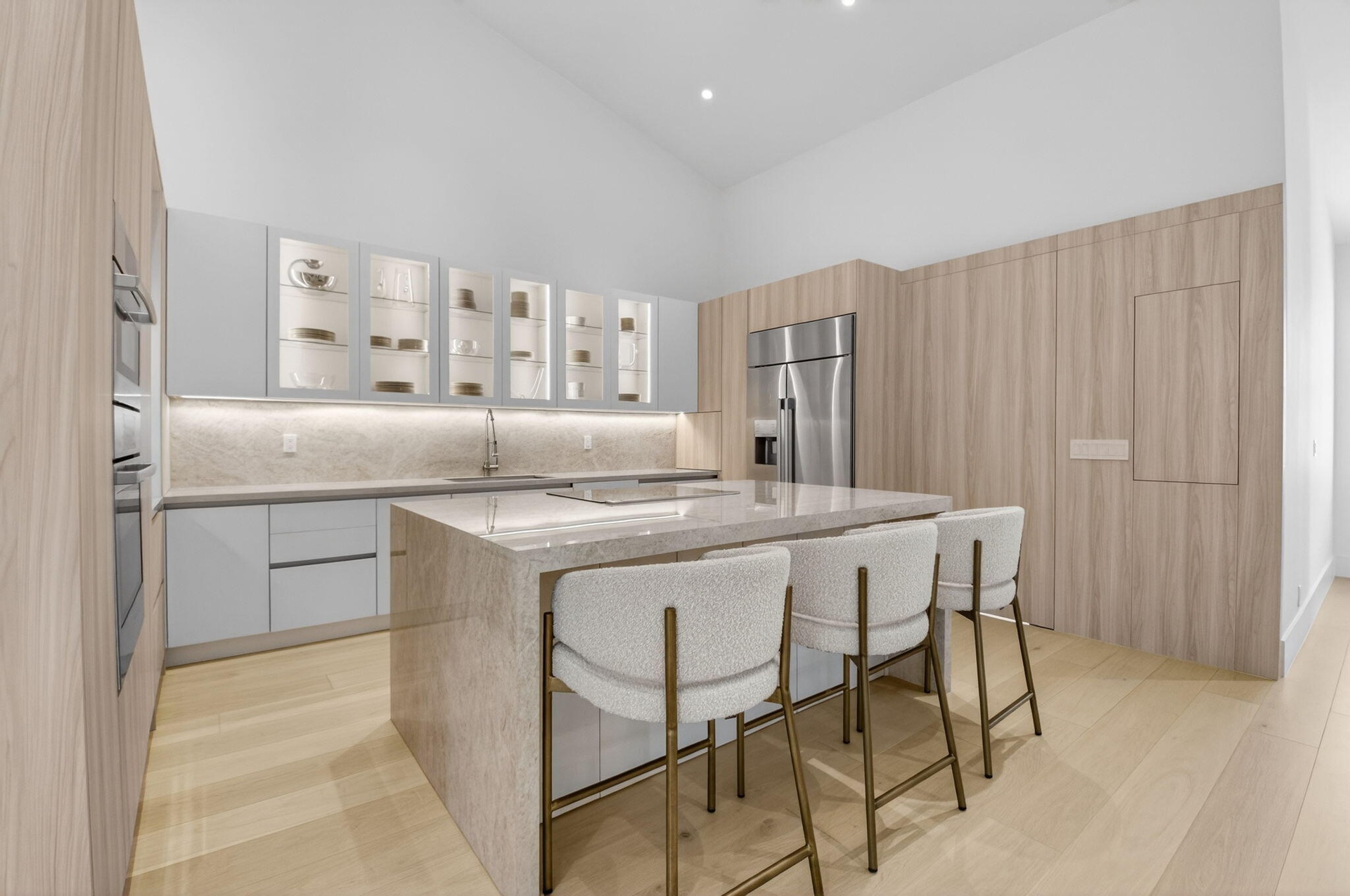 Welcome to this spectacular, fully renovated penthouse offering 3 bedrooms + office, 3.5 bathrooms, and 2,950 square feet of thoughtfully redesigned living space. This residence features a private elevator and stunning panoramic golf course views. Completed in 2025-2026, the home showcases high-end modern finishes, volume ceilings, and an open floor plan ideal for both everyday living and entertaining. Expansive wraparound impact windows flood the home with natural light while showcasing beautiful, unobstructed views of the golf course. The designer kitchen features a large island and quartz countertop, sleek custom cabinetry, premium appliances, and a seamless flow into the living and dining area. Enjoy your favorite drink at the beautiful custom bar with a waterfall countertop and seating, creating the perfect space to entertain. The split-bedroom floor plan provides ultimate privacy, with each bedroom offering its own en-suite bath. A fourth room features a unique hidden door, making it ideal for a home office, media room, or playroom. This home is one of a kind! Come experience a sophisticated yet comfortable lifestyle at Broken Sound, one of Boca Raton's most sought-after country clubs.