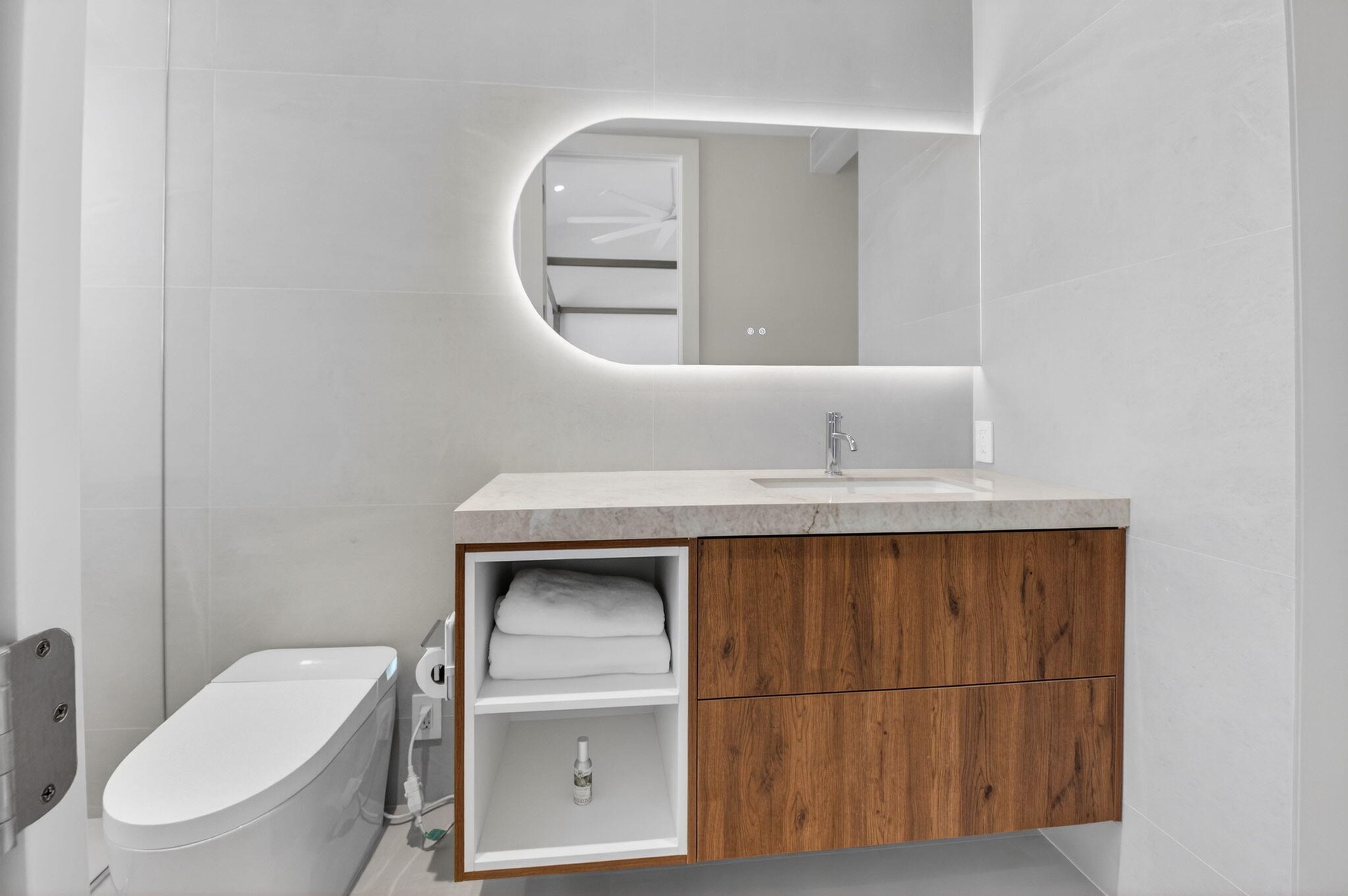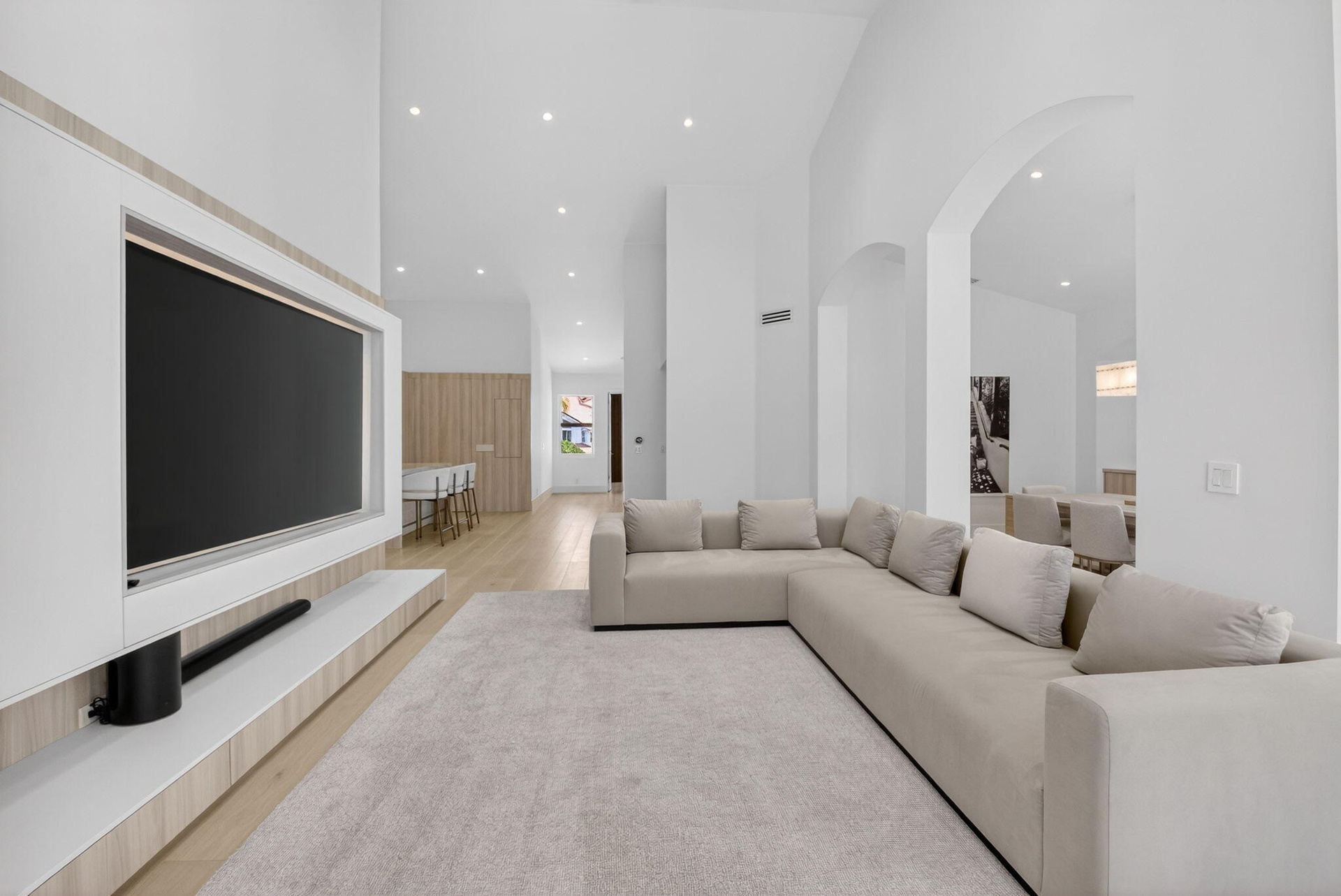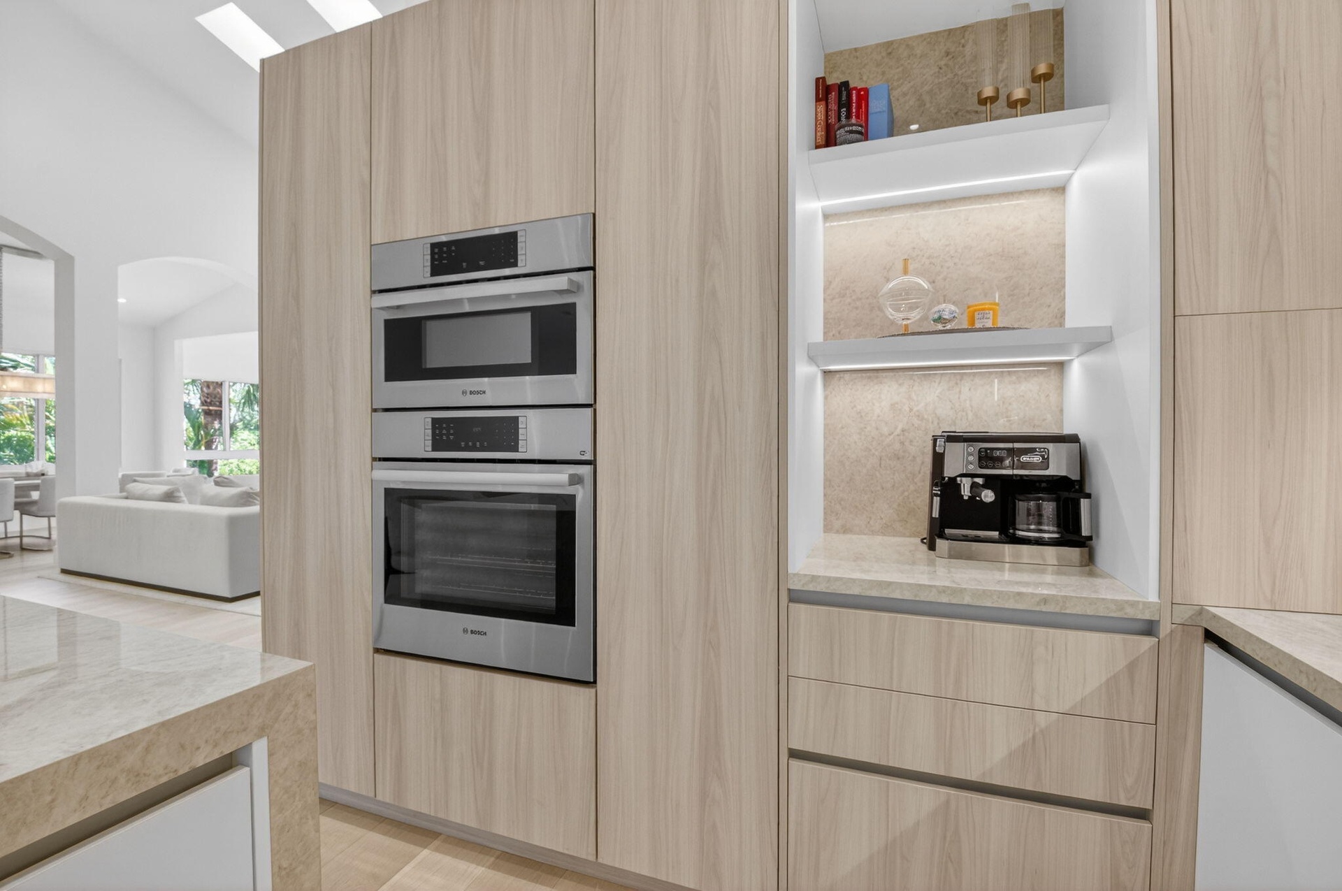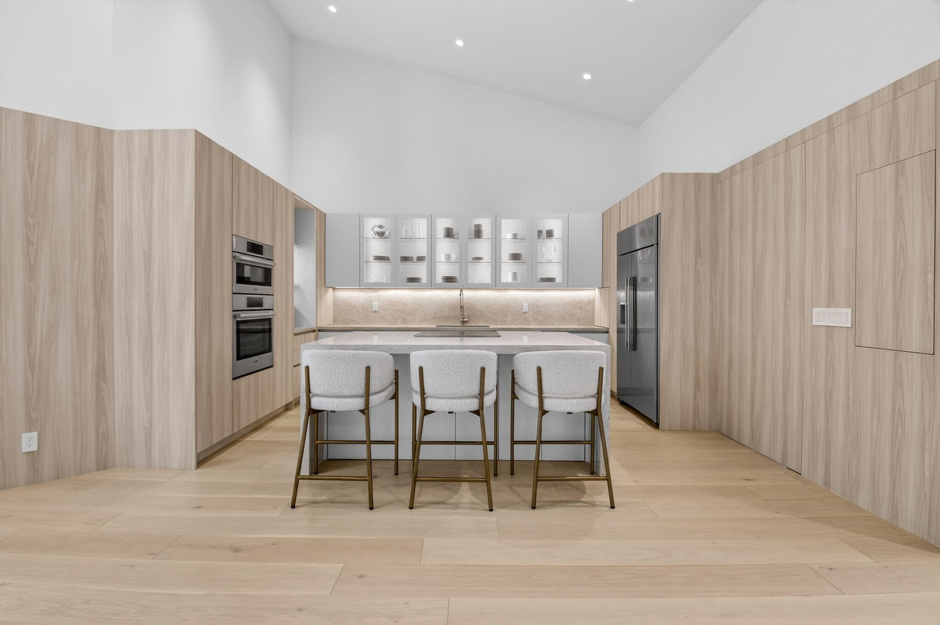 Welcome to this spectacular, fully renovated penthouse offering 3 bedrooms + office, 3.5 bathrooms, and 2,950 square feet of thoughtfully redesigned living space. This residence features a private elevator and stunning panoramic golf course views. Completed in 2025-2026, the home showcases high-end modern finishes, volume ceilings, and an open floor plan ideal for both everyday living and entertaining. Expansive wraparound impact windows flood the home with natural light while showcasing beautiful, unobstructed views of the golf course. The designer kitchen features a large island and quartz countertop, sleek custom cabinetry, premium appliances, and a seamless flow into the living and dining area. Enjoy your favorite drink at the beautiful custom bar with a waterfall countertop and seating, creating the perfect space to entertain. The split-bedroom floor plan provides ultimate privacy, with each bedroom offering its own en-suite bath. A fourth room features a unique hidden door, making it ideal for a home office, media room, or playroom. This home is one of a kind! Come experience a sophisticated yet comfortable lifestyle at Broken Sound, one of Boca Raton's most sought-after country clubs.