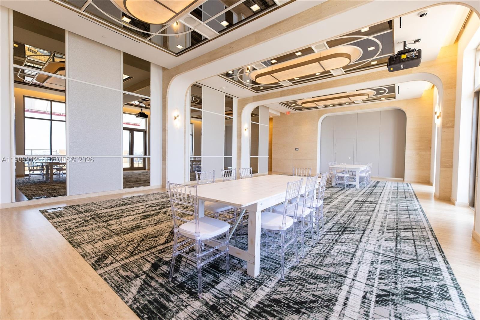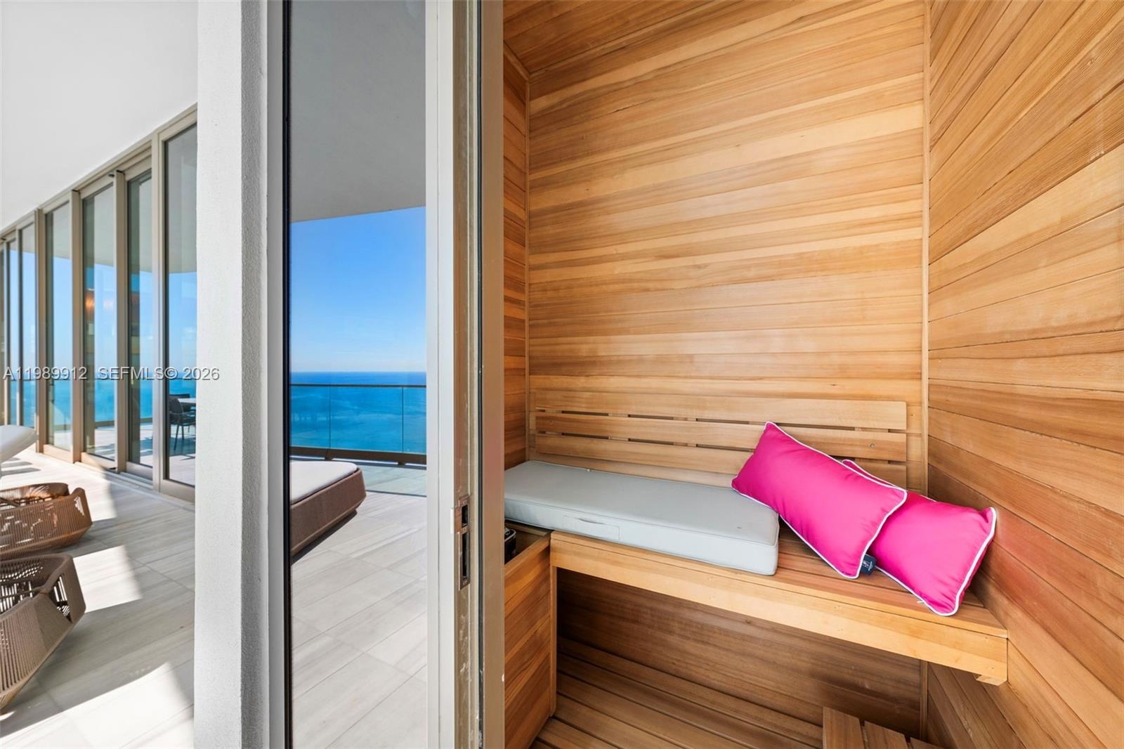 Discover the most coveted residence within "The World's Finest Residences", The Estates at Acqualina. Perched on the 45th floor, this rare south-corner trophy home is defined by soaring 12-foot vaulted ceilings—a unique architectural feature that amplifies its grand proportions. The views are boundless, stretching across the turquoise Atlantic to the glittering Miami skyline. Designed for both intimate family life and large-scale entertaining, the expansive layout includes a majestic great room and a separate family room. The residence offers four bedrooms with the flexibility for a fifth. The chef's kitchen is a masterpiece, anchored by dual La Cornue gas ranges and a full suite of Sub-Zero and Miele appliances. Throughout the home, the finishes are peerless: rare white onyx wraps every bathroom, complemented by Dornbracht fixtures and Toto washlets. Over 1,100 square feet of private terraces complete with an oceanfront sauna. Full smart-home automation for lighting, climate, audio-visual, and window treatments. Enjoy a lifestyle of unparalleled service. Five-star amenities include a private Rolls Royce fleet, five signature restaurants—including Estiatorio Avra, Il Mulino, and KeUh—and three distinct pools featuring a FlowRider and waterslide. From the ice-skating rink and bowling alleys to the F1 and golf simulators, every desire is anticipated by a dedicated concierge team.