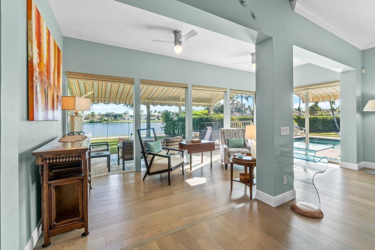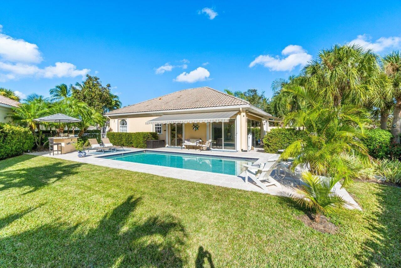 This exquisite home, w/ 24-hour manned security-gated community of Villagewalk, is nestled at the end of a cul-de-sac for max privacy. This beautiful home has 2 separate & fully gated gardens overlooking the lake, w/ a fabulous saltwater pool, & a full summer kitchen w/ fridge & gas grill. Inside, the 3-bedroom, 3-bathroom home (the main suite has 2 separate bathrooms) boasts an open-floor plan ideal for family living & entertaining. Ideally located 8 mins from Wellington Equestrian Center showgrounds, 10 mins from Polo. The beaches are 30 mins away & only 20 mins to the Airport. Other amenities include free cable, wi-fi, gym access, interior walking paths, 4-lane heated lap pool, 6 tennis courts, central post office & beautiful lake surroundings.