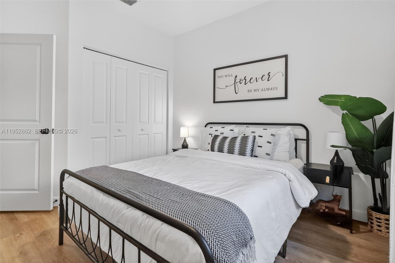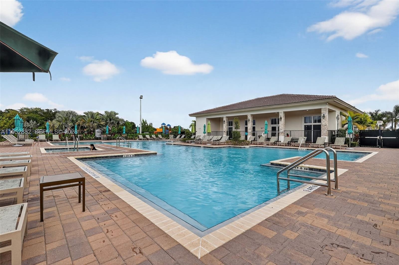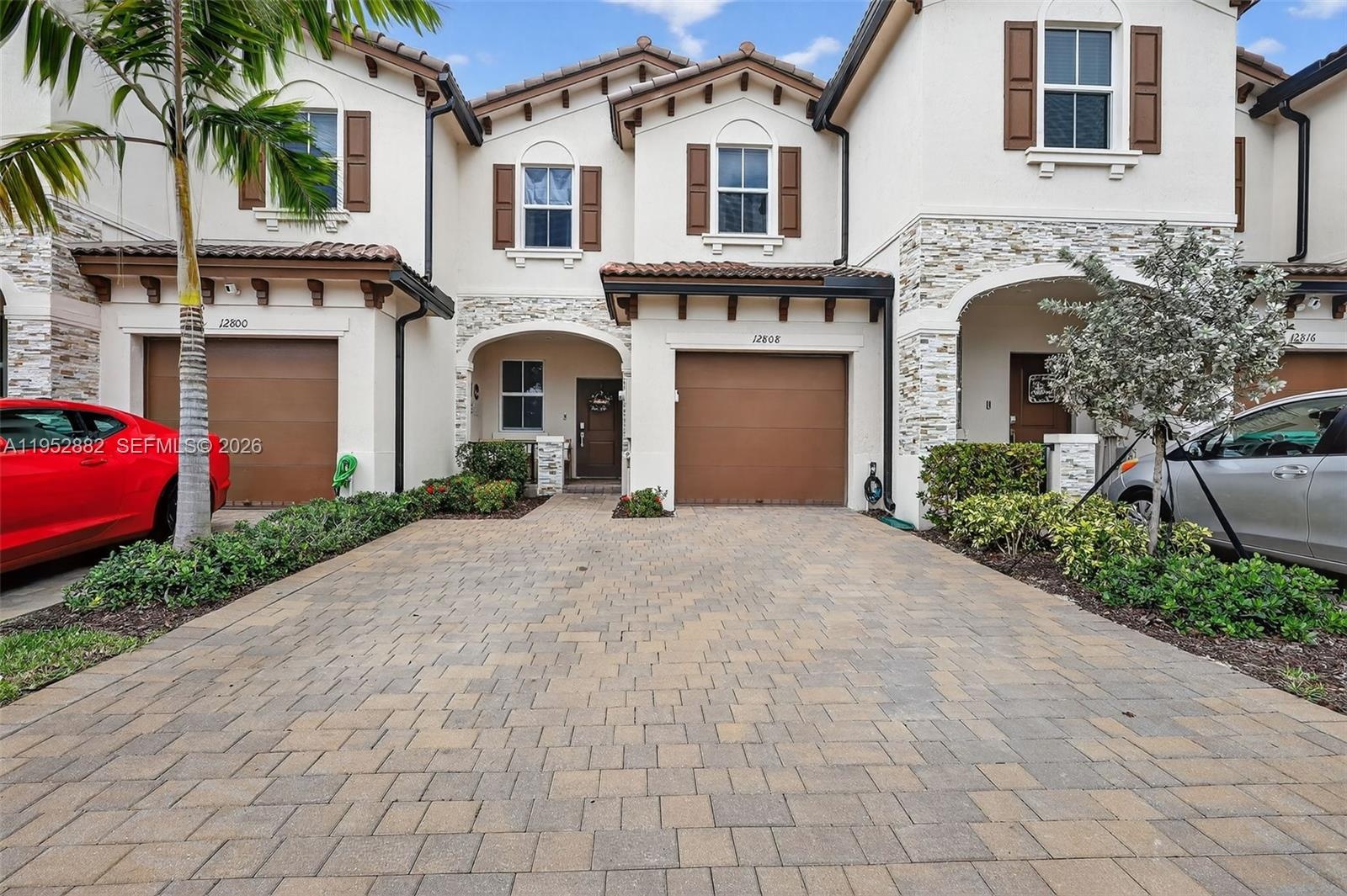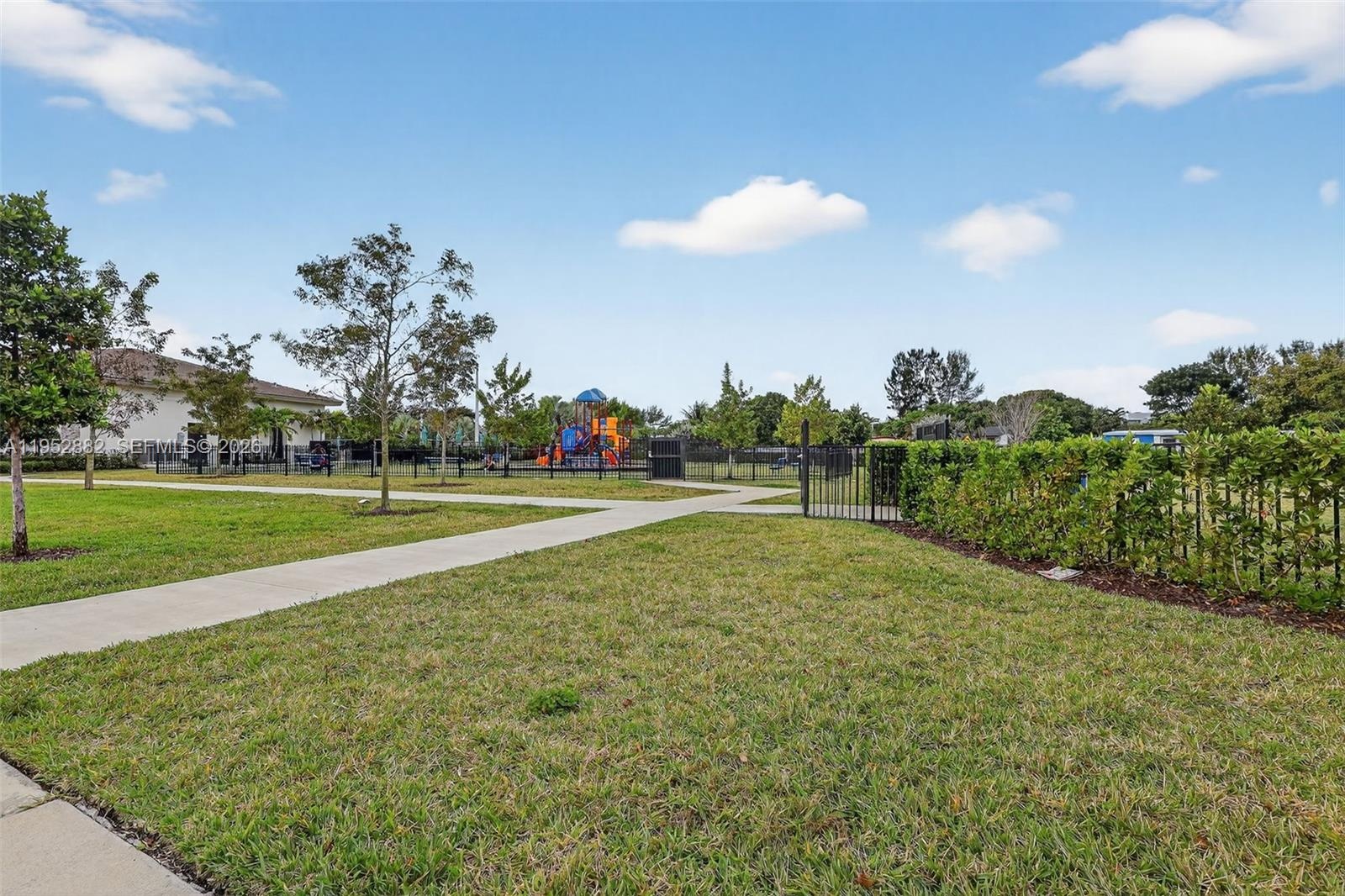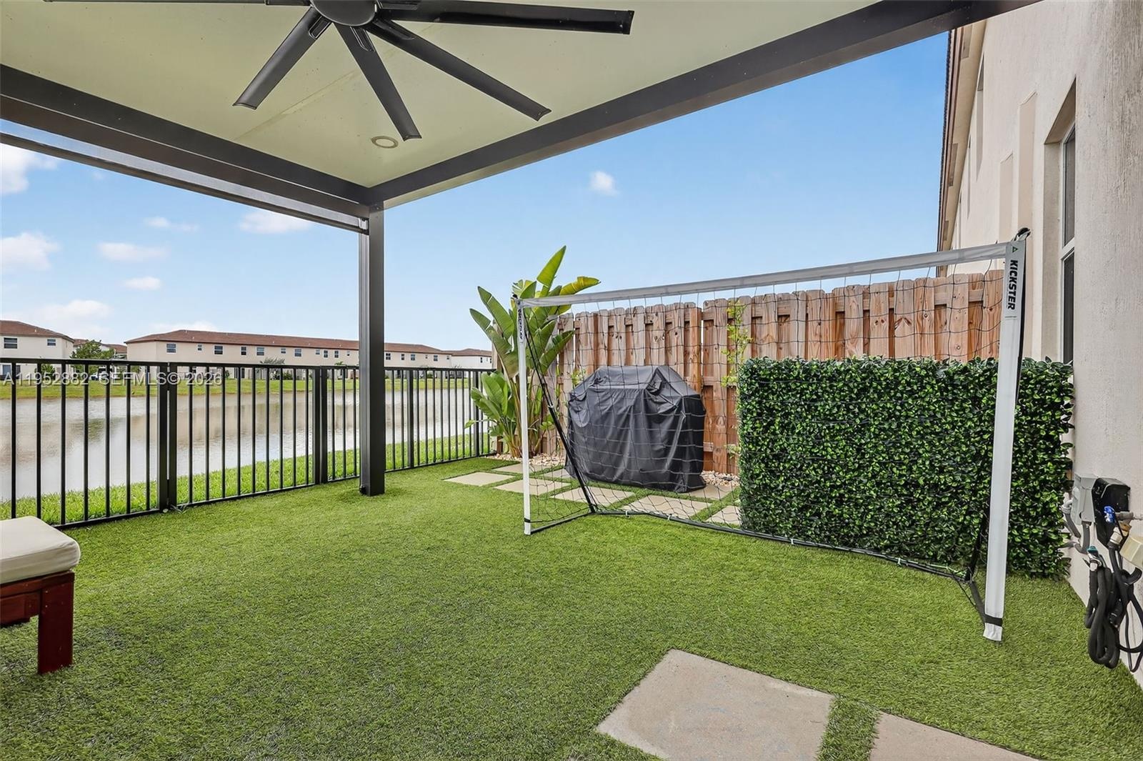 Welcome home to this beautiful turnkey townhouse built by Lennar in 2024 with amazing lake views. This residence features 3 bed/2.5 baths/1 car garage and over 1,500 sq ft, a fenced backyard with artificial turf and decorative plants and rocks to enjoy breathtaking sunsets overlooking the lake, and a newly installed pergola with ceiling fan and lighting. Quartz countertops, modern backsplash and ss appliances in the kitchen. The spacious primary ensuite with custom closets, and the primary bathroom upgraded with removal of builder-grade mirror and installation of two custom individual mirrors and double vanity, 2 additional bedrooms with high ceilings and custom closets, second bathroom with tub/shower combo, vinyl flooring throughout the home, updated light fixtures and ceiling fans, motorized garage door and overhead ceiling storage racks in the garage, 2024 AC and water heater, black out blinds, new washer and dryer, custom fixtures in the powder room, all impact windows and doors. Entry covered porch area and 2 parking spaces in the driveway, plus additional across the street parking, that not many townhomes have. Westview offers residents amenities like a resort style pool, fitness center, kids play area, dog park, clubhouse, 24hr guarded entrance area. Located within minutes of Downtown Miami, Miami Beach, Miami Int' Airport, major highways, restaurants, shopping and more. Assumable mortgage of 4.2% offered.