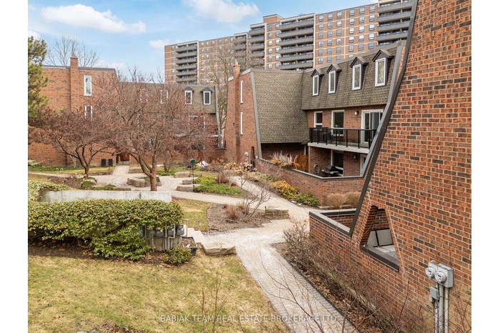 Welcome to an exceptional private enclave, nestled among mature trees, lush & landscaped gardens. This spacious executive townhome is part of an Etobicoke community of just 16 architecturally distinctive residences inspired by classic Tudor design. Each home is thoughtfully positioned to face its own green space, creating a serene, park-like setting rarely found in the city. Enjoy seamless indoor-outdoor living with both a large private patio and an upper-level balcony, perfect for relaxing or entertaining. This residence truly offers the feel of a detached home. Townhome number 7 stands out as one of the most private in the community, backing onto a beautifully landscaped garden and hill, offering peace and tranquility year-round. Spanning four levels, this home features approximately 3,200 square feet of living space, including an expansive 2,400 sq. ft. above grade & 800 sq. ft. lower level. The interior is both spacious and refined, with porcelain tile and hardwood flooring throughout. The townhome is ideal for growing families or those needing additional space. Set on nearly two acres, Village Court feels like a secluded retreat while remaining incredibly connected. Enjoy quick access to TTC transit, UP Express and the future LRT, along with proximity to excellent schools, shopping, and everyday amenities. Experience the perfect balance of nature, privacy, and urban convenience. Some rooms are Virtually Staged.