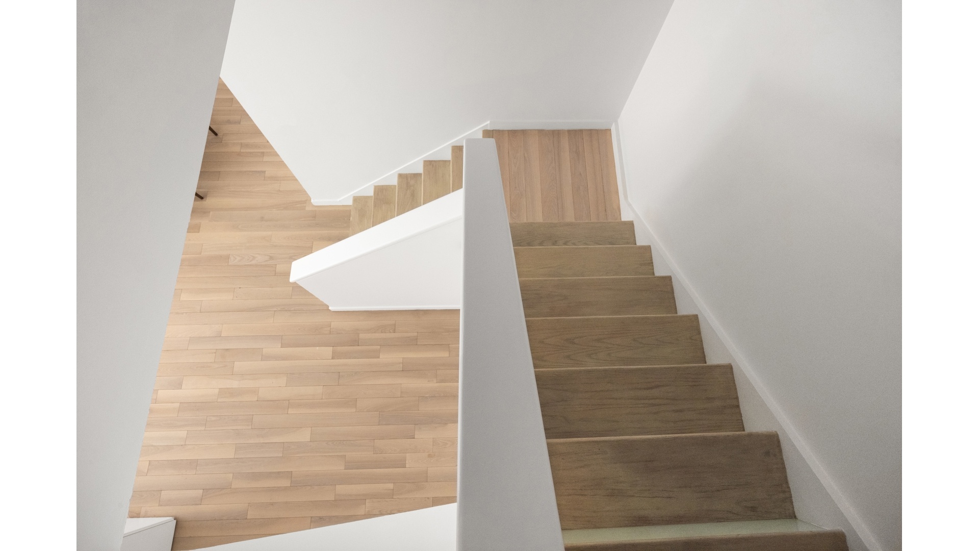 Upstairs, the layout becomes more private. The primary bedroom, with its dressing area and walk-in closet, feels tucked away from the main level. A second bedroom shares this floor, creating a clear separation between living and sleeping areas, both facing south with ample sunlight and an elevated view of the home's private outdoor space.