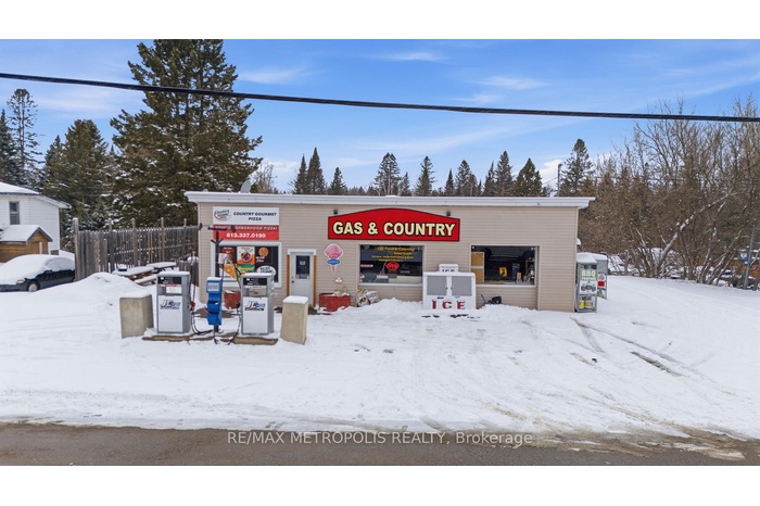 Prime commercial opportunity in the heart of Coe Hill offering a rare chance to own and operate multiple income streams from one property. Situated on approximately 1 acre, this versatile property features a gas station with both gasoline and diesel pumps, a convenience retail store, and an on-site pizza shop (commercial kitchen) - ideal for owner-operators, families, or savvy investors looking to maximize revenue potential. With strong visibility and easy access, the property serves both local traffic and pass-through customers. The functional layout supports seamless operation of all business components, with space to expand to maximize for future growth opportunities. A unique, turnkey opportunity to run a diversified business in a growing rural community. Property has propane heat, EVAC, private well/septic, and backup generator. Zoned multiple commercial uses