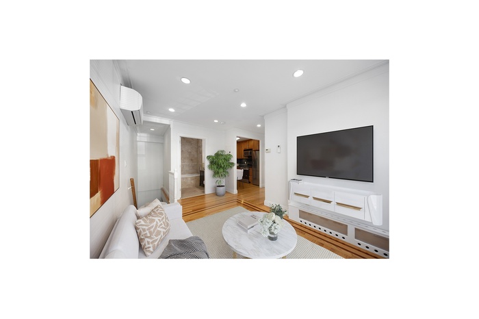 This stunning 1-bedroom duplex offers a perfect blend of modern amenities and comfort in one of Brooklyn's most desirable neighborhoods. The main floor features a well-appointed kitchen with stainless steel appliances, sleek cherry cabinetry, and elegant granite countertops. The stylishly tiled bathroom is equipped with a modern vanity sink and a relaxing Jacuzzi tub. The layout is thoughtfully designed with the living room, kitchen, and bathroom on the first floor, while the private bedroom, washer/dryer, and cedar walk-in closet are located on the lower (basement) level for added privacy. Photos have been virtually staged.