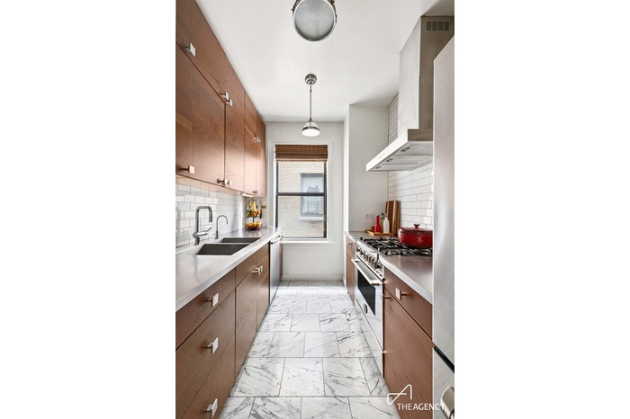 Thoughtfully redesigned, this prewar two-bedroom blends original character with smart, modern updates. You'll immediately notice the inlaid hardwood floors, soaring 9'4" ceilings, and oversized south-facing windows that flood the living space with light all day long. From here, you even catch open views down 181st Street toward the Hudson River, the George Washington Bridge, and the New Jersey Palisades.The layout was completely reimagined to maximize flow, function, and storage. The living and dining room was intentionally positioned to take full advantage of the southern exposure, creating a bright, inviting space that's perfect for everyday living or entertaining. Custom millwork creates a built-in foyer with coat and shoe storage, along with a Carrara marble display foyer.