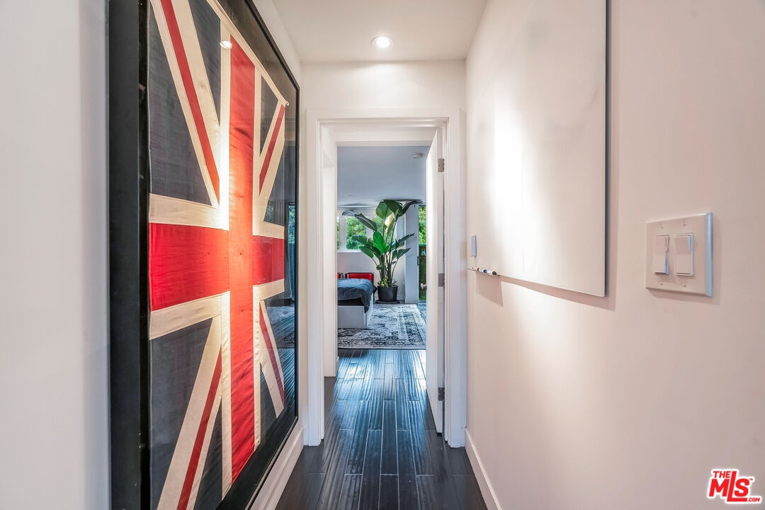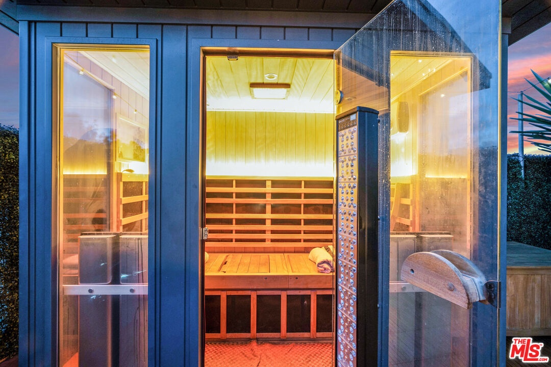 Introducing "The Venice Art House", a James Bond inspired architectural fully gated property in the heart of Venice. Between Abbott Kinney Boulevard and Lincoln, this compound is fully secured and private. The property features 3 beds and 3 full baths, with a rooftop outdoor shower, spa, infrared sauna, and custom sound. 11ft ceilings in the LR on the 2nd floor reach to 14ft in the open-concept kitchen with a stone bar, gigantic double-paned glass windows in the LR to limit sound, and ceiling to floor elegant custom drapes in the LR and BR. Black hardwood floors throughout, adorned with Timothy Oulton furniture set with vintage appointments, Miele appliances, thick steel beams, and elgantly bent iron railings. The first level features a 4-car garage, and a separate open studio space with its own entry and gate, polished concrete floors, rainfall shower, and it's own AC, kitchenette and washer/dryer. The house was built with sought after durability, including images of the build, and full blueprints. The spacious master bedroom offers British design, a beautiful custom walk-in closet, custom blackout drapes and curtains, and a private balcony. A spiral staircase above the kitchen leads to a library-movie room with four skylights, including one in the upper bathroom with full shower. A separate staircase from the LR leads to the rooftop deck featuring custom finished teak wood, lush California succulents and panoramic views from the palm tress in MDR to the hills above Sunset. Sun or work in privacy between the spa, fireplace and outdoor shower while listening to orchestra music above the city. The revenue from the separate studio and media area can be retained, currently ranging from $4,000-6,000/mo, or the entire main house can be leased for an additional projected $14,000-$15,000/mo or on VRBO and other platforms for more. With incredible versatility with LAC2 zoning, the entire three story property could also be transformed into a restaurant, lounge, gym, retreat spa, or media studio with remarkable possibilities. Rare LAC2 zoning with two addresses. This is one of the rarest gems in all of Venice, offering a unique blend of privacy and security while allowing you to fully enjoy life in the heart of Venice.