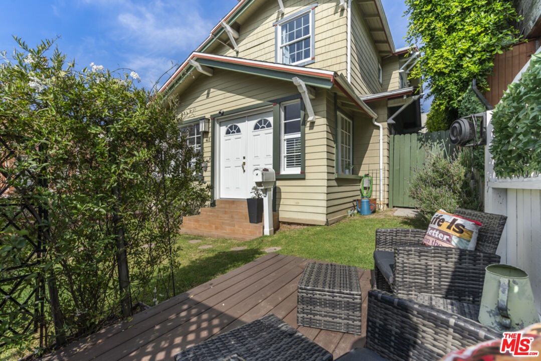 *Property to be delivered vacant* Steps from the sand, this beautifully maintained Craftsman Duplex offers a 2,139 SF Craftsman home with ocean views, timeless charm, complemented by a completely separate and enchanting 600 SF one-bedroom apartment located above a remarkable three-car garage (one open space). The main residence features a fully converted separate living area on the lower floor with kitchenette and full bath (550 SF not included in total square footage) offering flexible use as part of the home or as a private living space. Ideally located just steps from the ocean, Shutters and the beloved Capo Italian restaurant and cafe, this truly one-of-a-kind property is nothing short of magical and located on a quiet and historic block. The home is graced by a welcoming front yard and patio, as well as a serene rear courtyard that thoughtfully separates the two structures. Classic Craftsman elegance abounds, with ocean views, a wood-burning fireplace, original hardwood floors, and beautifully preserved architectural details throughout. The en-suite primary bedroom enjoys ocean views, a large bath with separate tub and shower and a spacious walk-in closet. A charming breakfast nook and delightful kitchen complete the experience, highlighted by a pristine Gaffers & Sattler retro double oven with six burners, a rare and striking centerpiece. The separate one-bedroom apartment, located above the garages and accessed through the courtyard and Vicente Court, is filled with character and offered in move-in condition (possibly furnished). Live the quintessential Santa Monica beach lifestyle, where breathtaking sunsets, surfing, walking, and biking are part of everyday life with nearly everything conveniently accessible by foot or bicycle. **This Craftsman Duplex generates $150,000 in annual income NOT including the home**. This special property is a must see!