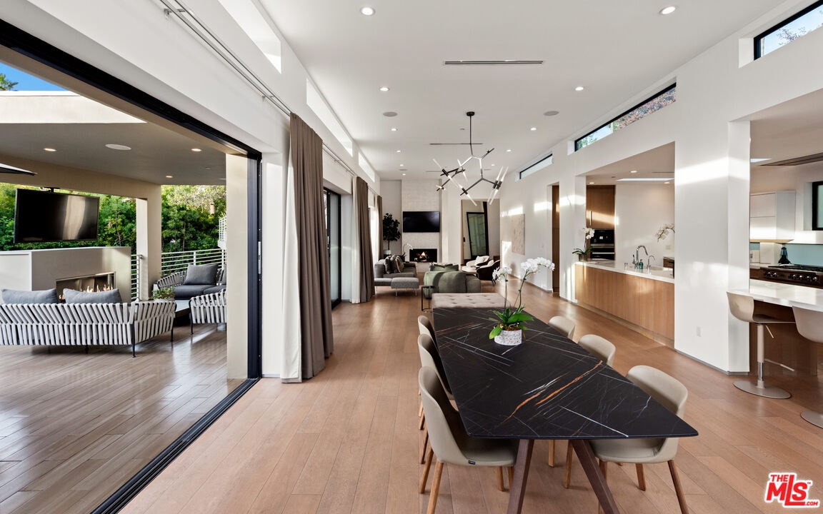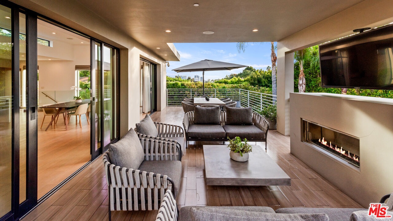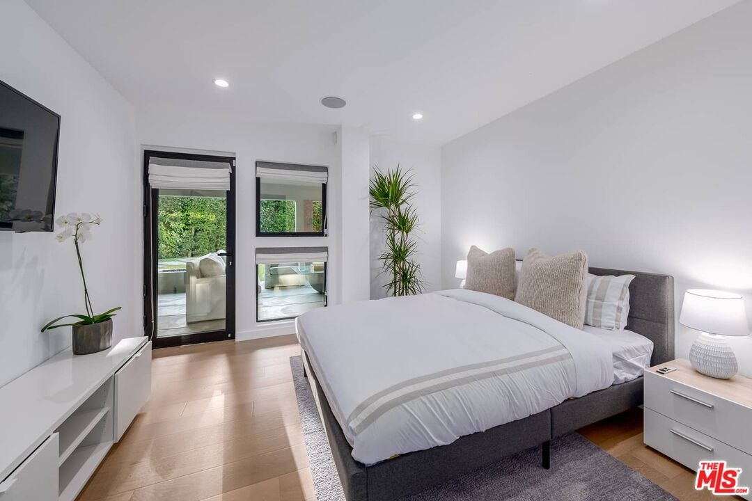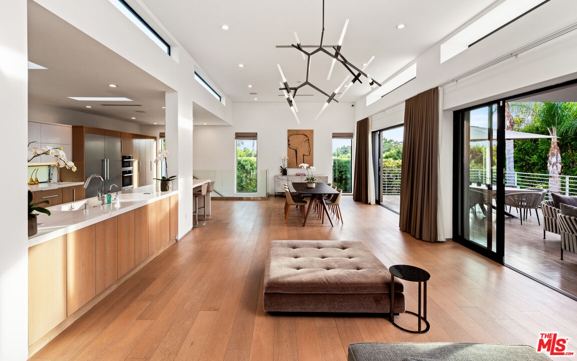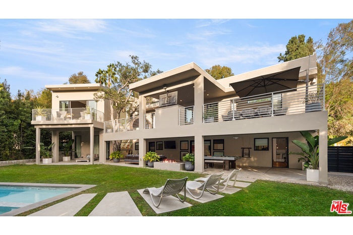 The absolute definition of vacation at home. This contemporary residence reimagined in 2016 offers a superb location in prime Beverly Hills. This warm contemporary design offers an exceptional indoor-outdoor lifestyle. Light-filled living areas framed in glass flow effortlessly onto outdoor living spaces. The open concept living space features wide plank floors, 12-foot ceilings, Fleetwood doors and clerestory windows. Large kitchen with Miele professional appliances overlooking the spacious outdoor living spaces. Private primary suite with spa-inspired bath area and spacious custom closet. The lower level features home theatre, 3 ensuite bedrooms and gym that all open to a completely private outdoor sanctuary with covered entertainment area, sparkling pool and spa. Just a few short minutes north of Sunset, restaurants, shopping and the ultimate SoCal lifestyle.