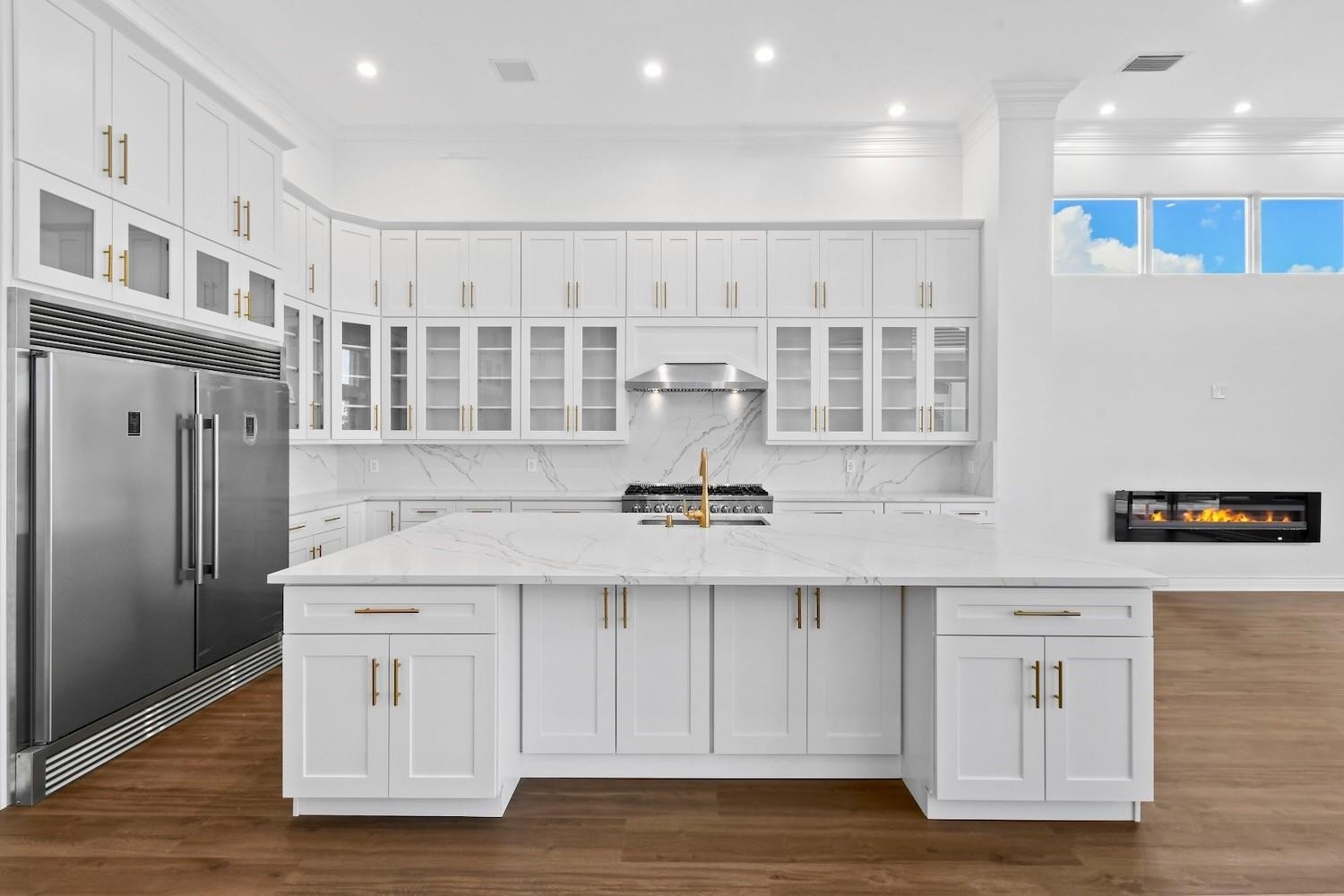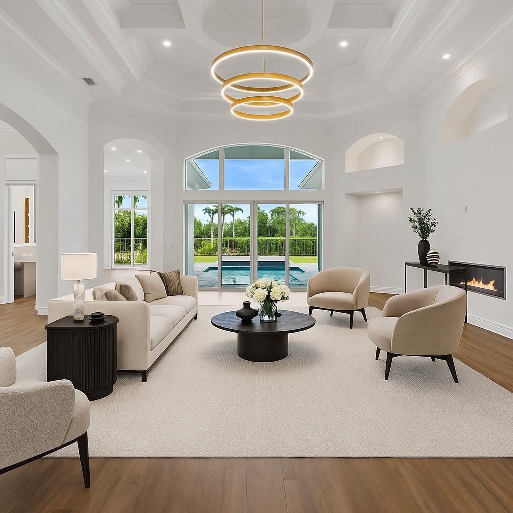 This rare Tesoro estate redefines single-story elegance, offering nearly 4,000 square feet of beautifully reimagined living space with four bedrooms, five bathrooms, and a two-car garage plus a separate golf cart garage. Every detail of this home has been renewed with the precision and design sensibility of a luxury model home—creating the perfect blend of classic Mediterranean architecture and sleek, modern sophistication.Step through the grand double doors into a sunlit foyer with soaring ceilings and architectural detailing that immediately impresses. The expansive living room opens seamlessly to the pool and golf course beyond, setting a tranquil, resort-like tone. Inside, no surface was left untouched—new flooring, lighting, trim, and paint pair with an all-new gourmet kitchen and five completely redesigned bathrooms, each finished with high-end materials and designer fixtures. The result is a home that feels fresh, elegant, and move-in ready at a truly exceptional level.The exterior has been equally transformed. The façade’s hand-crafted stonework and Mediterranean character remain, but now gleam with crisp white paint, a brand-new concrete tile roof, and all-new landscaping for a refined first impression. A new U-shaped paver driveway in modern gray and white tones leads to the garages, each finished with professional-grade epoxy floors that are both stunning and durable.Out back, your private resort awaits. New pavers surround a resurfaced pool with upgraded equipment, creating a luxurious outdoor space perfect for entertaining or simply relaxing amid serene water and golf course views. From the covered patio, enjoy peaceful sunsets overlooking Tesoro’s tranquil waterways and manicured greens—offering both beauty and privacy.This home is built for peace of mind. Constructed with solid concrete block, outfitted with impact-rated windows and doors, a new roof, and a whole-house Generac generator, it’s ready for any Florida weather.Located within Tesoro, Port St. Lucie’s premier private and manned golf community, residents enjoy a lifestyle of exclusivity and recreation. Club membership is optional and offers access to two championship golf courses, ten Har-Tru tennis courts, pickleball, a resort-style pool with cabana dining, a fine-dining clubhouse, and luxurious spa-like lounges.This home is more than a residence—it’s a statement of craftsmanship, comfort, and timeless design in one of Florida’s most prestigious communities. -This home has a 2 car garage and a separate golf cart garage!
