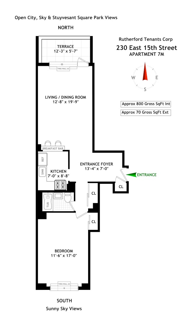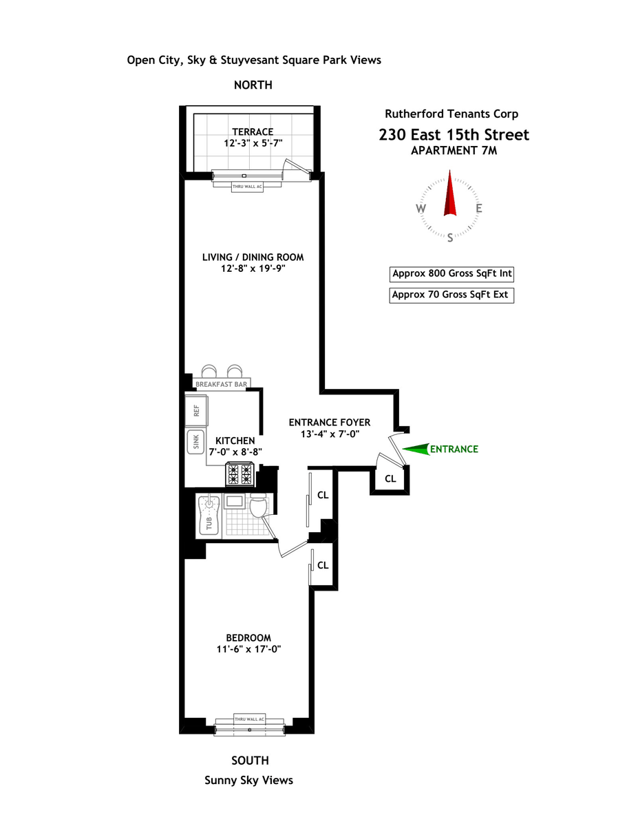 Apartment 7M is an oversized approx. 800 square foot sunny one-bedroom, one bath - the largest one-bedroom line in the building-filled with natural light flowing from north to south throughout the apt. Set along a peaceful, tree-lined street near Stuyvesant Square Park.