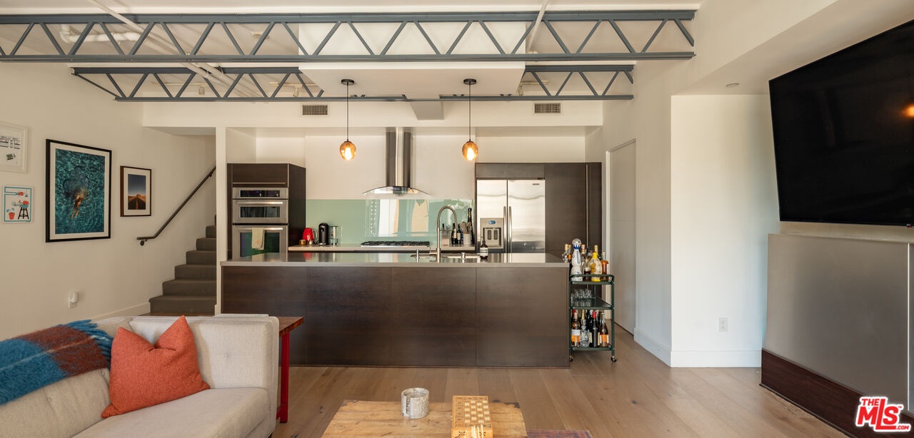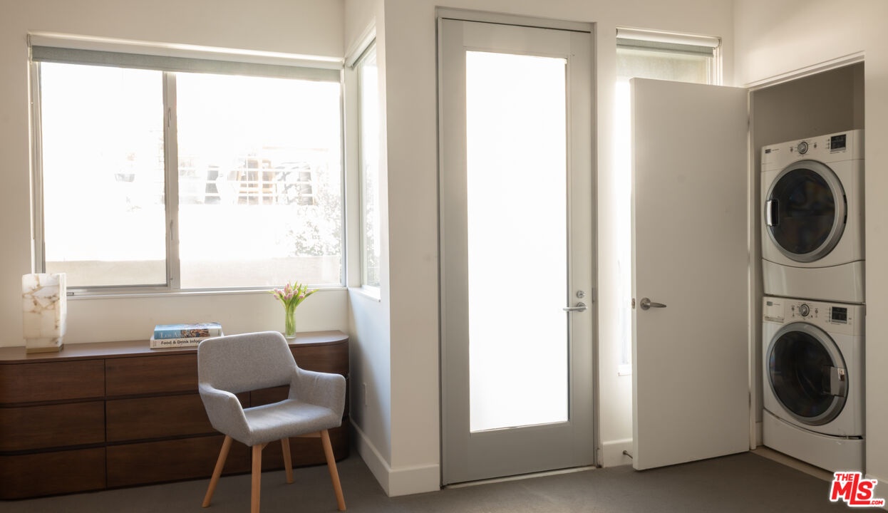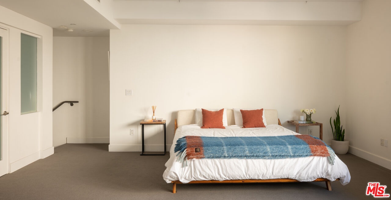 Nestled on a quiet, tree lined street in the heart of West Hollywood, 1250 N Harper Ave #411 offers a sophisticated blend of modern industrial design and classic California courtyard living. Located within the award-winning "Harper West Hollywood" complex, this residence is a sanctuary for those seeking architectural edge and premier location convenience. What sets Unit 411 apart from most other one bedroom floor plans in the building is its rare dual entry layout. While other standard units in this complex typically require guests to enter through the primary bedroom suite, this specific residence features its own personal staircase to the entrance of the unit and a dedicated second entrance that leads to the bedroom. This unique feature ensures total privacy for the bedroom while creating a much more natural and sophisticated flow for entertaining. Inside, the loft inspired home boasts soaring ceilings, wide plank wood flooring, oversized walk-in closet and a premier kitchen equipped with stainless steel appliances. The open concept living space is anchored by a fireplace and walls of glass that flood the interior with light. Residents of this boutique contemporary building enjoy a Walk Score of 94, placing them just steps from the best dining and nightlife on the Sunset Strip. Complete with two gated/garaged parking spaces, private storage, and in unit laundry, this unit is the clear choice for the buyer who values a superior, more functional layout than the building's standard offerings.