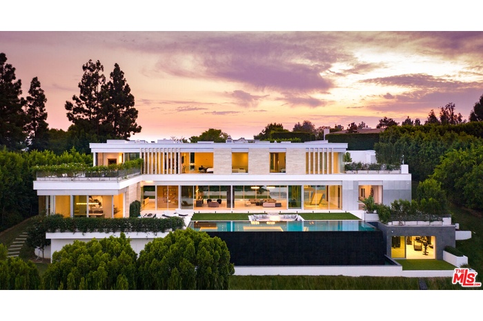 Set on nearly one acre in prime lower Bel Air, 642 Perugia Way is an architectural tour de force conceived by British firm Quinn Architects and stands as one of the most remarkable private estates to come to market, where architecture, jetliner views, and natural light shape every space. Sited at the end of a cul-de-sac on one of Bel Air's most coveted streets with its own dedicated security, the property offers a level of discretion rarely available at any price. Fully gated, arrival unfolds through a sleek stone motor court with 4-car garage introducing the home's craftsmanship and sculptural presence. Inside, a floating staircase anchors the entry and motorized Fleetwood glass walls open entire elevations to travertine terraces beyond. Expansive walls and exquisite light quality create gallery-like settings ideal for showcasing art across all three levels. Smart home technology controls lighting, climate, security, and audiovisual. The main level is built for entertaining featuring a chef's kitchen with Miele appliances supported by a fully outfitted butler's kitchen, allowing large gatherings to unfold effortlessly. Living and dining areas open to the backyard, where a sunken firepit gives way to the estate's centerpiece: a 65-foot infinity-edge pool with views over the Bel-Air Country Club and surrounding hills. Garden terraces, clipped hedgerows, and specimen plantings wrap the grounds in total privacy while softening the residence into the natural hillside. The primary suite is in a class entirely its own occupying a generous private wing on the upper level, it encompasses a bedroom of hotel-like grandeur. The spa bath is framed in travertine and Carrara marble, with a soaking tub open to a private patio featuring a jacuzzi and firepit. Dual dressing rooms are fitted with bespoke millwork and glass display islands. The lower level is dedicated to entertainment and wellness featuring a state-of-the-art gym, cinema-grade movie theatre, bar and lounge, and a temperature-controlled glass-enclosed wine cellar. 642 Perugia presents one of Bel Air's most significant contemporary estates.