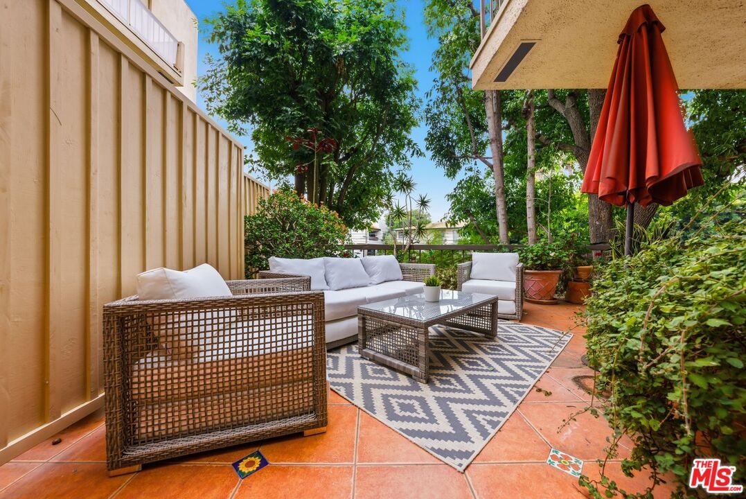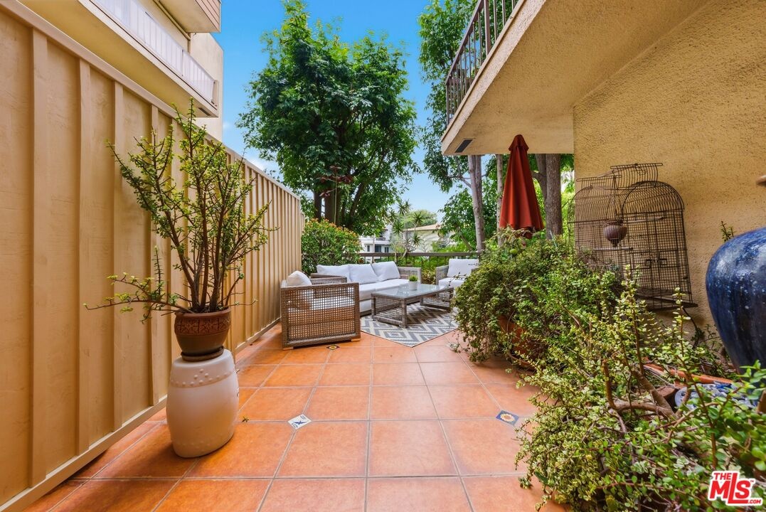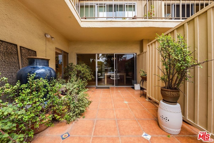 Completely renovated with a keen eye for design and detail, this stunning residence offers a perfect blend of modern sophistication and warm, inviting character, further enhanced by a full wrap-around patio featuring a tranquil water feature that creates a seamless indoor-outdoor living experience. The kitchen and entertaining space serve as the heart of the home, thoughtfully reimagined to balance style and functionality. At its center, a gracefully curved breakfast bar, topped with richly veined stone, creates a striking focal point and an inviting place to gather, whether for casual mornings or lively evenings. The open layout allows for a seamless flow into the living area. The galley-style kitchen is both functional and beautifully appointed, featuring custom wood cabinetry with glass-front uppers that showcase curated pieces and add depth and charm. Above, a statement chandelier set within a richly accented, coffered ceiling introduces a layer of sophistication and architectural interest rarely found in condo living. Outfitted with sleek stainless steel appliances, a contemporary vent hood, and an integrated cooktop, the kitchen is designed for both performance and style. Textured tile backsplashes and warm-toned countertops create a cohesive, layered aesthetic, while a statement sink paired with a bold, sculptural faucet adds a distinctive designer touch. Thoughtful finishes, including built-in display shelving, decorative hardware, and a dedicated wine rack, enhance both form and function. Anchored by warm wood flooring, the space feels polished yet inviting, ideal for both everyday living and elevated entertaining. On the same floor, residents have access to two laundry rooms, with one conveniently located directly across the hall from the unit. Residents enjoy a full suite of amenities, including a pool, spa, newly renovated gym, and a sauna. HOA dues include earthquake insurance, and an on-site maintenance team and superintendent are available five days a week. Ideally located near Brentwood's premier shops, dining, and cafes, this beautifully renovated home offers an exceptional blend of comfort, style, and convenience in one of the Westside's most sought-after neighborhoods.