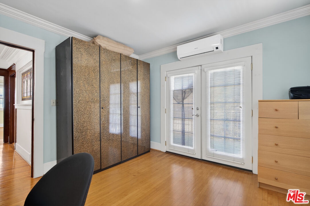 Located in the highly sought-after Hancock Park neighborhood, this classic 1914 Craftsman residence is a rare offering within the Historic Preservation Overlay Zone (HPOZ). The home features 4 bedrooms and 2.5 baths with a layout that feels both open and connected. Select photos include virtual staging to illustrate design possibilities and showcase the home's full potential. Each bedroom offers direct access to one of two full-length balconies front and rear creating a seamless extension of the living space and embracing Southern California's indoor-outdoor lifestyle. The inviting front yard and expansive raised porch with elegant columns set the tone for the home's timeless architectural appeal. Inside, light-filled living spaces feature hardwood floors, crown molding, two fireplaces, and distinctive staircases, all enhanced by abundant natural light. The kitchen offers granite countertops, travertine flooring, and French doors that open to a private redwood deck, creating an easy flow for everyday living and entertaining. The backyard is a peaceful retreat with mature fruit trees and multiple areas to relax or gather. With its classic architecture, generous layout, and enduring charm, this home presents an exceptional opportunity to update and personalize.