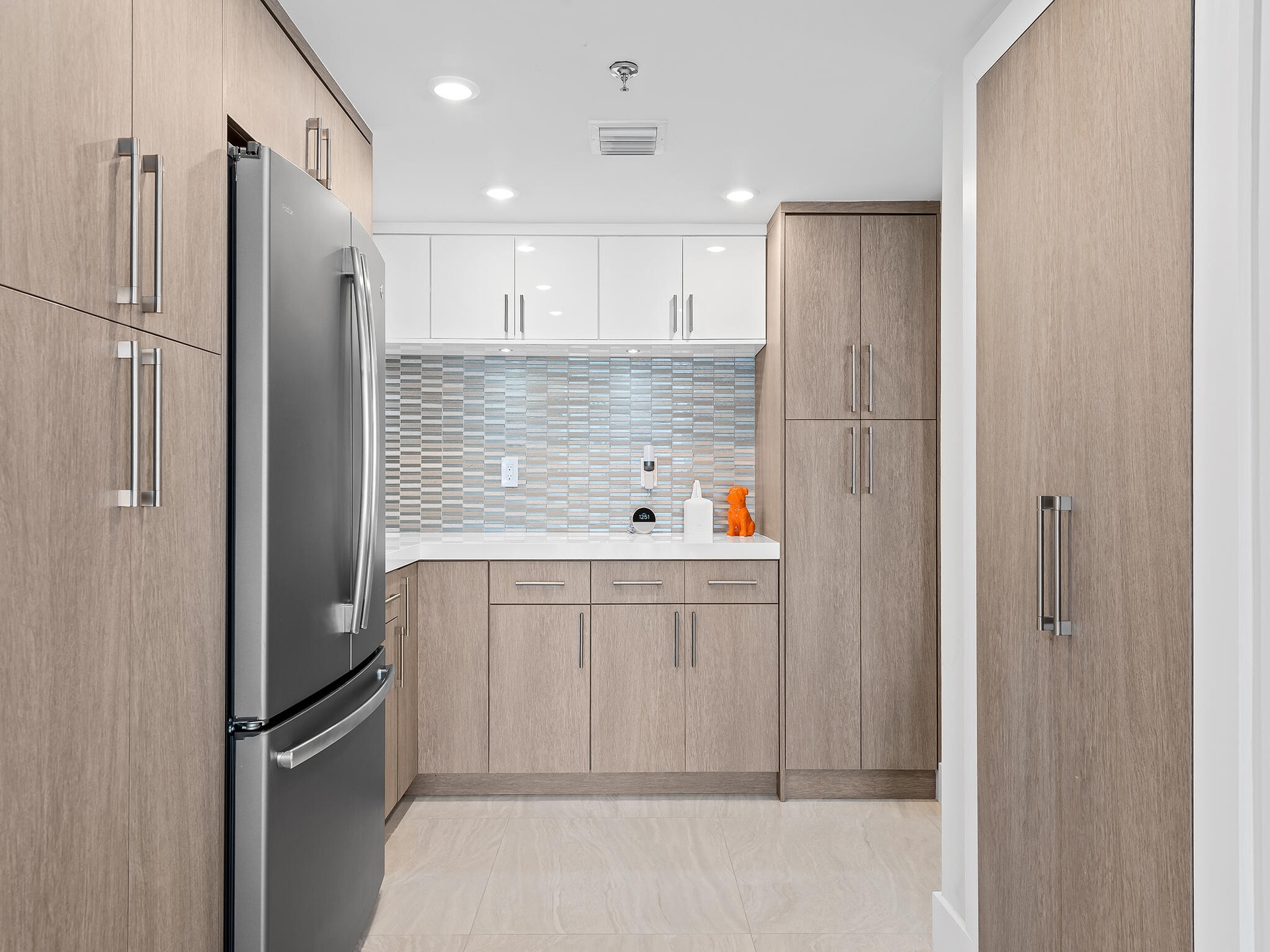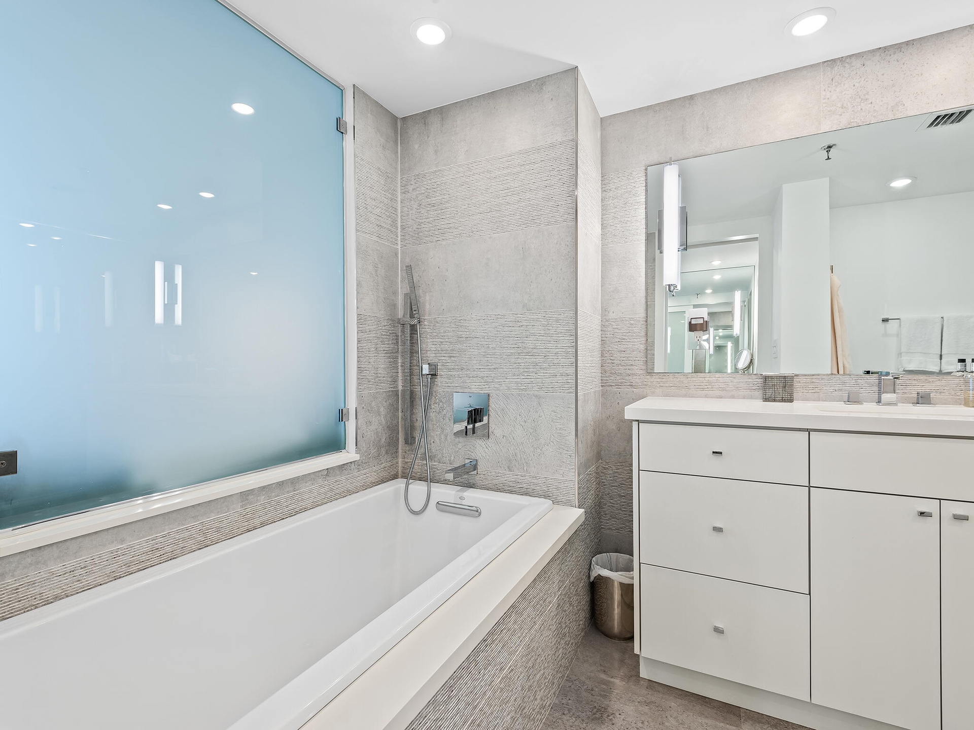 Beautifully renovated contemporary oceanfront condo with ocean views, offering sunrises along with city and Intracoastal views and sunsets! The large balcony offers and inviting space to relax, entertain & enjoy the coastal lifestyle! Split-bedroom layout provides privacy, complemented by sleek pocket doors with frosted glass and updated bathrooms. The modern kitchen showcases an illuminated quartzite countertops, combining style and functionality. The building has recently completed major improvements, including concrete restoration and a new roof, and is fully funded for SIRS requirements.Additional upgrades include impact glass throughout, renovated corridors, and a stylish new social room. Resort-style amenities, including a pool, sauna, Spa/hot tub, fitness center & bike storage.