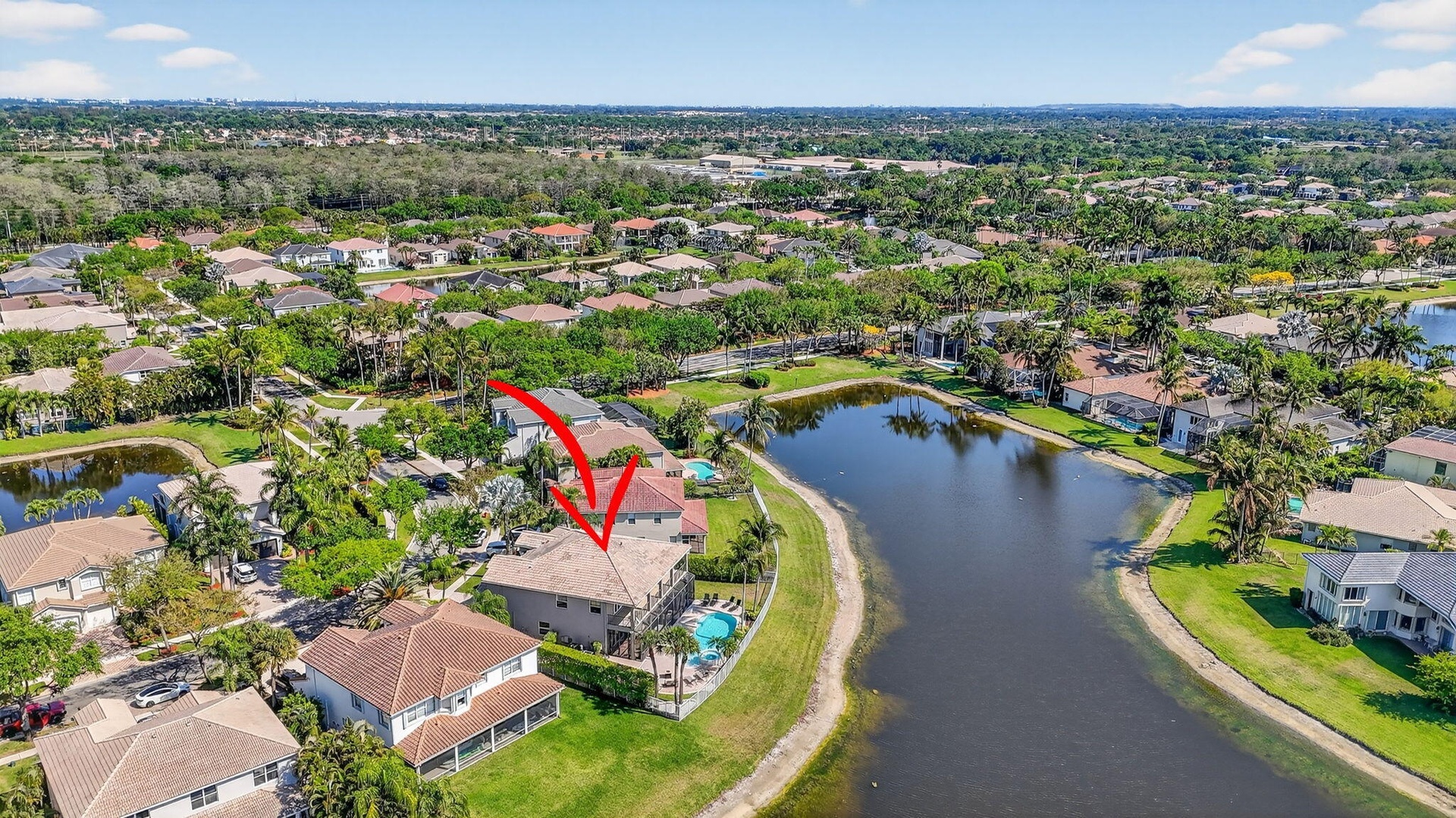 Rarely Available 5 Bedroom 4 Bath Lakefront Pool Home. Situated on one of the Largest Lakefront Lots in the neighborhood. Over $100,000 in Upgrades. Breathtaking Panoramic Lake Views from most rooms. Step out onto your private balcony to enjoy peaceful mornings & spectacular sunsets. The primary suite offers a private balcony with stunning water views and two oversized closets .The Gourmet Chef's Kitchen features Sub Zero Fridge & Wolfe Appliances, Double Oven, 2 Sinks, Wine Fridge, Abundant Cabinetry & Generous Prep Space. The Massive Pool & Spa offer unobstructed lake views & an oversized lot. Resort-style amenities include Clubhouse with Social Room, State-of-the-art fitness center, Children's activity center, Pool & jacuzzi, Close to A+ rated schools, shopping, & dining,