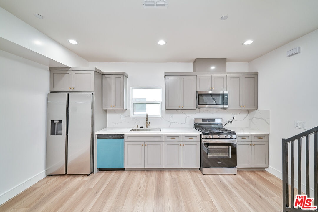 Welcome to 1108 QUEEN ANNE PLACE! A sophisticated brand new and modern townhome style residence with MULTIPLE OUTDOOR TERRACES AND A PRIVATE BACKYARD. This beautifully designed unit is a spacious 4 bedroom, 4bath bath floor plan expanding over 1,800sf. This custom designed unit is bright showcases an abundant natural light with many luxurious features including: Ample sized bedrooms and walk in closets, new hardwood flooring throughout, recessed lighting, gorgeous galley kitchen with quartz countertops, new cabinetry, stainless steel appliances, in unit washer and dryer as well as central ac/heating. The gorgeous bathrooms offer vanity storage, sleek quartz countertops and elegant tile work in the glass enclosed shower. This new construction community is PET FRIENDLY and conveniently walking distance to Queen Anne Recreation Center and Park that has pool, basketball, tennis and much more! Minutes away from Beverly Hills, Hancock Park, LACMA, The Grove, Miracle Mile as well as trendy Larchmont Village where there is an array of popular restaurants and coffee shops including: Great White, Cafe Gratitude and Kiku Sushi to name a few. Two Tandem gated parking spaces included. AVAILABLE NOW!! Base rent is $5,200/mo price reflects a 3 week free move in special.