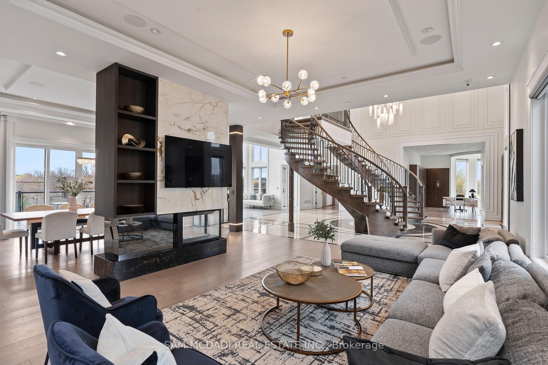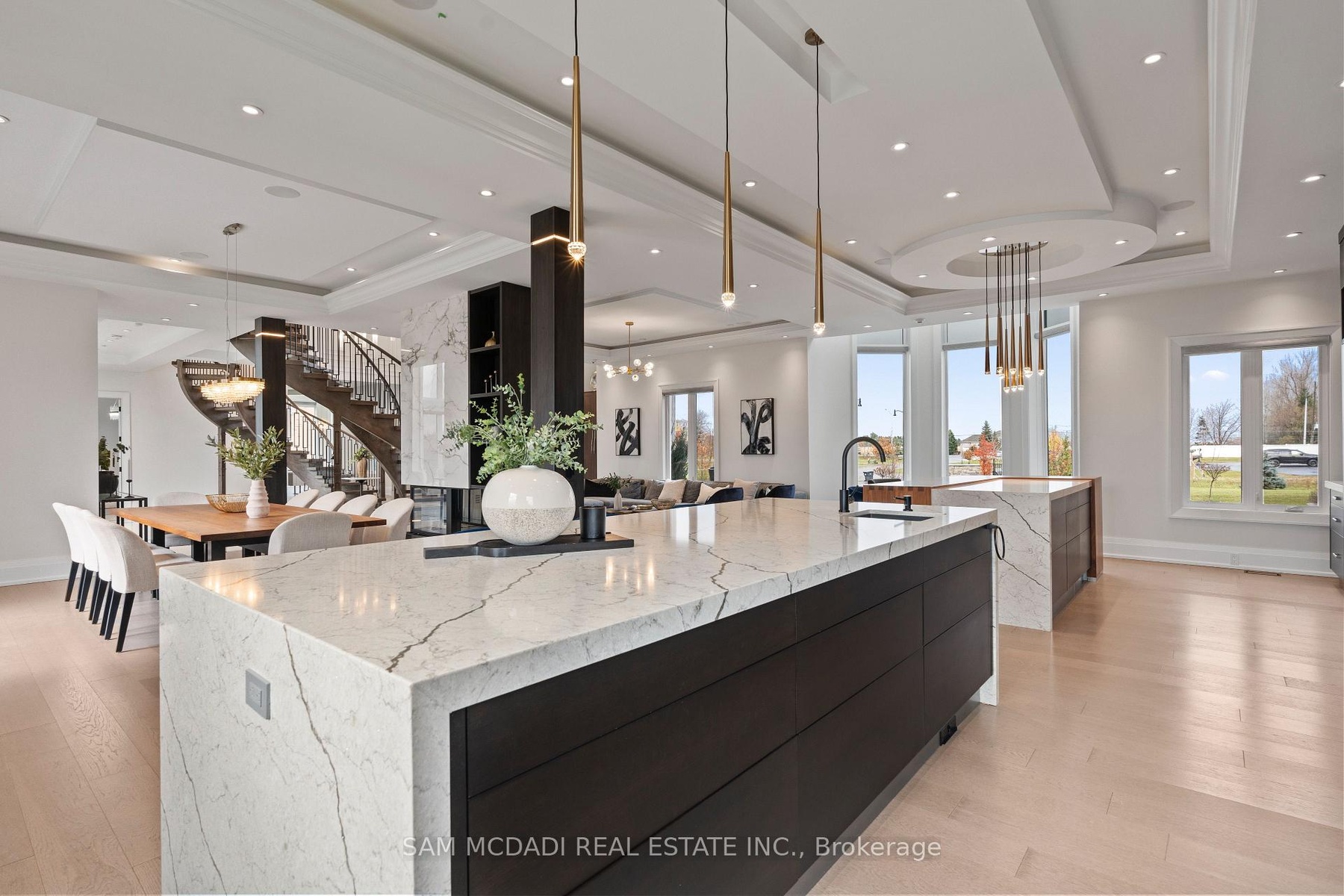 Welcome To 4 St. Lukes Court, A Breathtaking 13,000+ Sq. Ft. Estate Set On Two Pristine Acres With Scenic Ravine Views, Nestled In The Prestigious Castlemore Estates Neighbourhood. This Modern Victorian-Inspired Masterpiece Combines Timeless Architecture With State-Of-The-Art Luxury, Showcasing A Grand Stone Exterior, Soaring Turret Towers And A Dramatic Double Staircase Beneath 22 ft. Ceilings. At The Heart Of The Home Lies A Stunning Chefs Kitchen, Featuring Dual Waterfall Islands, Top-Tier Wolf And Miele Appliances, And A Separate Spice Kitchen Offering Both Beauty And Functionality For Everyday Living And Exceptional Entertaining. The Upper Level Boasts Five Spacious Bedrooms, Including Three Stunning Primary Suites With Spa-Like Ensuites, Private Balconies, And A Turreted Lounge. The Above-Ground Lower Level Offers A Legal Two-Bedroom In-Law Suite, Home Theatre, Gym, Sauna, And Entertainment Lounges With Full Kitchen And Bar. Complemented By Sun-Filled Spaces Enhanced With Opulent Finishes Throughout, Each Level Seamlessly Accessible By A Custom Elevator For Seamless Accessibility. Featuring A Five-Car Garage, Grand Fountain Courtyard, Expansive Deck, And Meticulously Landscaped Grounds, This One-Of-A-Kind Estate Is A Must See!