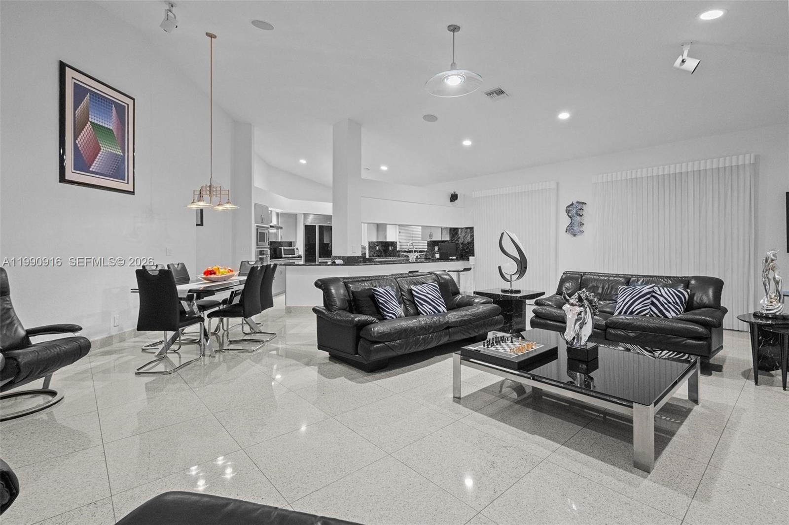 This elegant residence is set on a private oversized corner lot within the prestigious guard-gated community of Palm Island in Weston. Granite floors enhance the main living areas, while rich hardwood flooring elevates the bedrooms, adding warmth and comfort to the home’s private spaces. Soaring ceilings create bright, open interiors designed for both comfortable living and refined entertaining, offering balance, privacy, and an everyday retreat atmosphere. Thoughtful upgrades throughout include motorized Hunter Douglas Silhouette blinds, custom California Closets, and beautifully finished bathrooms with top-of-the-line fixtures. The private primary suite features tranquil pool views, a spa-inspired bath. Spacious family bedrooms, office/den, guest suite, home gym, and custom Finlandia sauna, thoughtfully designed to support relaxation and well-being at home. The gourmet kitchen showcases premium appliances including Sub-Zero, Dacor, and Viking, paired with Amadeus granite countertops and custom cabinetry. Step outside to a tropical oasis featuring a heated saltwater pool, spa, screened patio, and lush landscaping ideal for year-round entertaining or peaceful outdoor living. The home also includes integrated built-in and stand-alone surround A/V systems for an enhanced entertainment experience, a Garage-Tec finished garage, and fully integrated smart-home technology. Located near top-rated schools, parks, dining, shopping, houses of worship, and major highways.