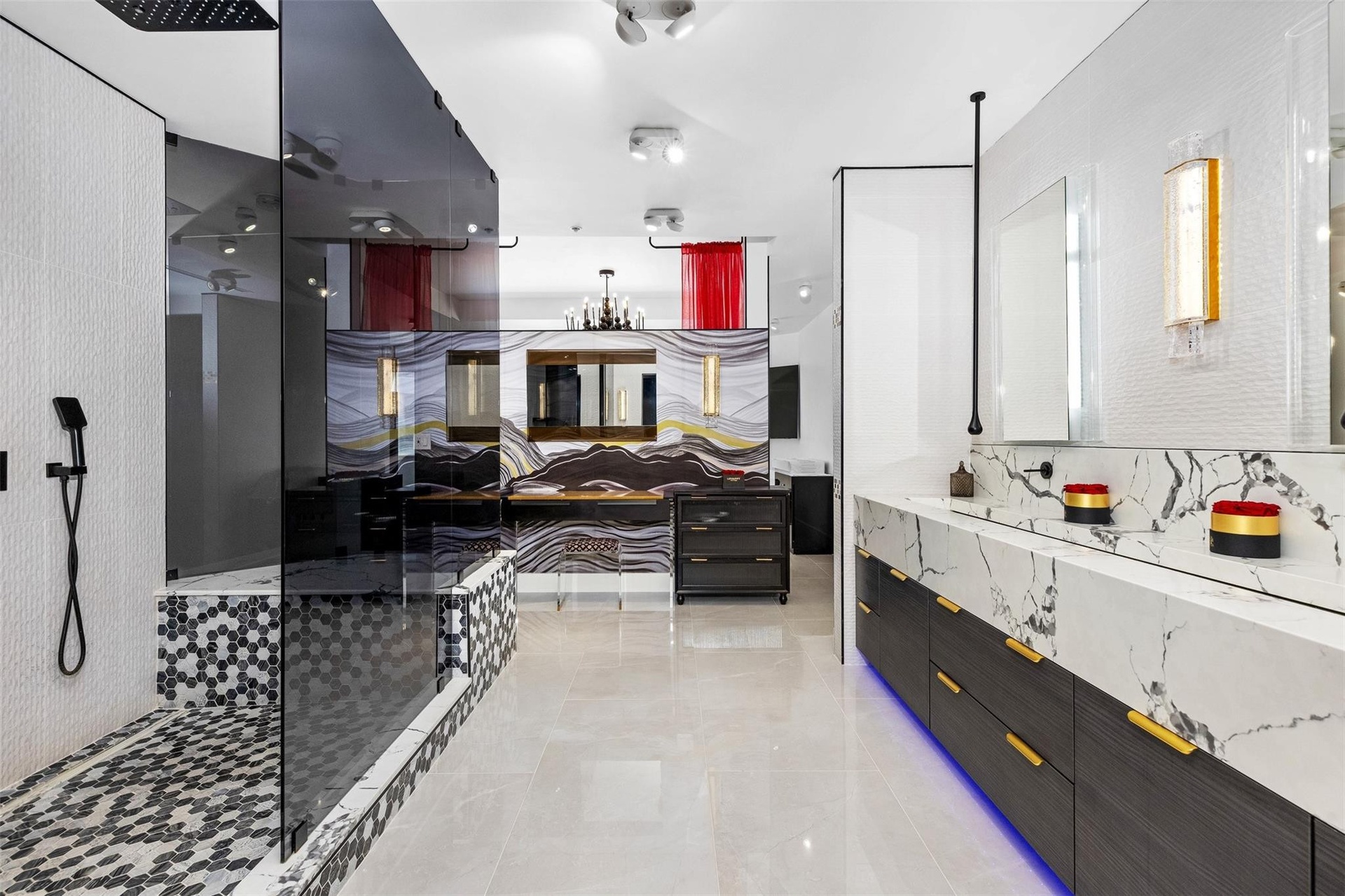 Indulge in luxurious coastal living at this elegantly-remodeled residence boasting unparalleled high-end finishes. With over $1M in custom upgrades, rare artwork & designer hand-crafted furnishings, this home is a masterpiece of modern design. The interior features high-gloss porcelain flooring seamlessly transitioning to matte-finish on the balconies, remodeled kitchen equipped with Miele appliances, imported cabinetry, bathrooms featuring Murano glass vanities & 24K gold-foiled tilework, brand new elevator, impact windows & doors & whole-home water filtration! Entertain effortlessly in the 4th floor bar/kitchen area & large deck with summer kitchen & stunning ocean views. Marbella is an exclusive gated community just steps from the ocean, restaurants, shopping & entertainment.