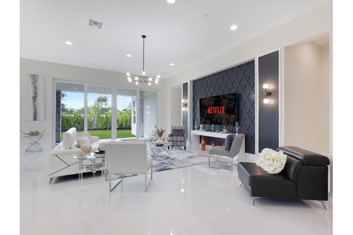 Available by April 1st 2026 Sophisticated elegance awaits in this stunning 2-story Domenica plan, 5 bedrooms/6 full bathrooms/1 powder room build by renowned luxury estate home builder Kenco Communities. This magnificent property boasts: Master suite, guest bedroom, and movie theater on the first floor Private master suite overlooking the backyard Luxurious bathroom with his and hers closets, waterfall shower, and separate vanities Additional in-suite bedroom on the ground floor, perfect for a nanny, baby room, or elderly family member Full movie theater accommodating over 20 guests Loft seating area upstairs for a playroom, office, or relaxation Three in-suite bedrooms upstairs, Coral Isles at Avenir offers: Private, gated boutique enclave with only 107 quarter-acre homesites 16,000-square-foot clubhouse Resort-style pool Tennis and pickleball courts Walking/biking trails Access to Avenir community amenities, including parks, a working farm, and a future town center with shops and restaurants